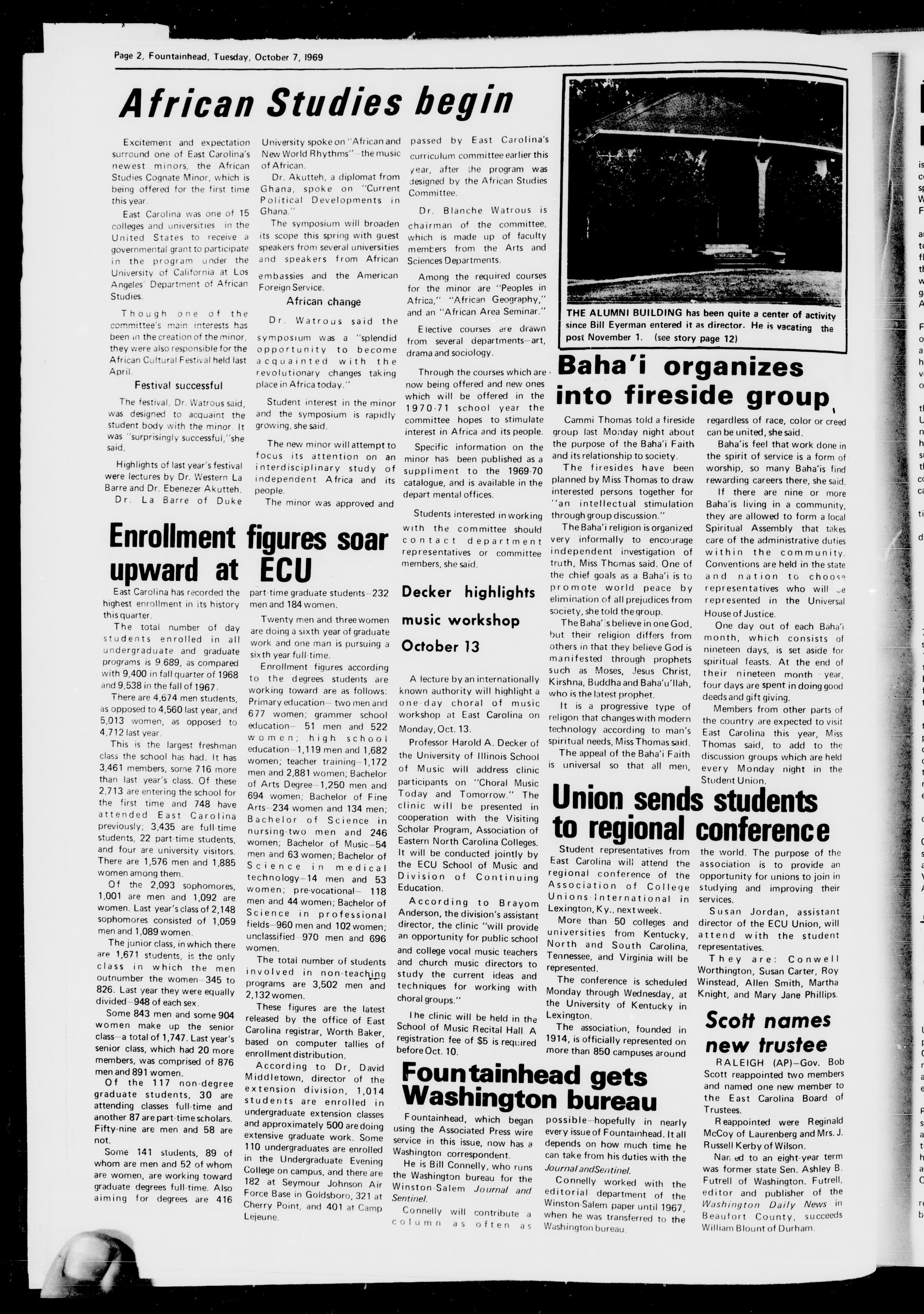 Page 2, Fountainhead, Tuesday, October 7, 1969