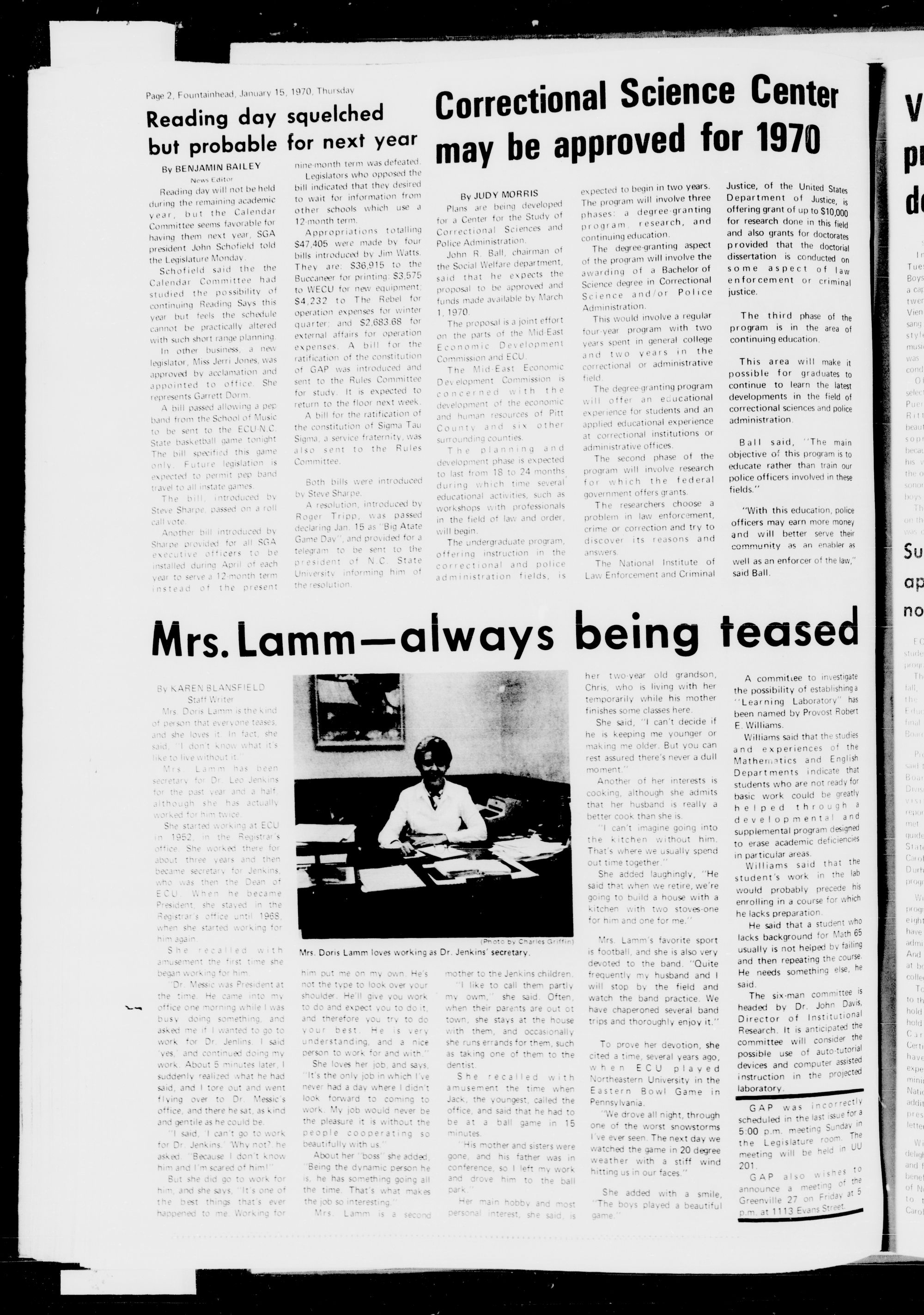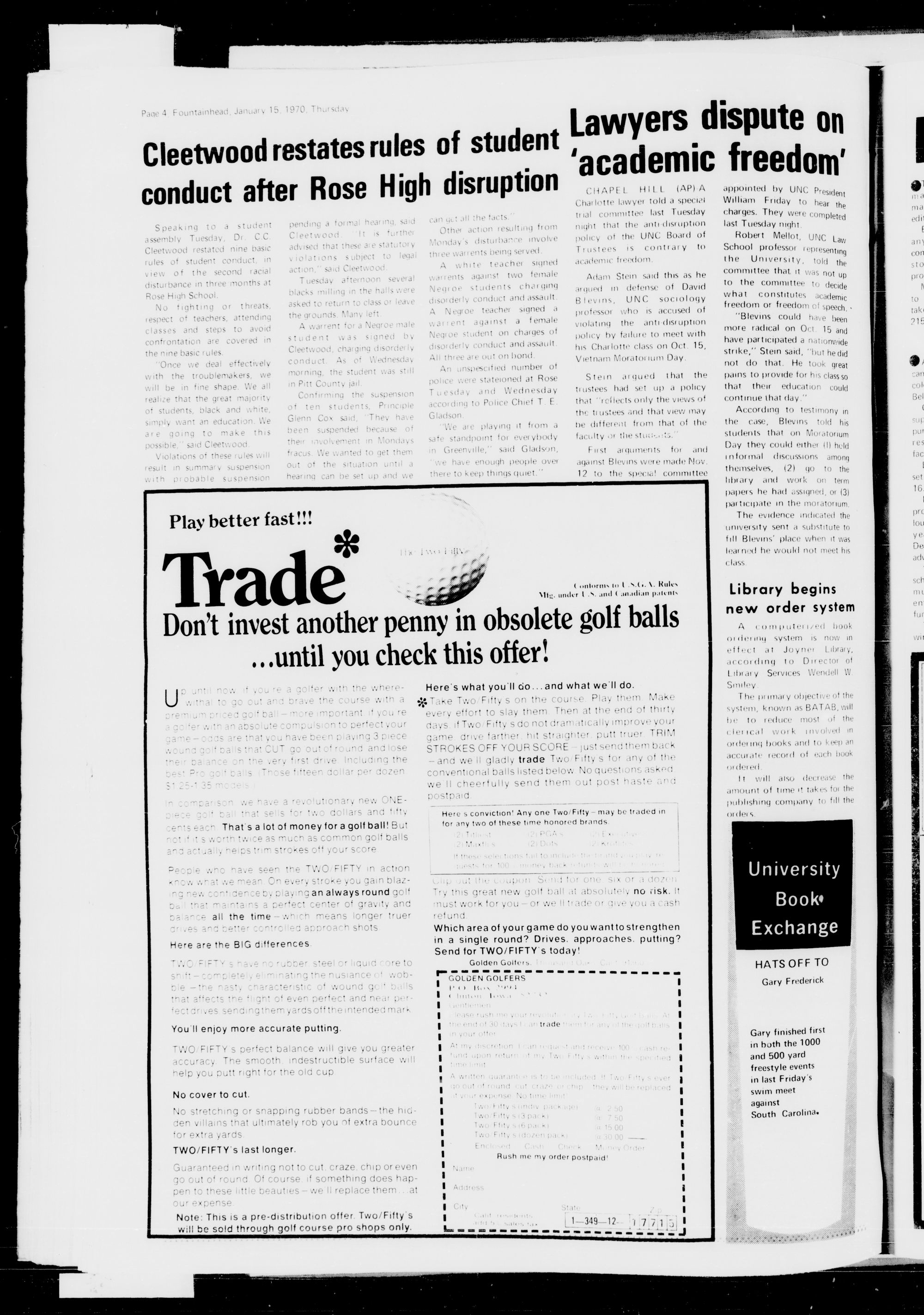Page 2, Fountainhead, January 15, 1970, Thursdav