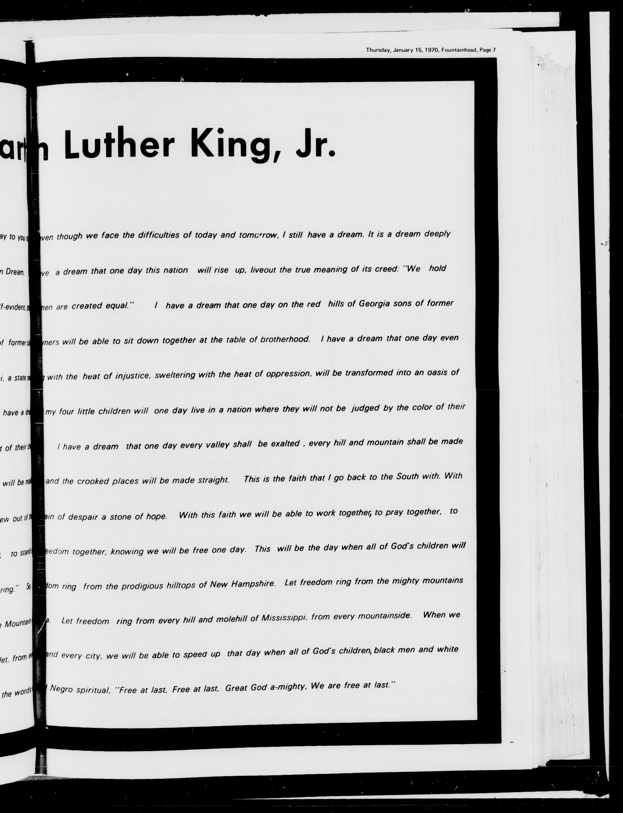 MARTIN LUTHER KING'S dream was to love and serve humanity. Fountainhead pays