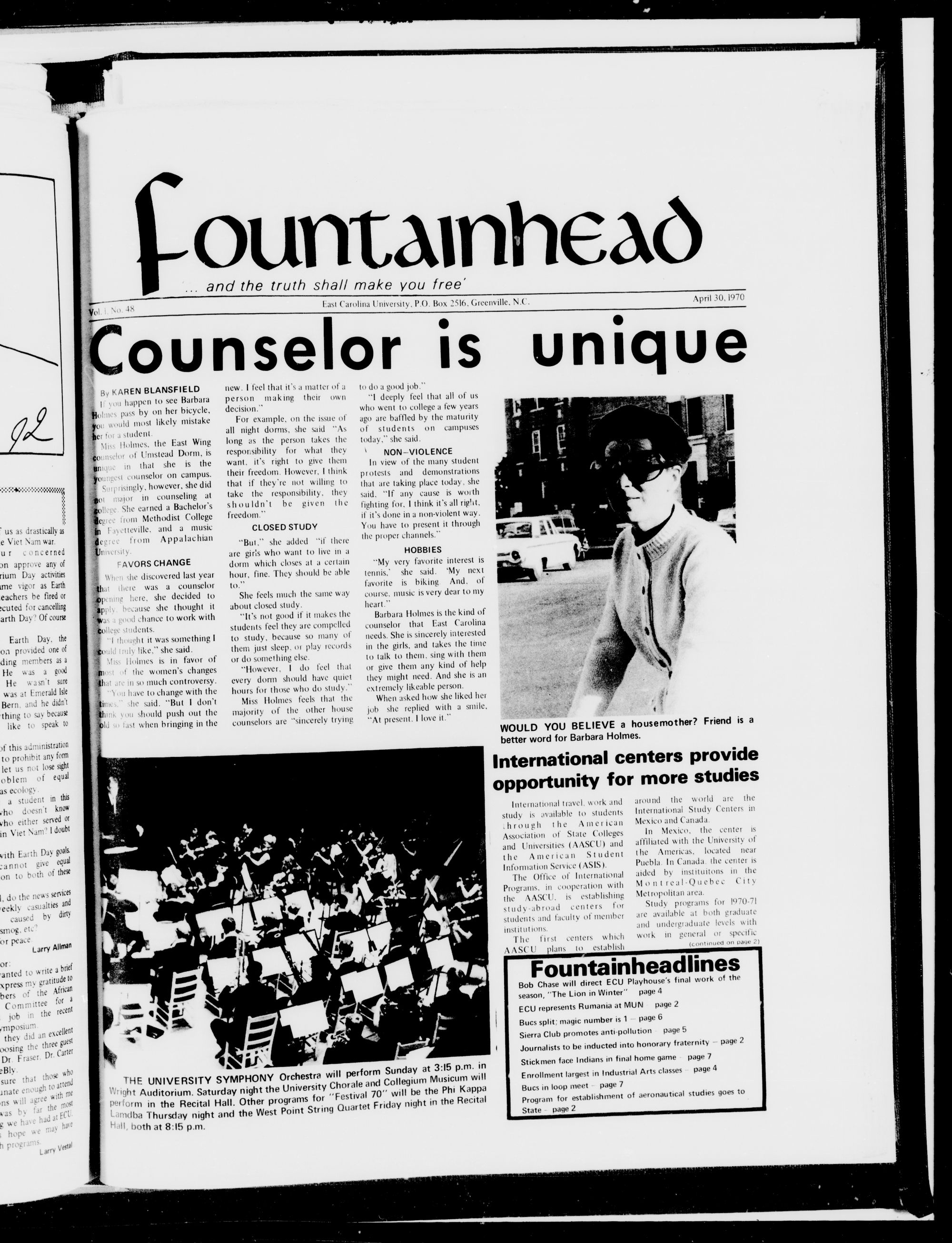 East Carolina University, P.O. Box 2516, Greenville. N.C.