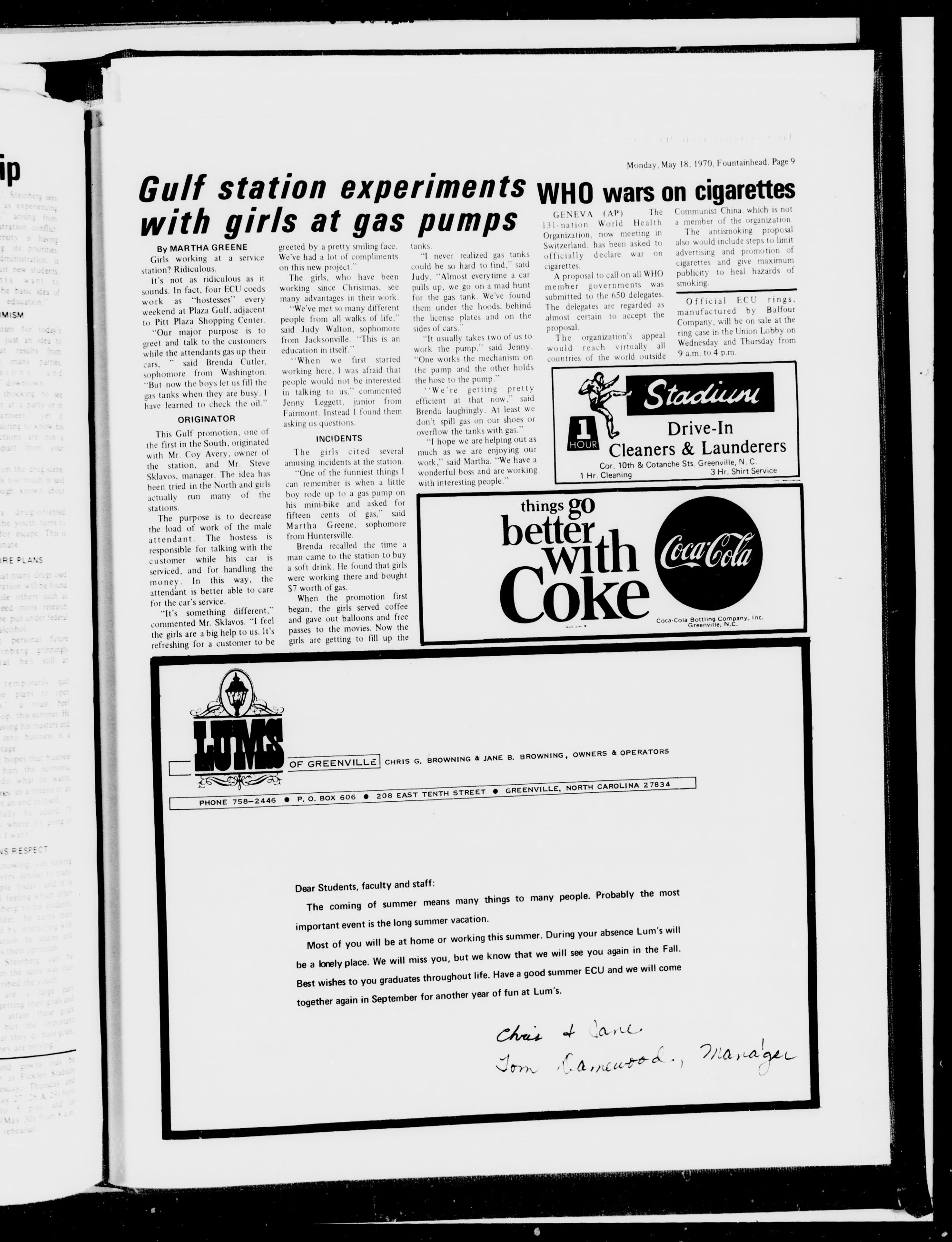 Last Carolina University, P.O.Box 2516, Greenville, N.C.