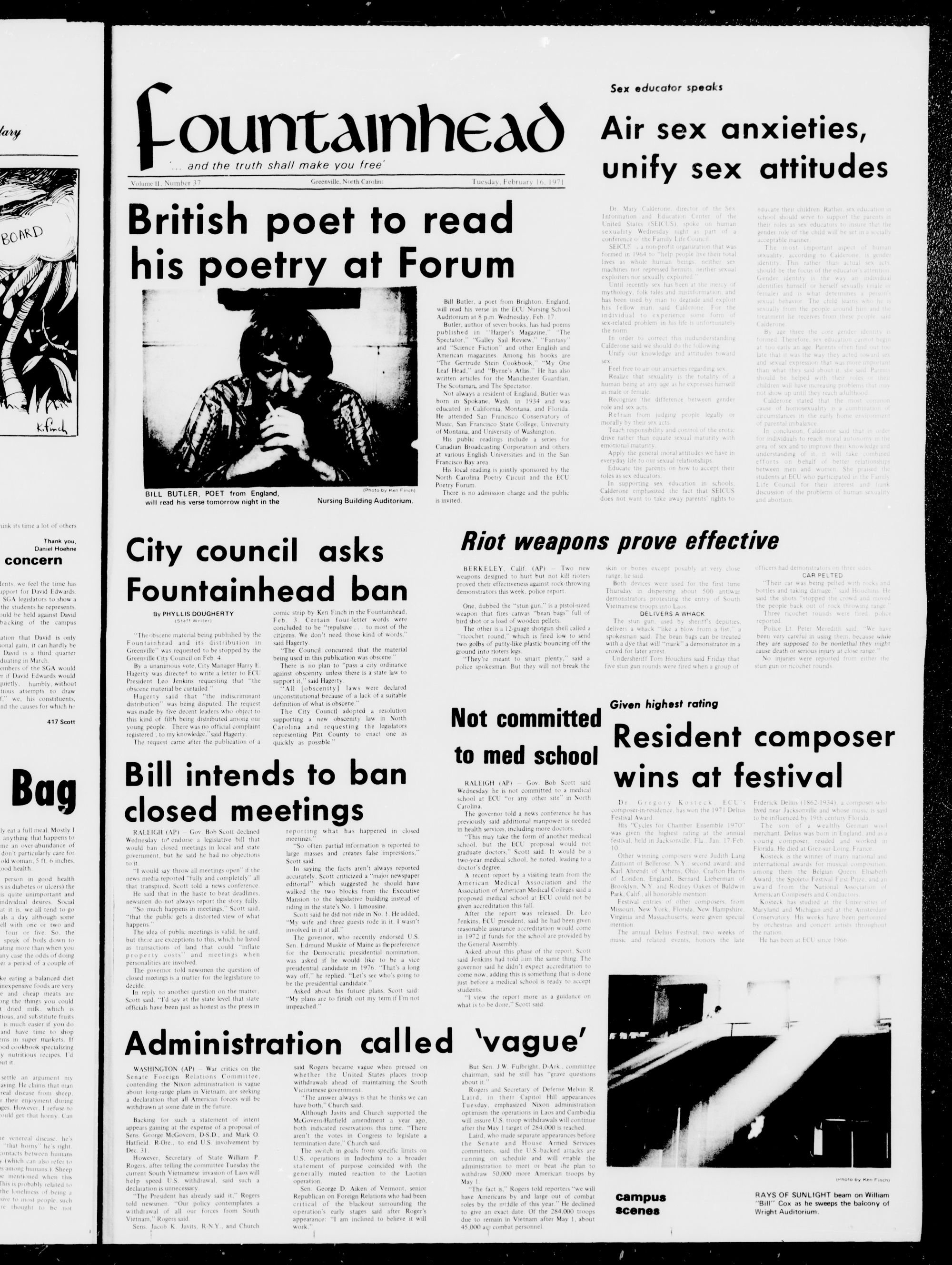 will read his verse in the ECU Nursing School