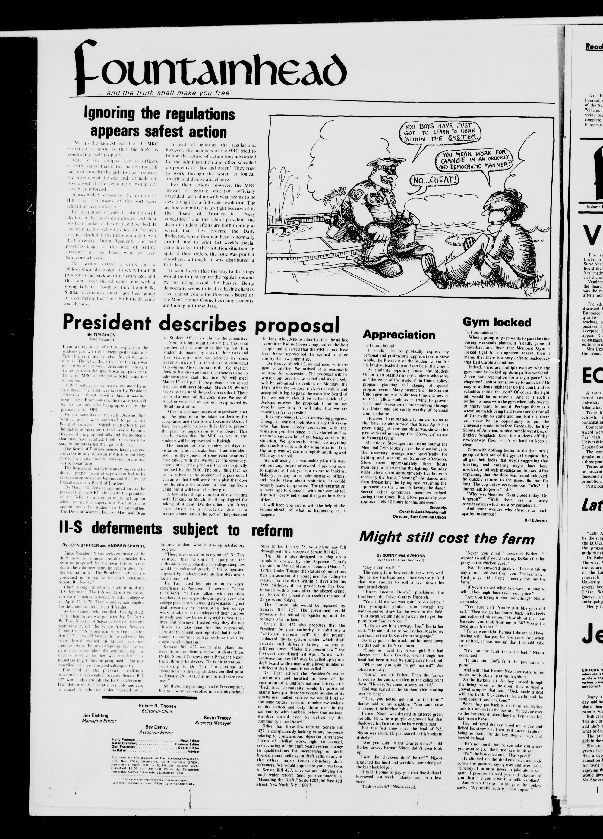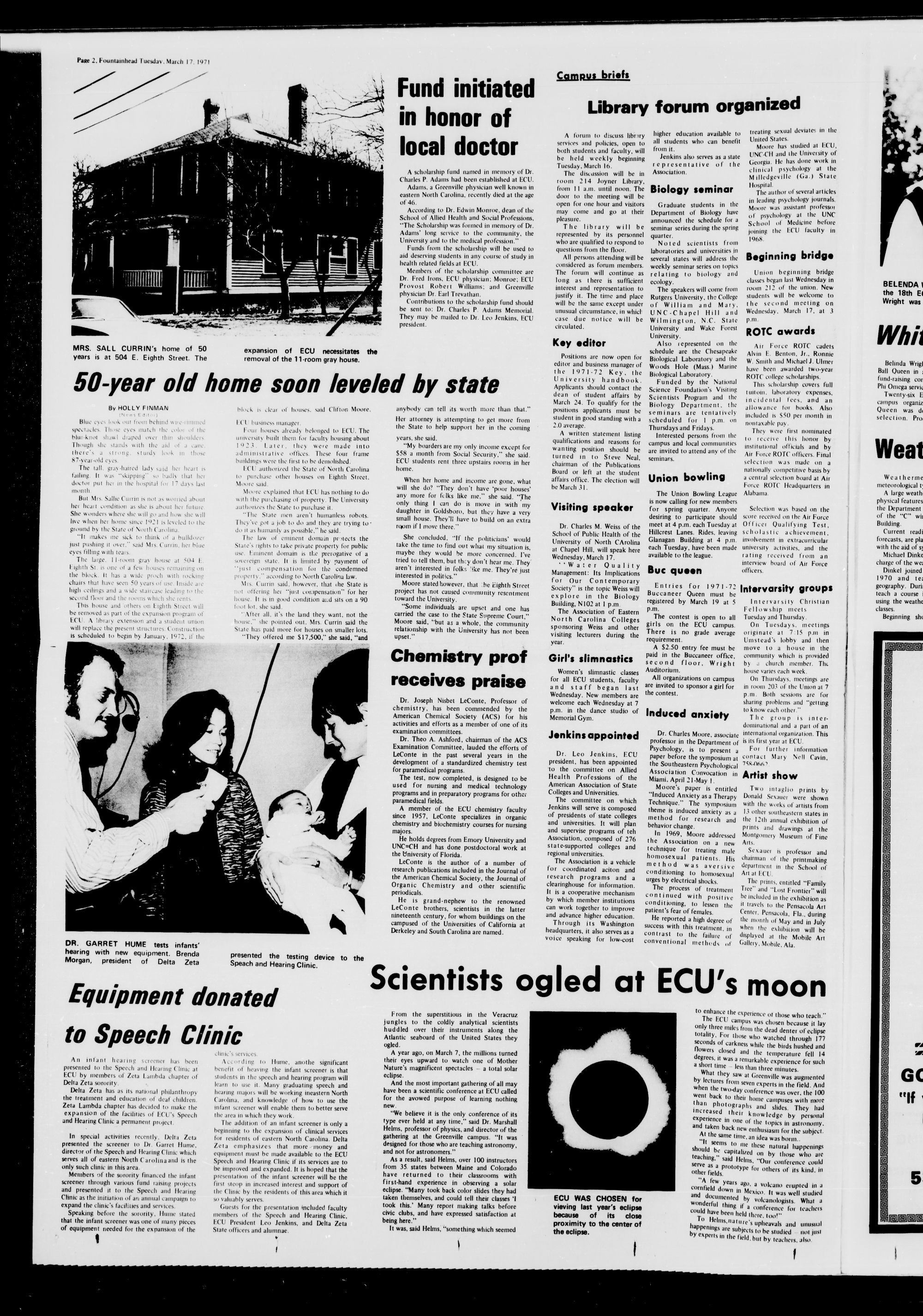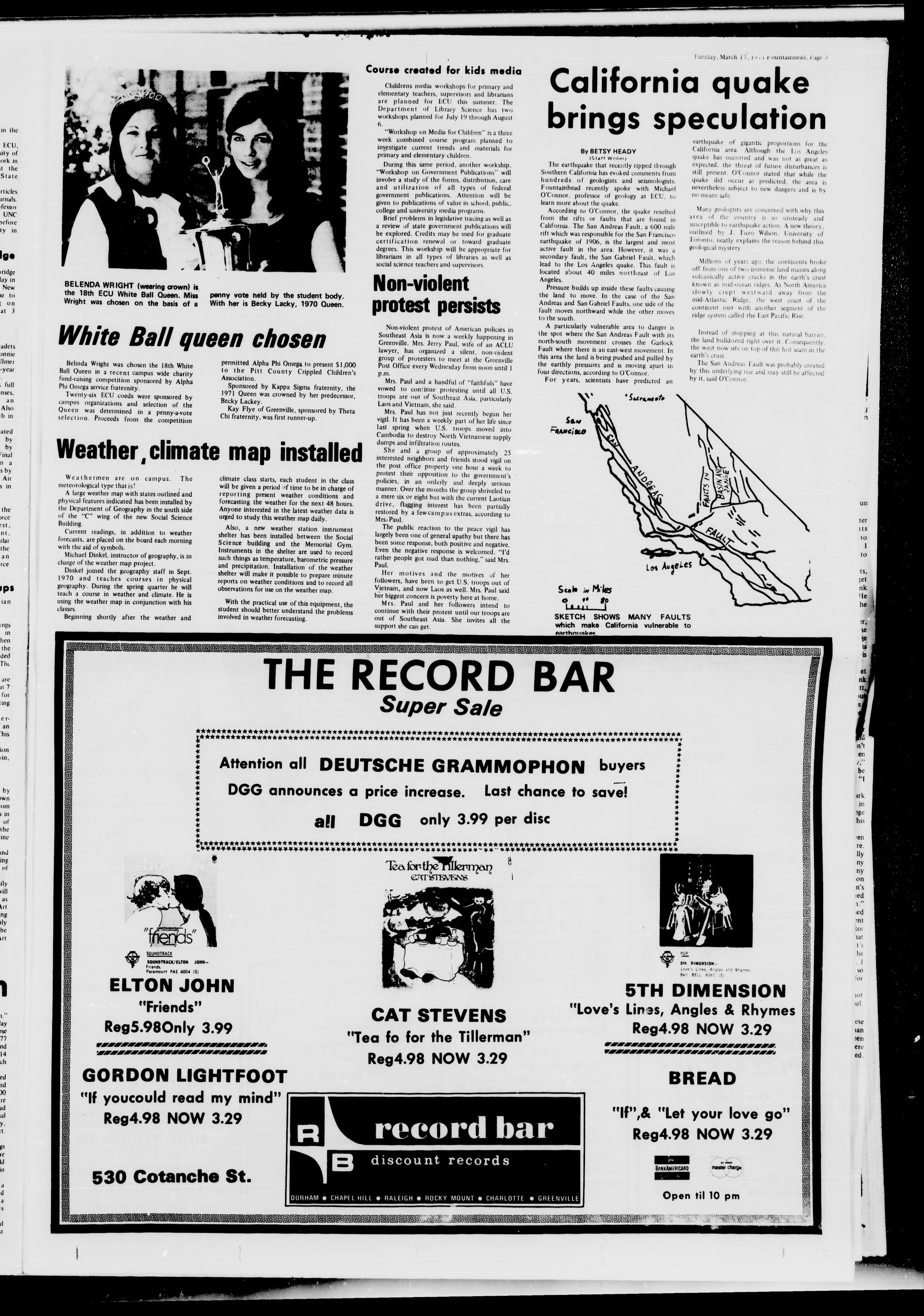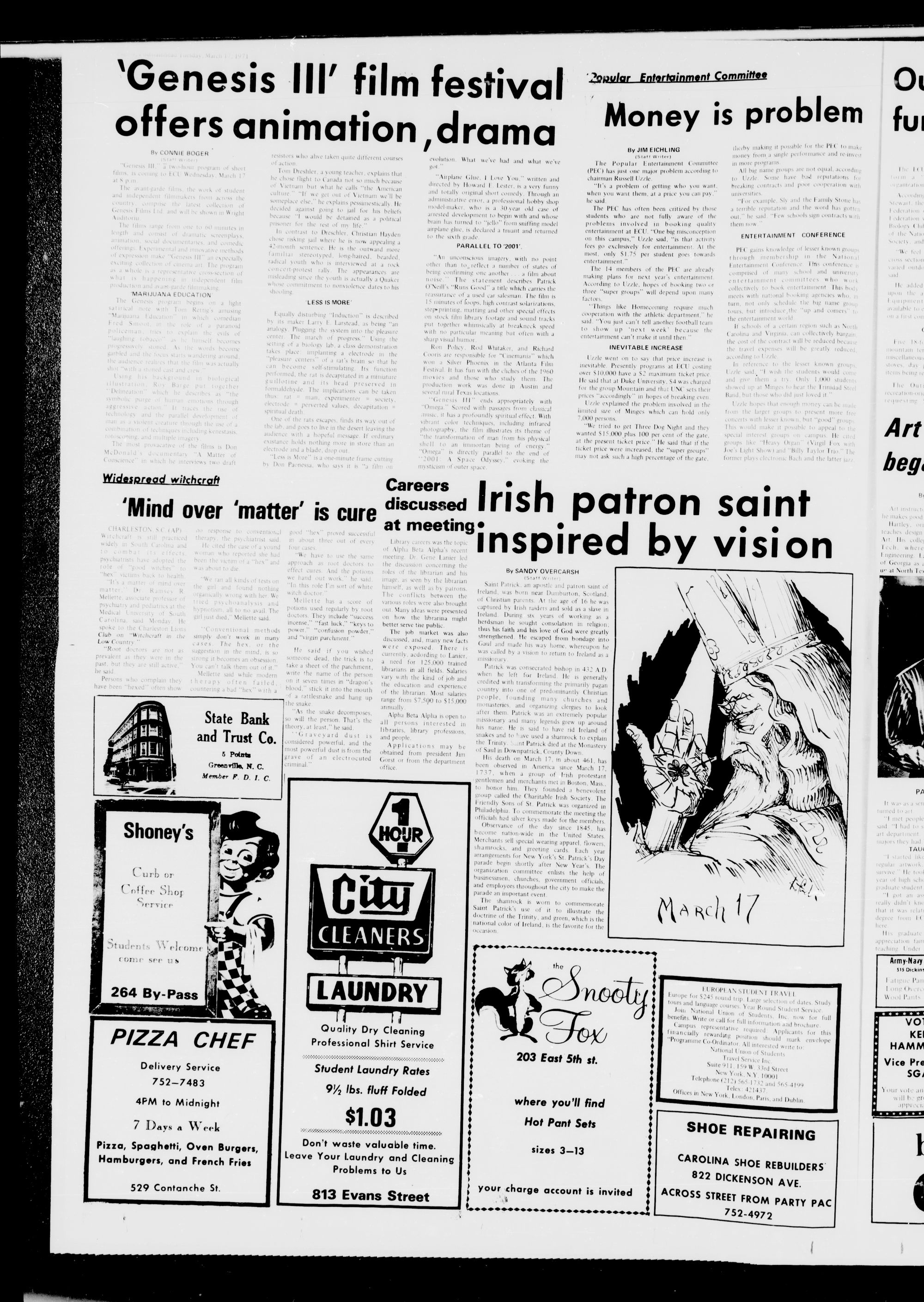 East Carolina's student-run campus newspaper was first published in 1923 as the East Carolina Teachers College News (1923-1925). It has been re-named as The Teco Echo (1925, 1926-1952), East Carolinian (1952-1969), Fountainhead (1969-1979), and The East Carolinian (1969, 1979-present). It includes local, state, national, and international stories with a focus on campus events.