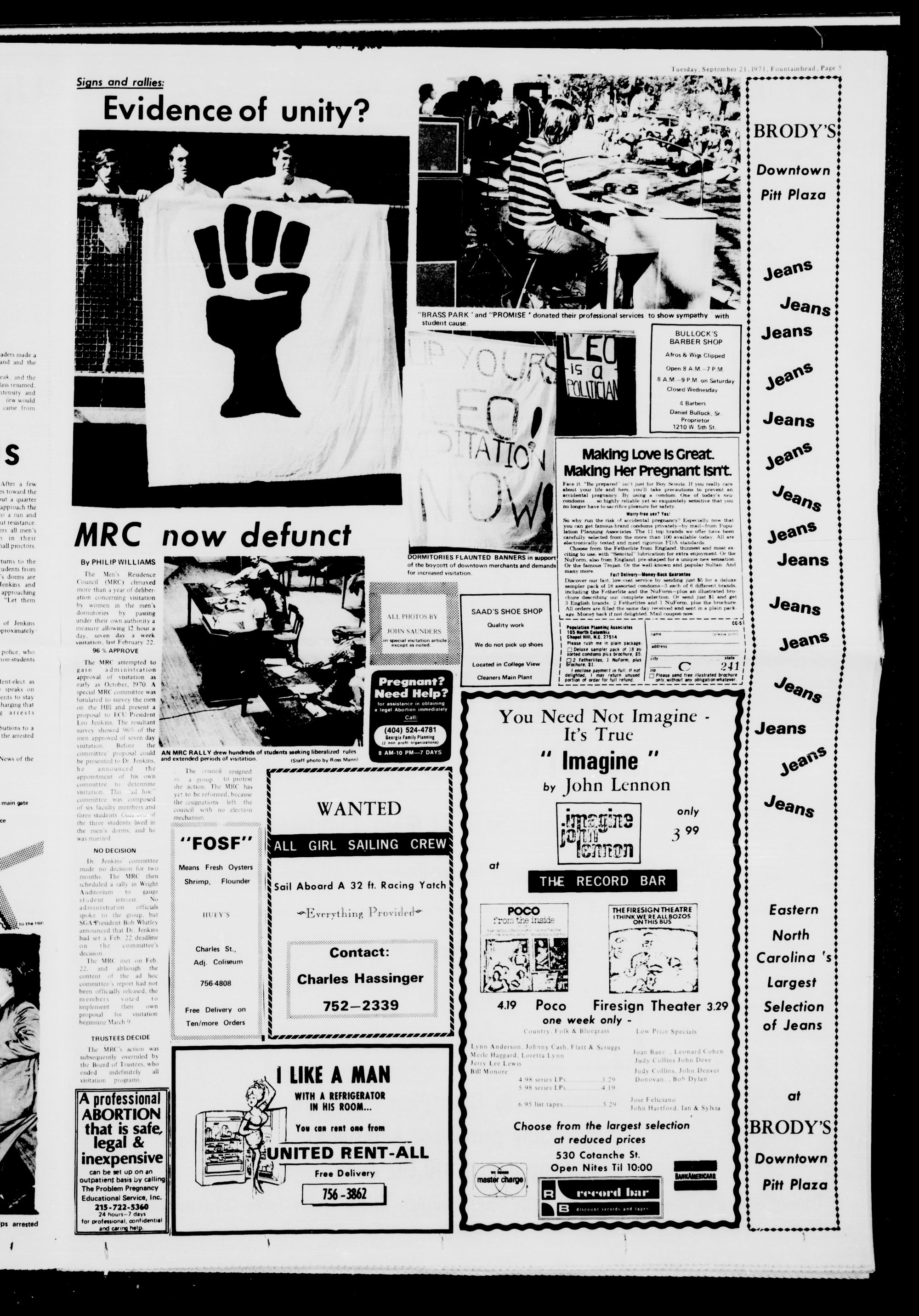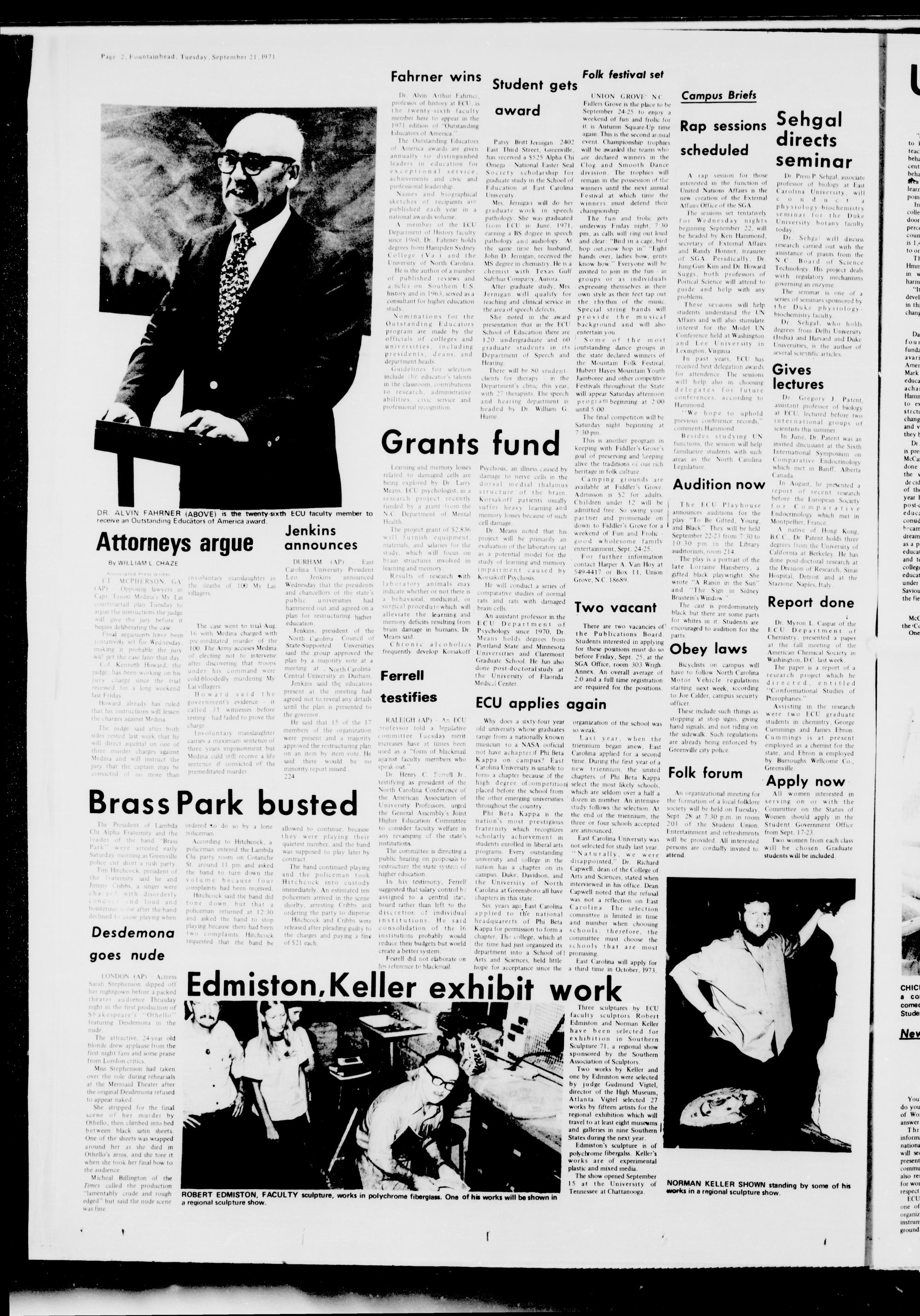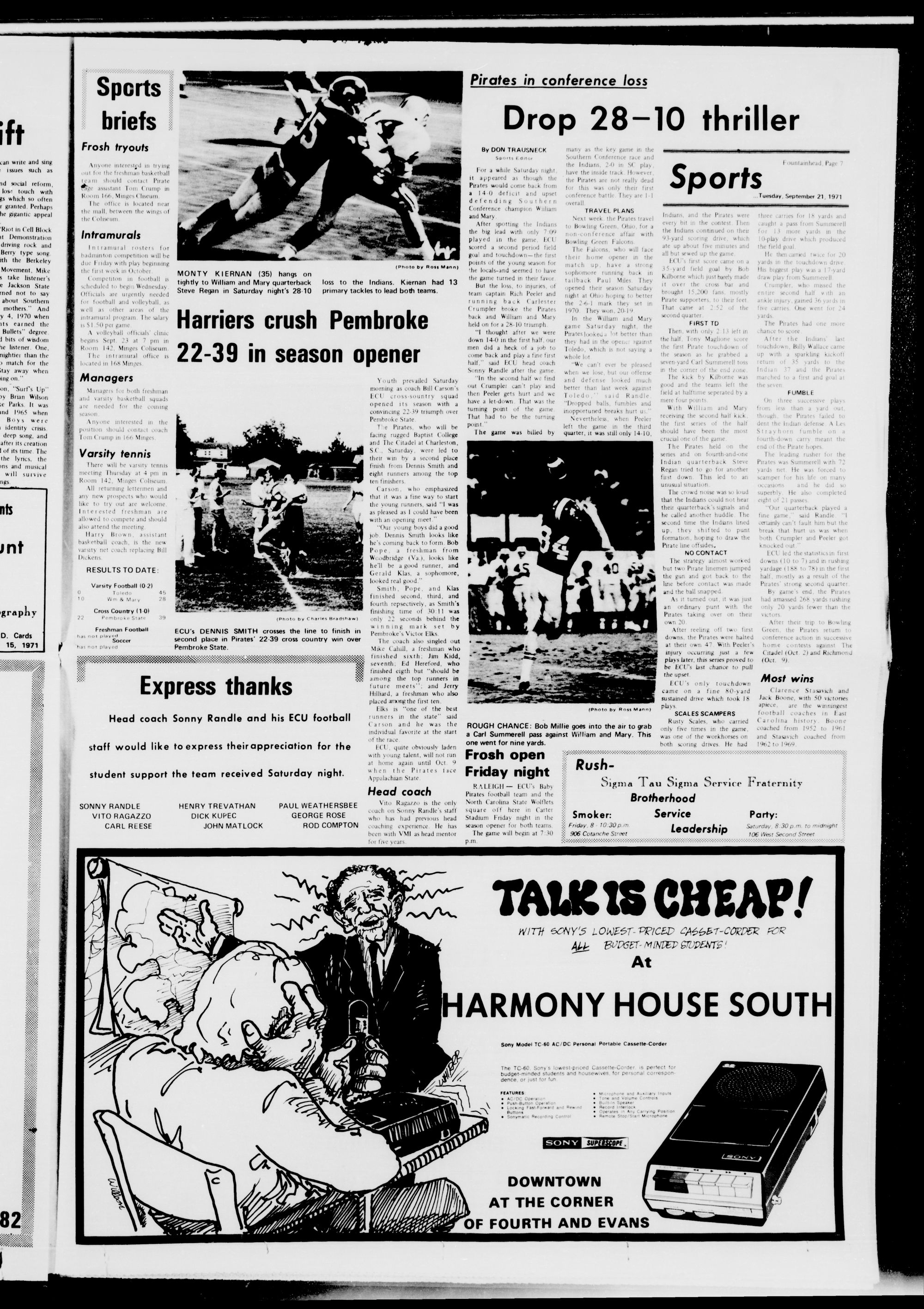East Carolina's student-run campus newspaper was first published in 1923 as the East Carolina Teachers College News (1923-1925). It has been re-named as The Teco Echo (1925, 1926-1952), East Carolinian (1952-1969), Fountainhead (1969-1979), and The East Carolinian (1969, 1979-present). It includes local, state, national, and international stories with a focus on campus events.