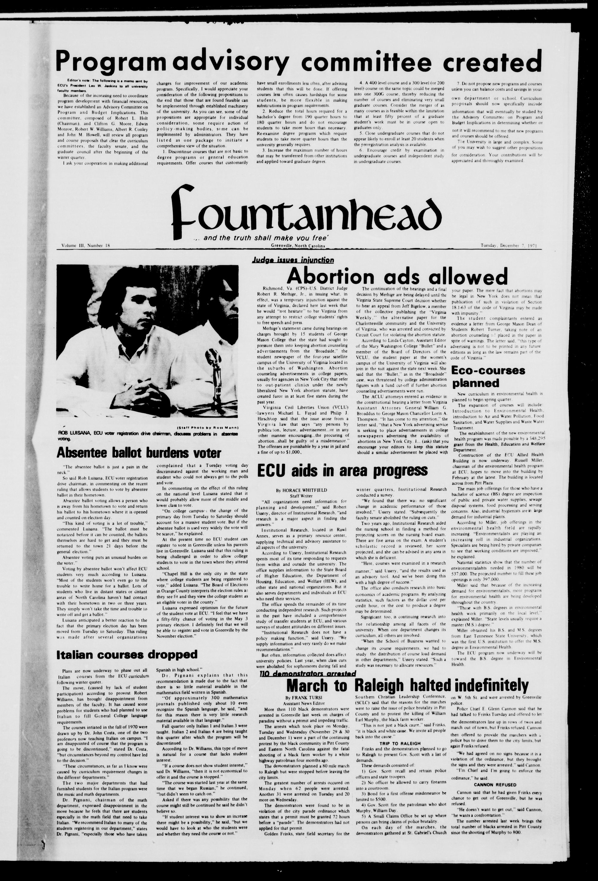 ROB LUISANA, ECU voter registration oVive chairman, dscunas protJerrs in afaaantBe