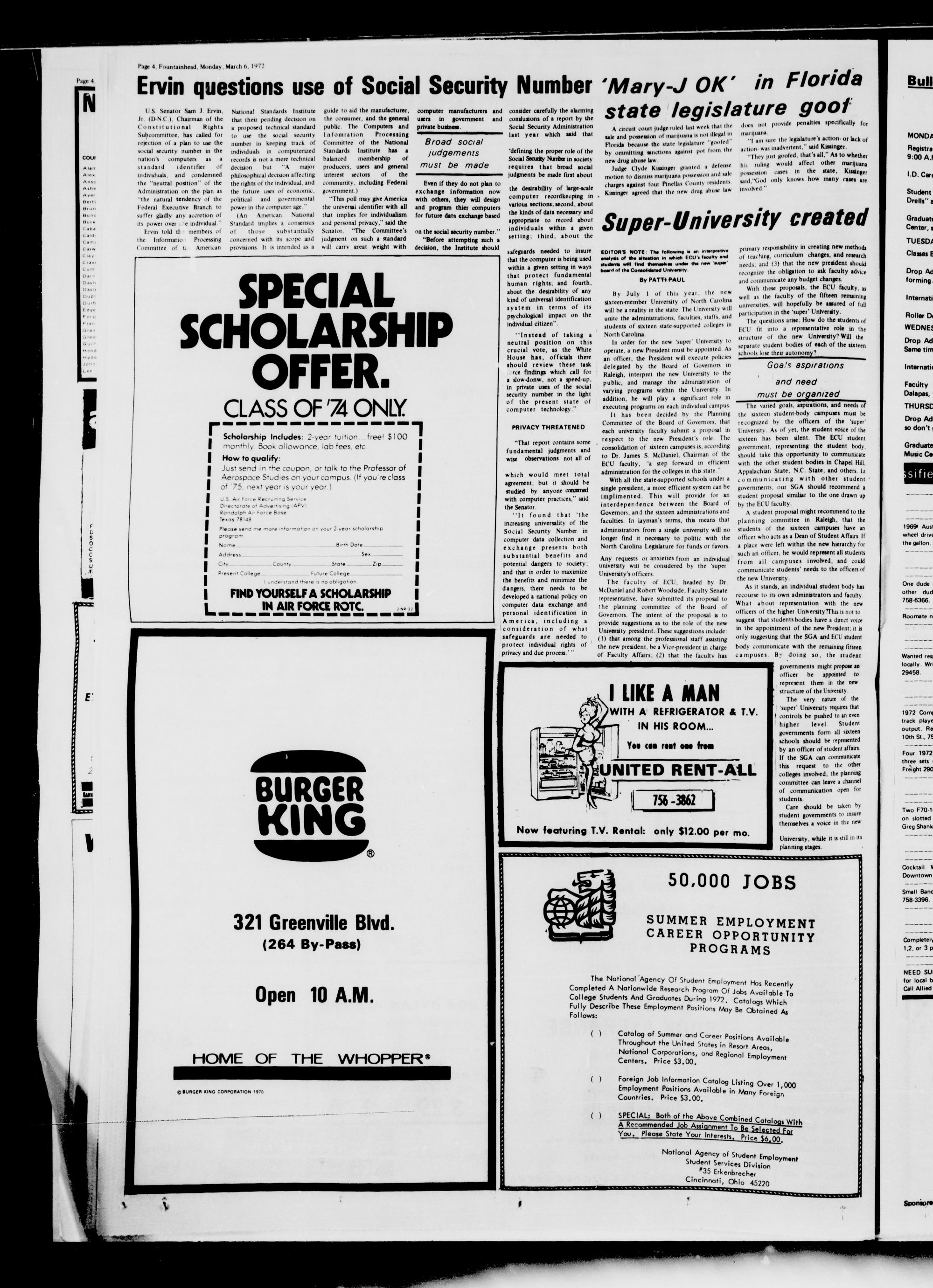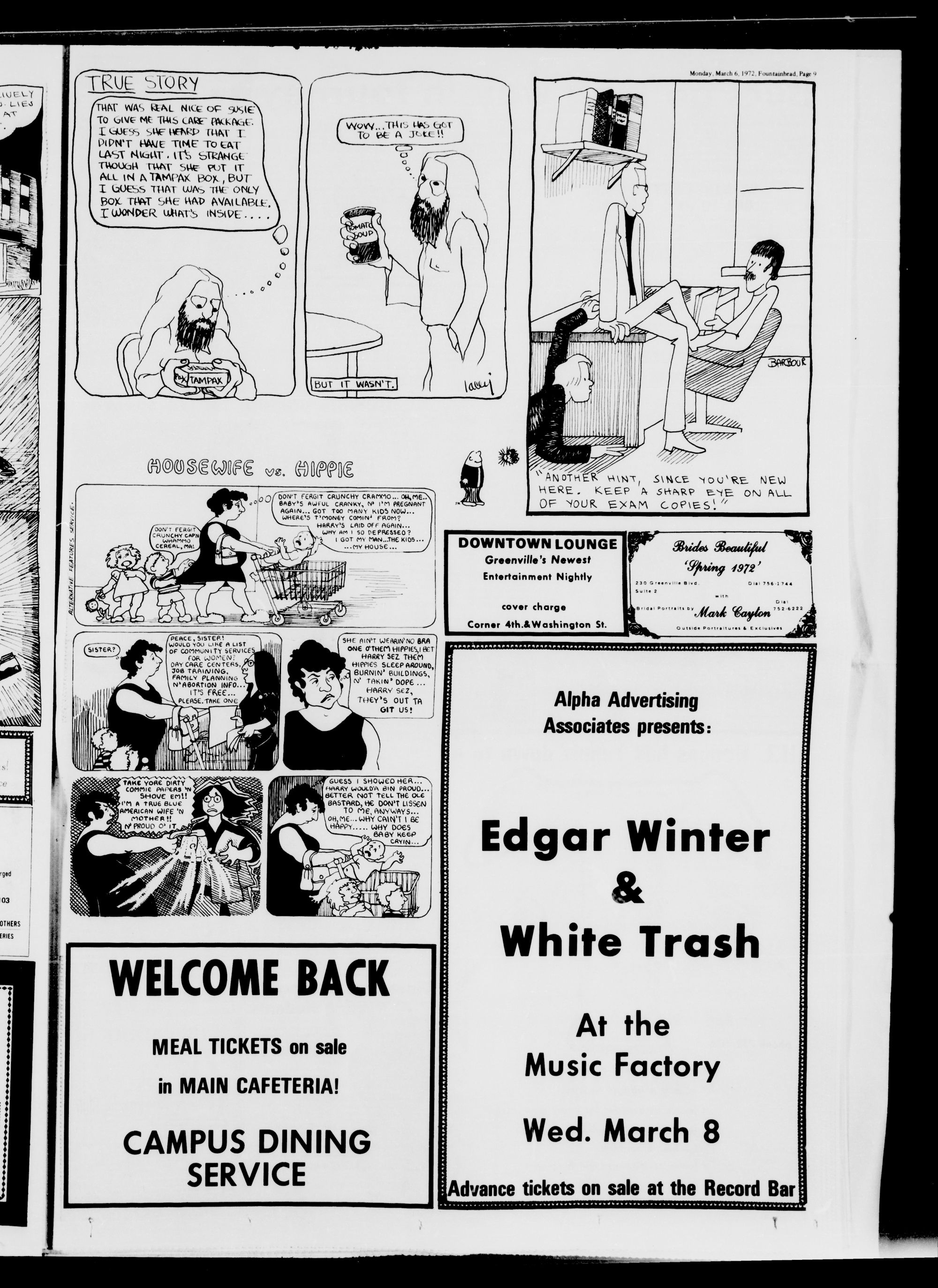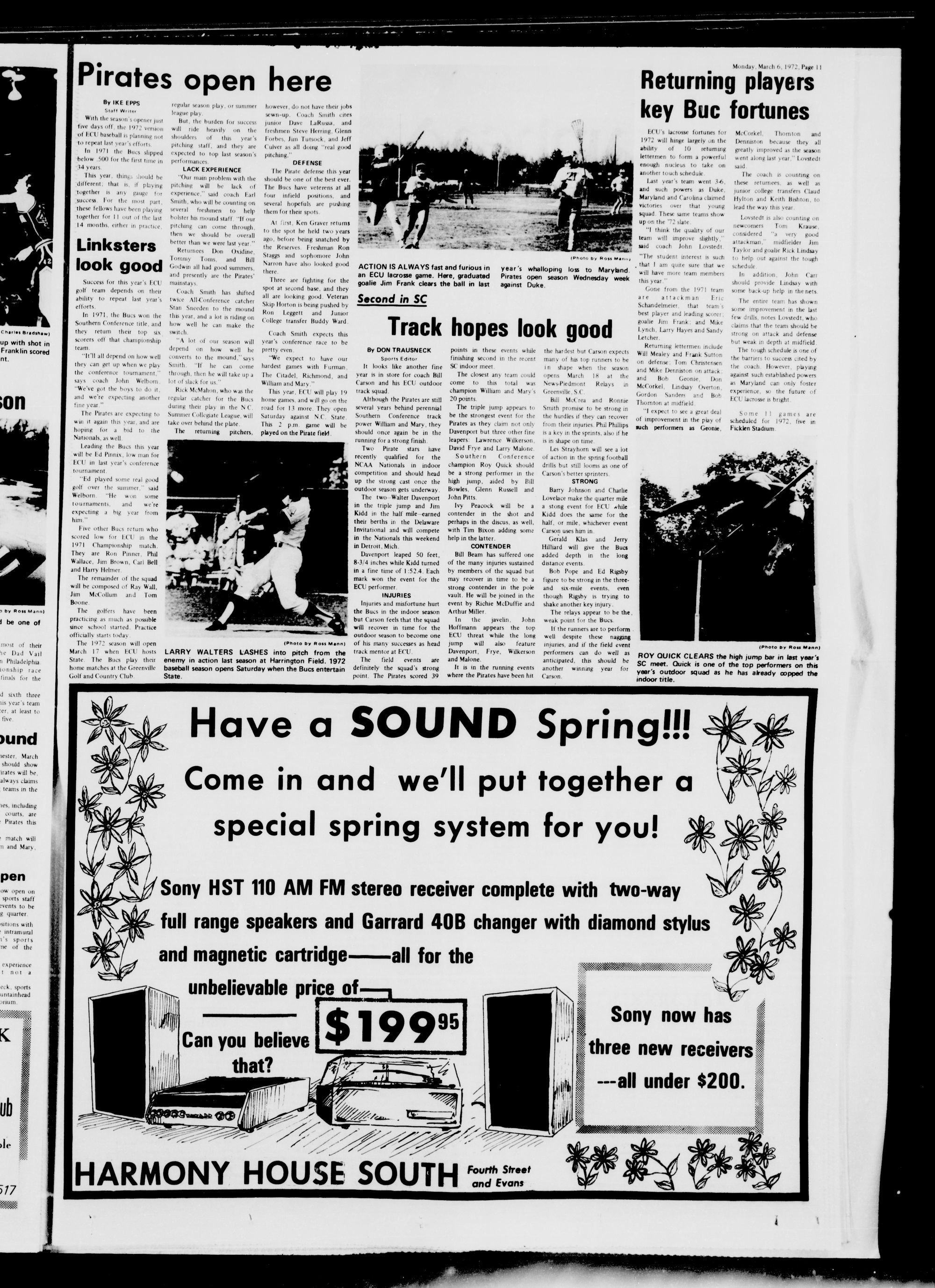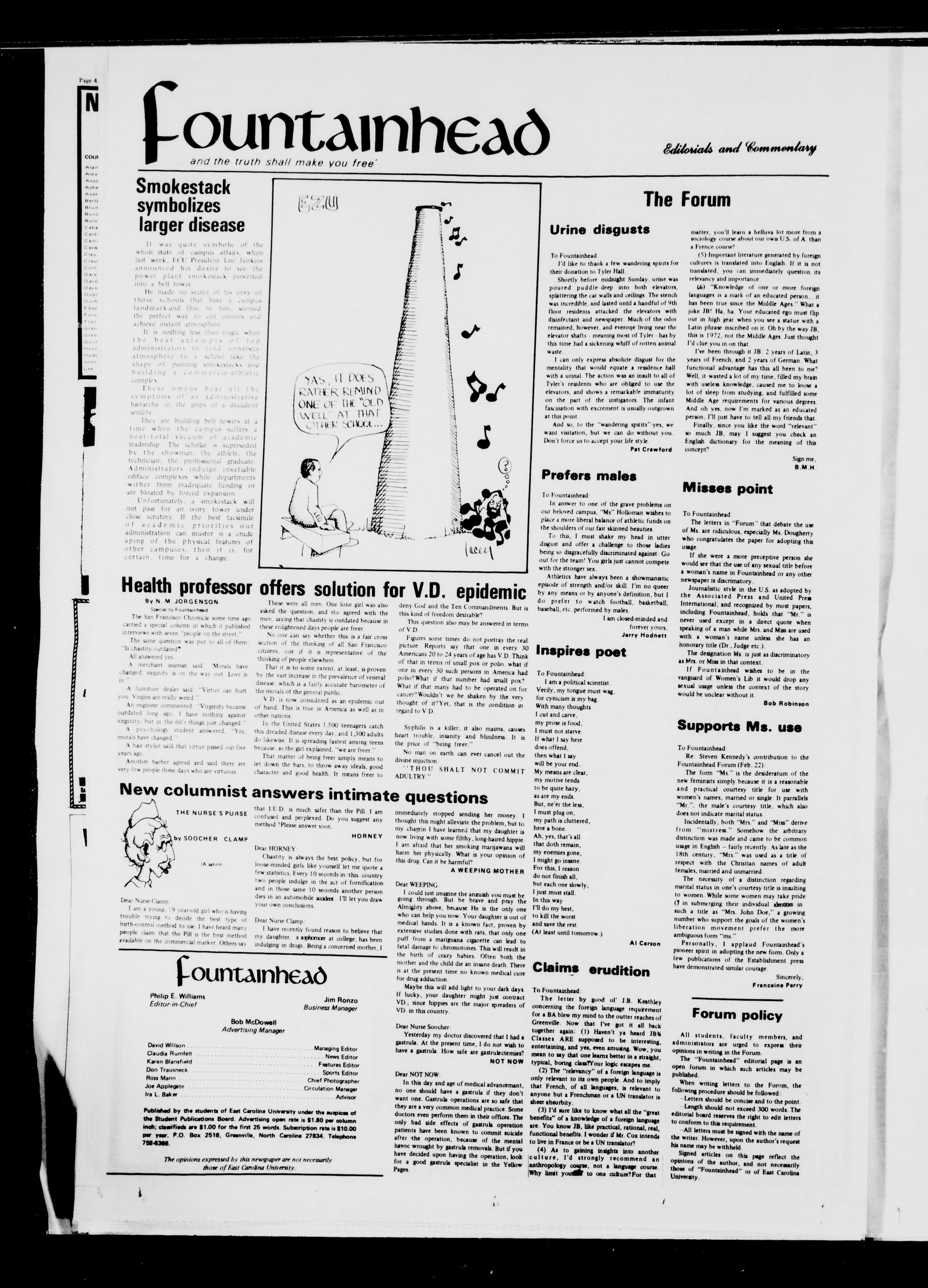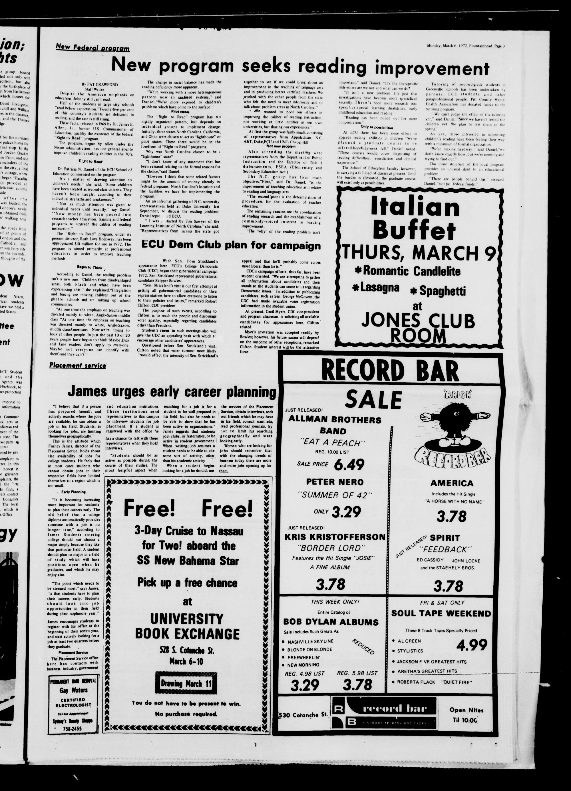 East Carolina's student-run campus newspaper was first published in 1923 as the East Carolina Teachers College News (1923-1925). It has been re-named as The Teco Echo (1925, 1926-1952), East Carolinian (1952-1969), Fountainhead (1969-1979), and The East Carolinian (1969, 1979-present). It includes local, state, national, and international stories with a focus on campus events.
