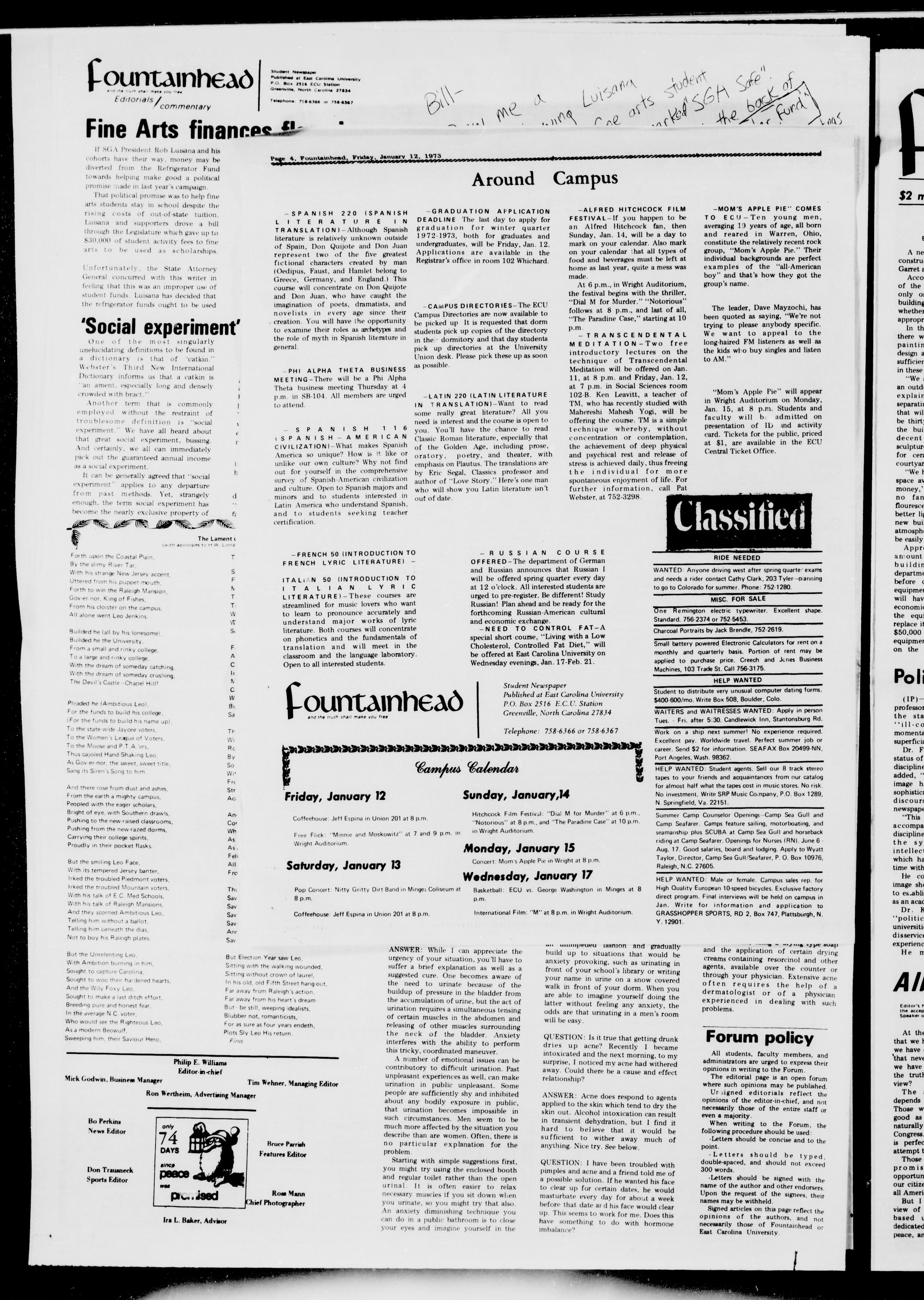Jan. Write for information and application to