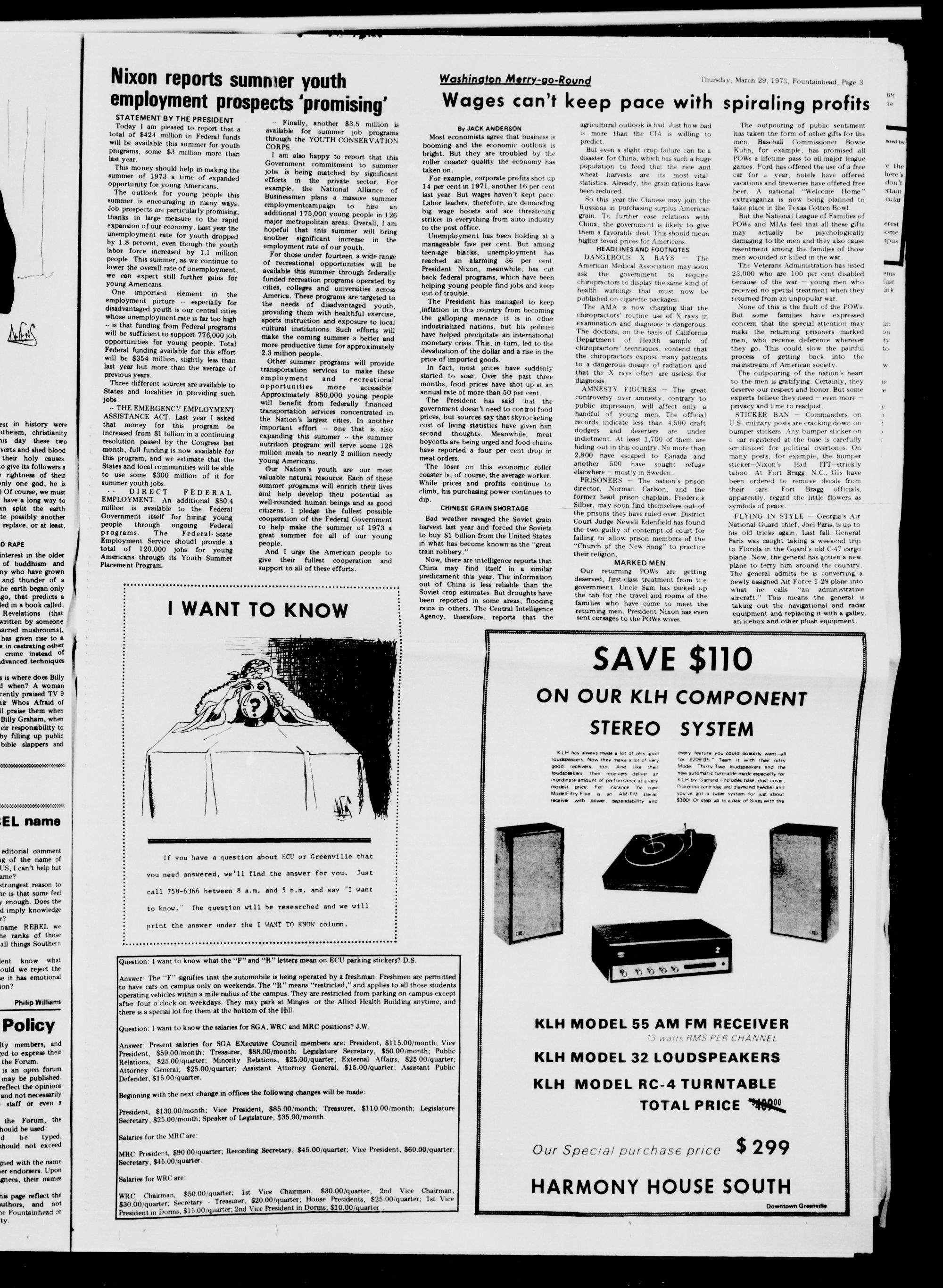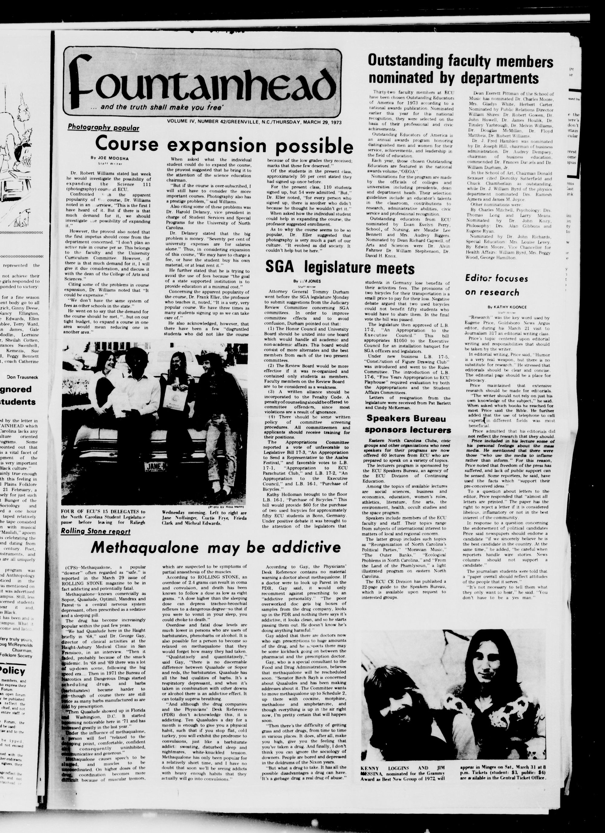 VOLUME IV. NUMBER 42GREENVILLE, N.C.THURSDAY, MARCH 29. 1973