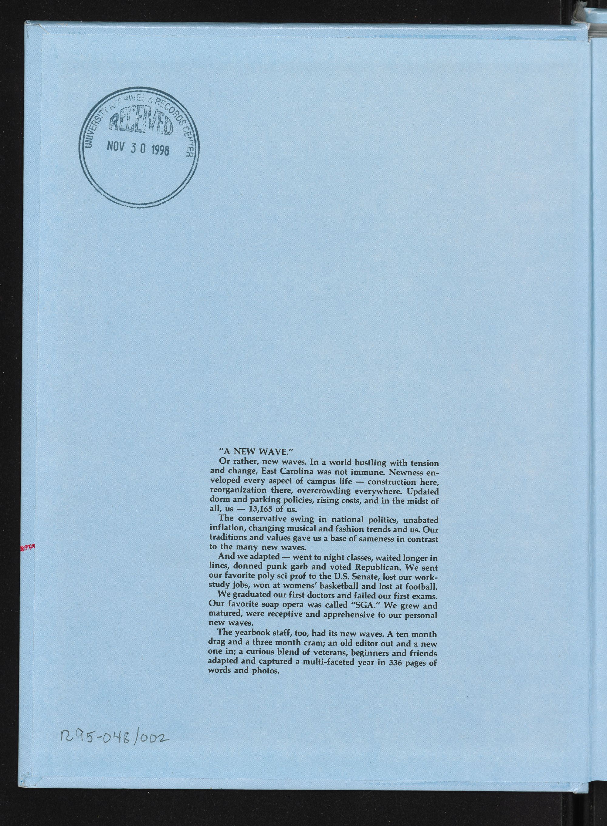 our yearbook. Definitely new wave. Too much for us.