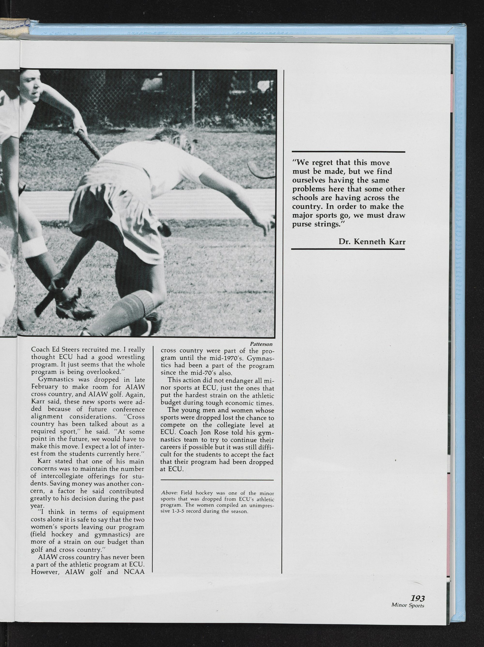 and change, East Carolina was not immune. Newness en-