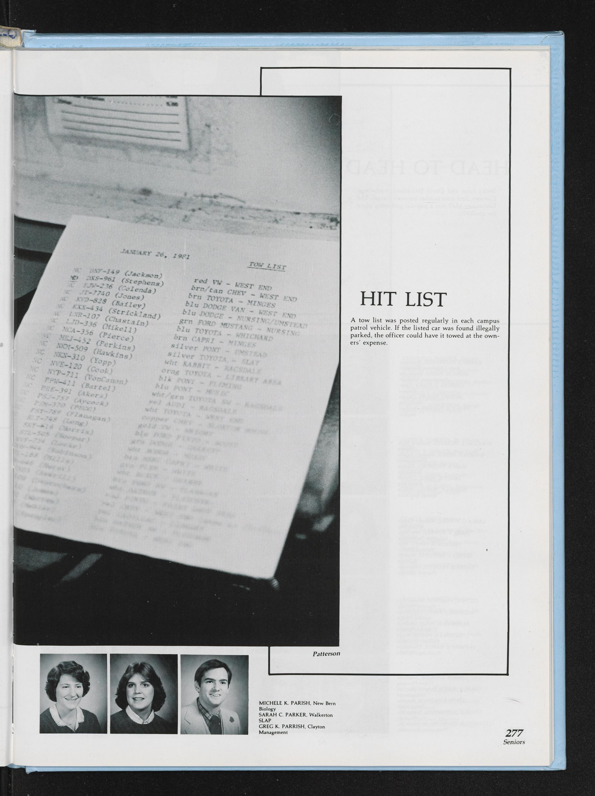 tions are from prints or slides taken by the Photo Lab staff. Classes portraits