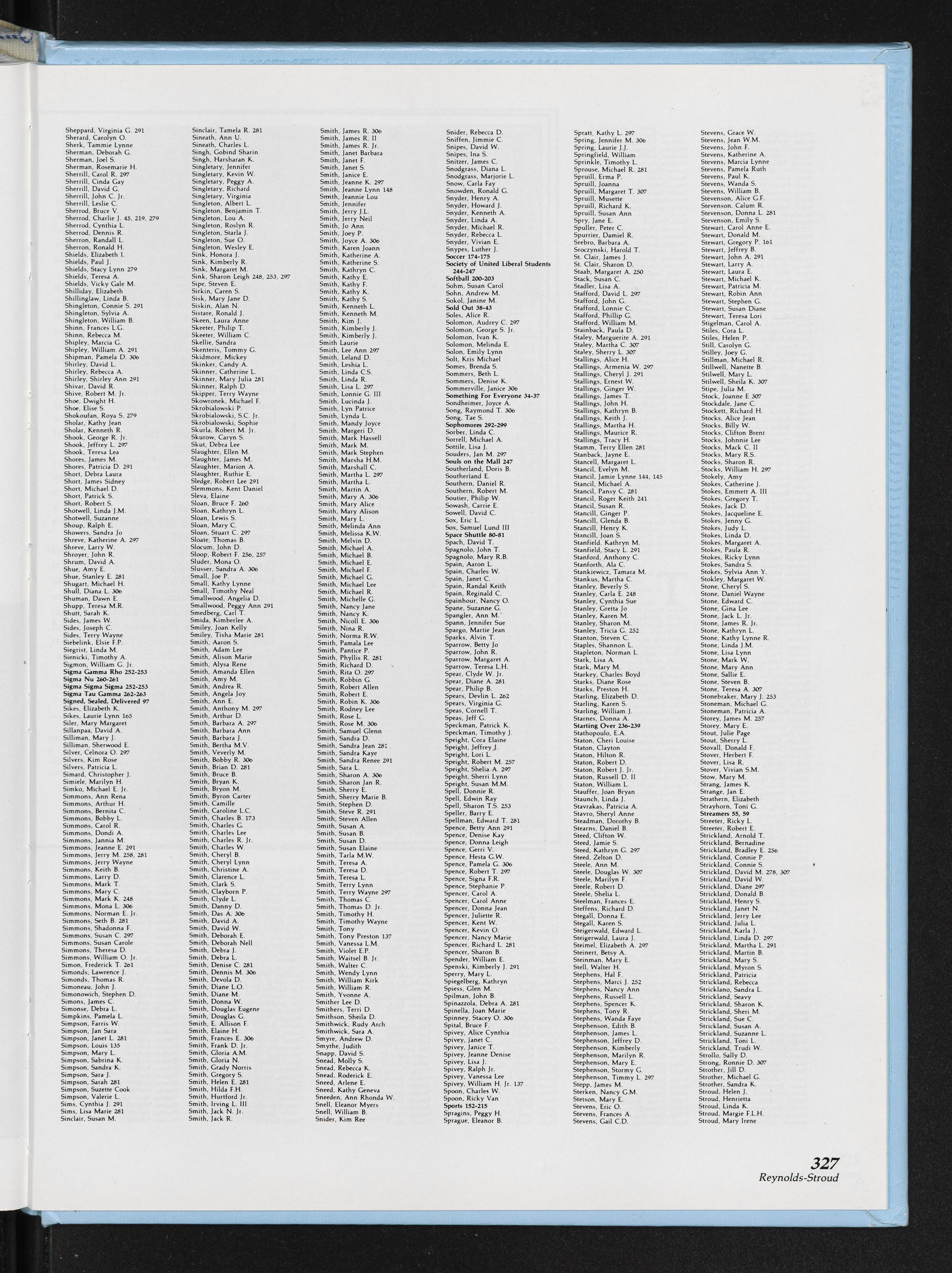 Headlines vary in style and size from page to page. Index type is 6 point