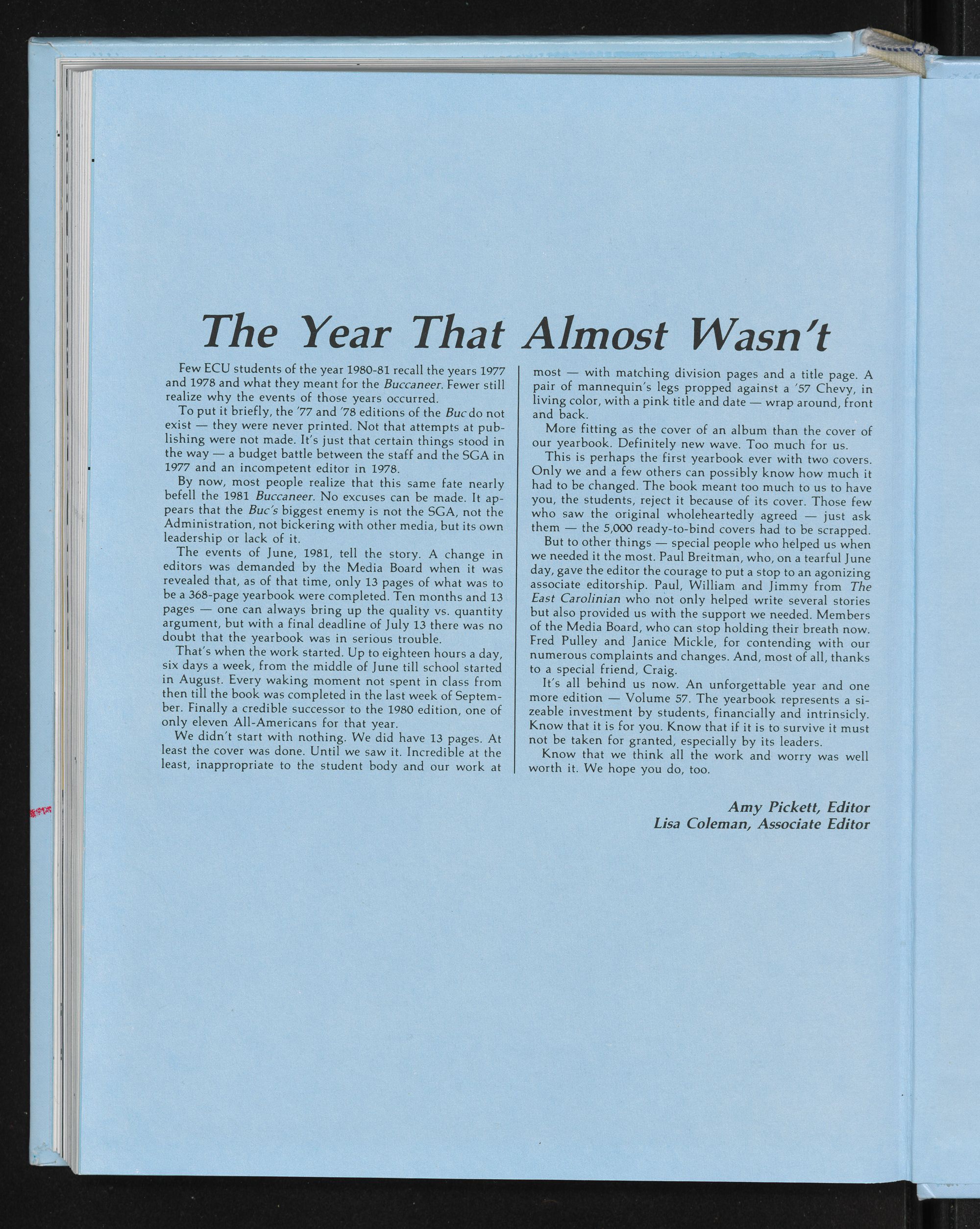 Buccaneer, the student yearbook of East Carolina University, is pub-