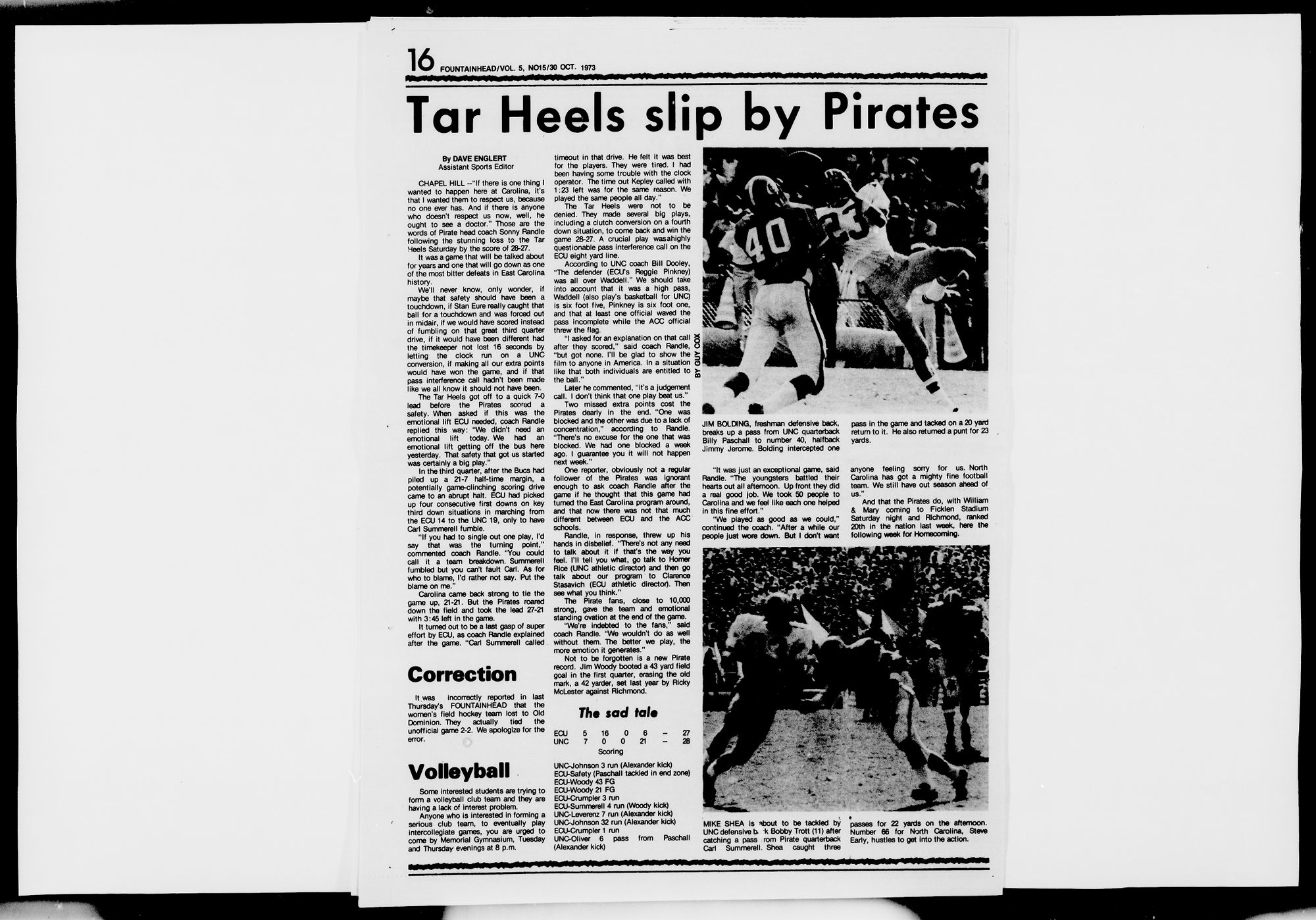 Jimmy Jerome. Bolding intercepted one
