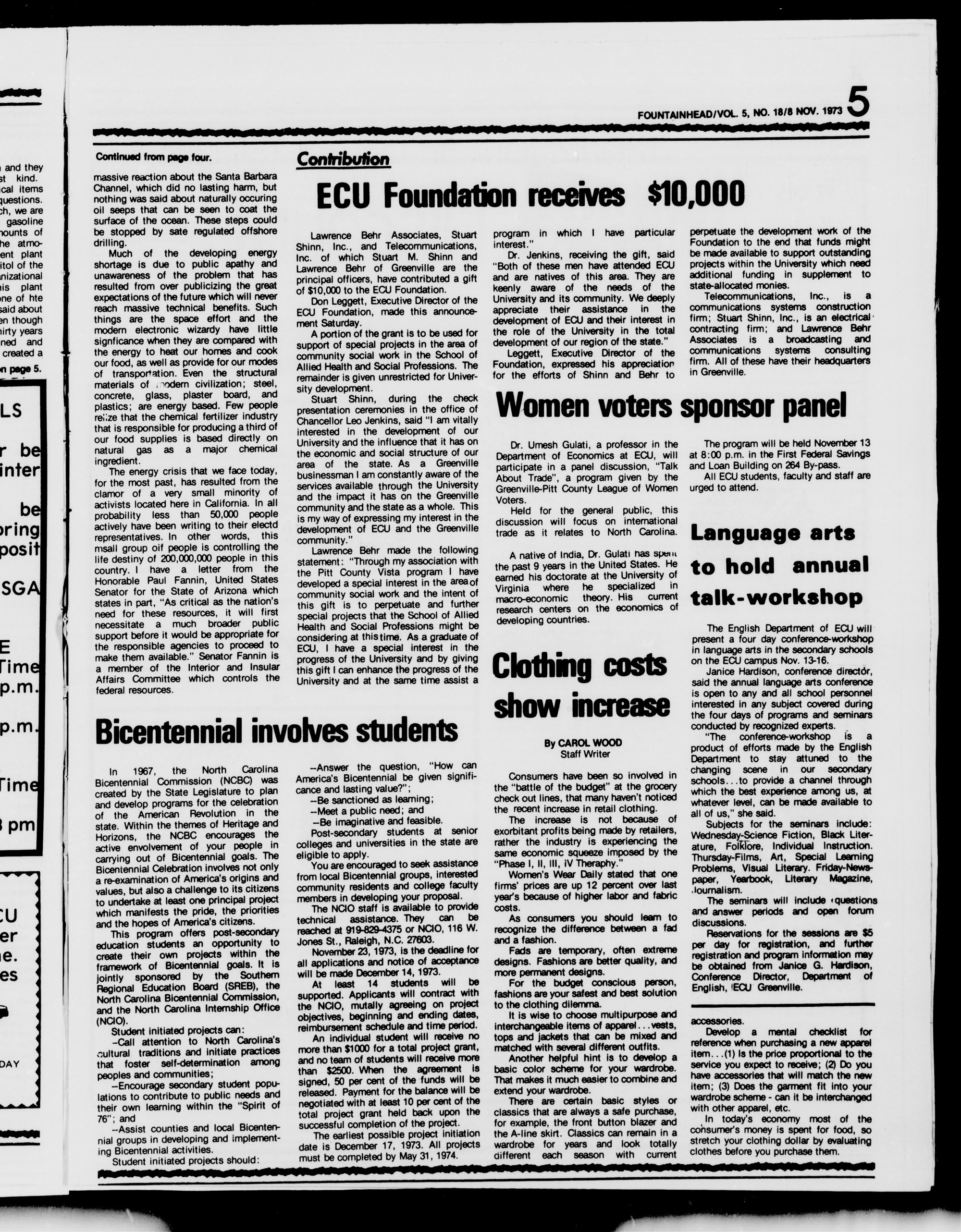 EAST CAROLINA UNIVERSITY FOUNTAINHEADVOL. 5,