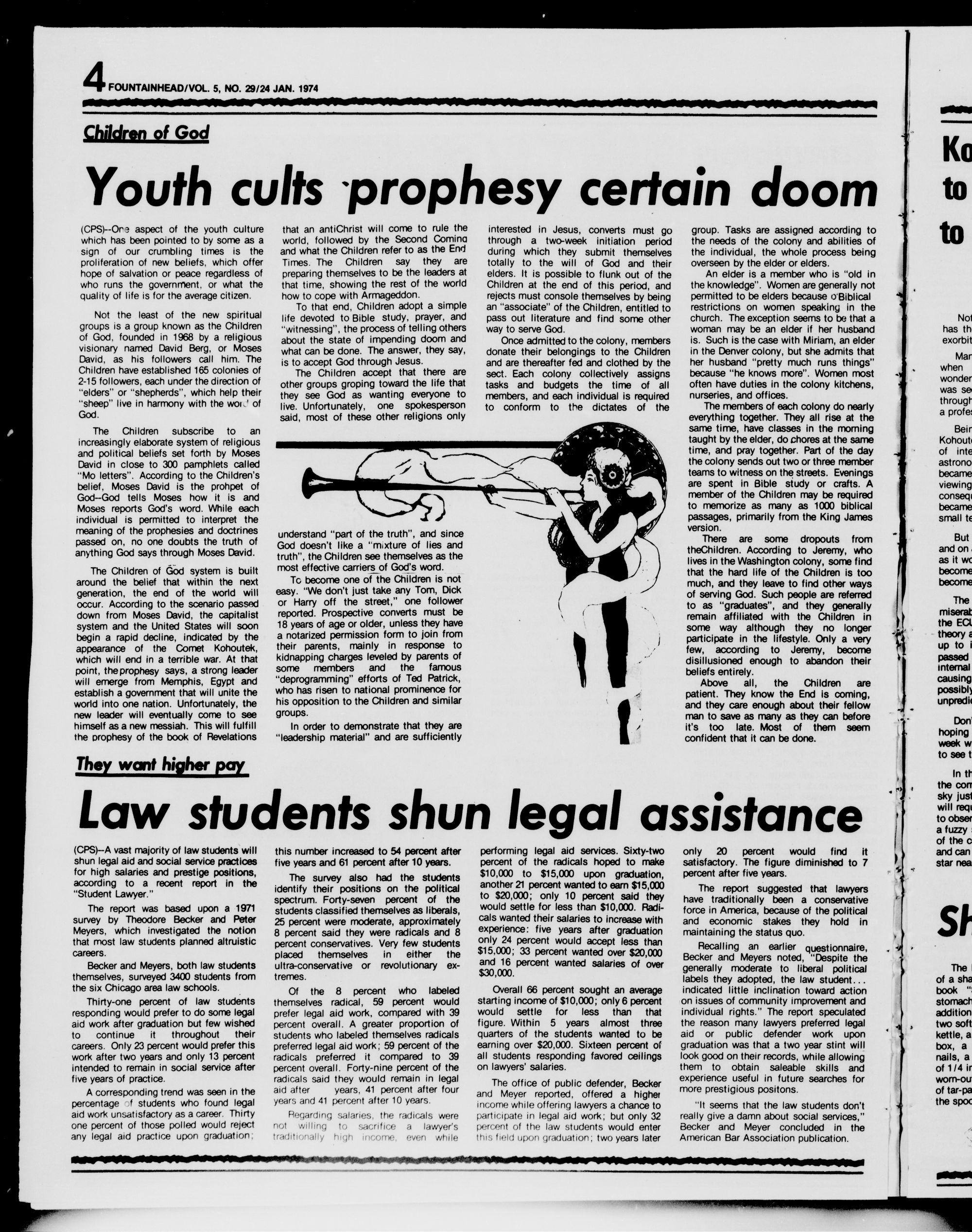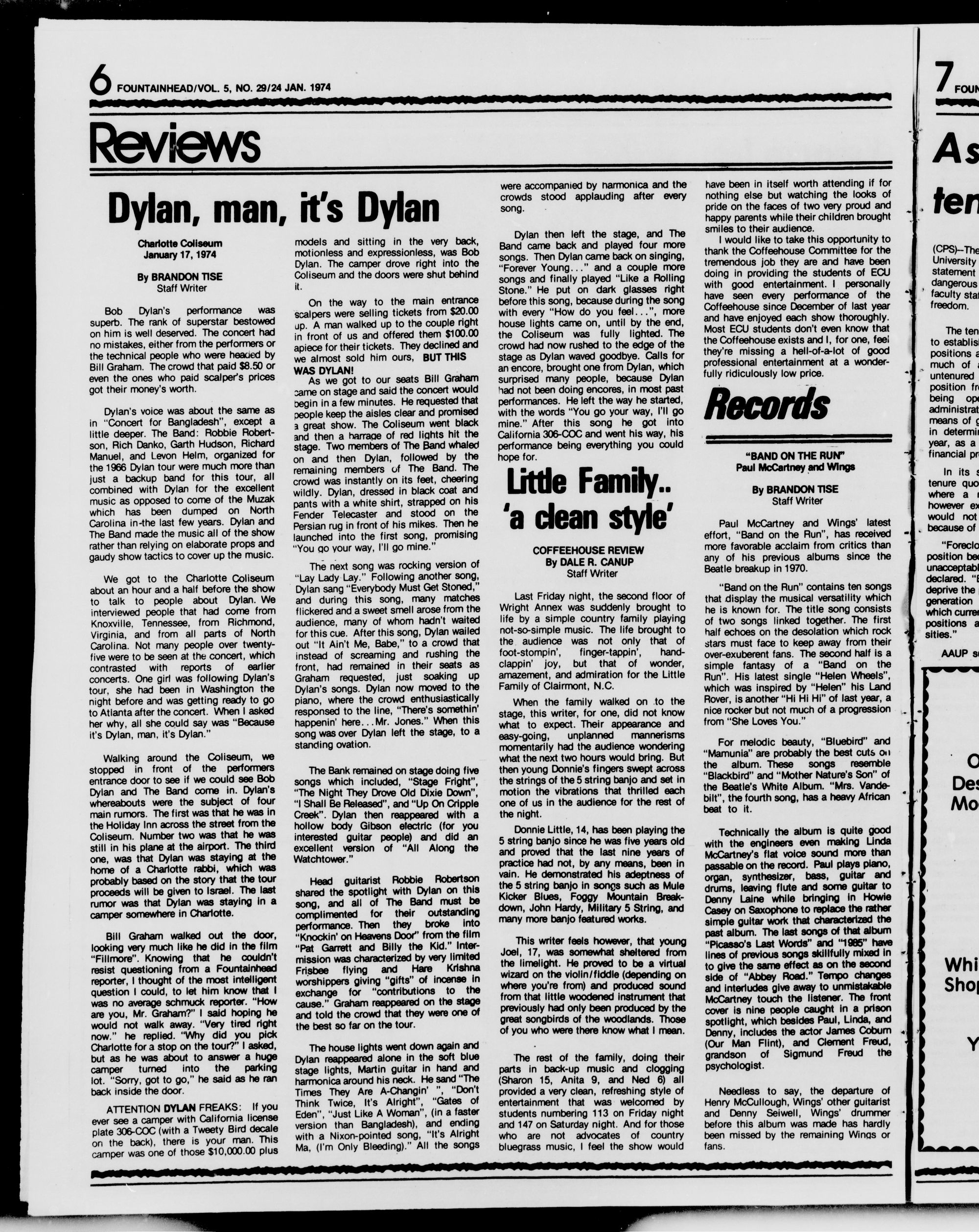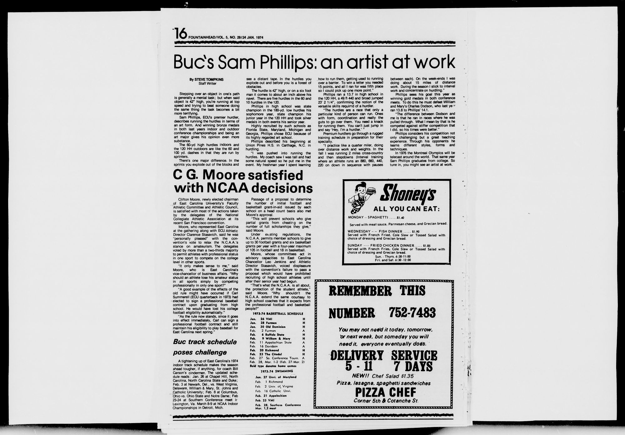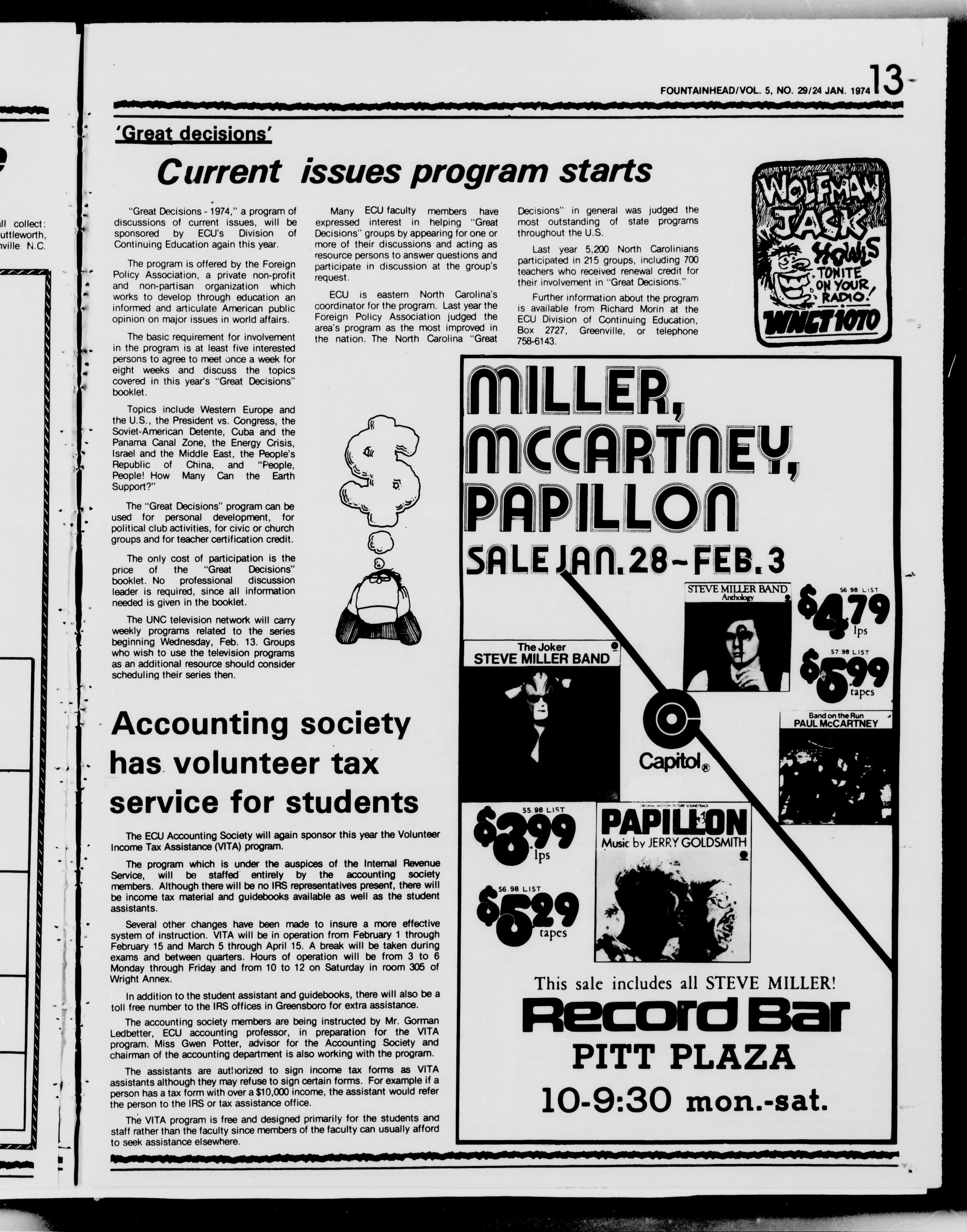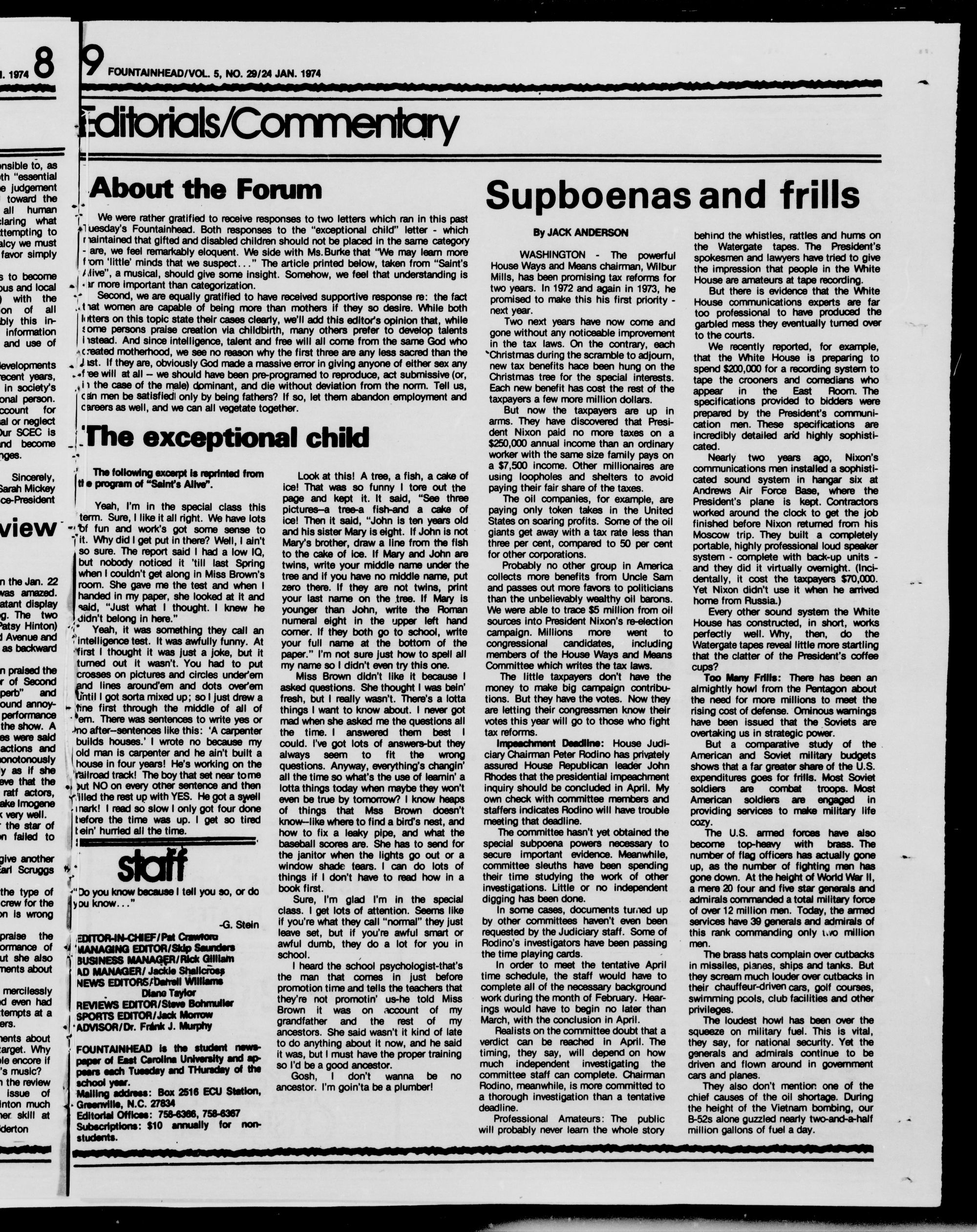East Carolina's student-run campus newspaper was first published in 1923 as the East Carolina Teachers College News (1923-1925). It has been re-named as The Teco Echo (1925, 1926-1952), East Carolinian (1952-1969), Fountainhead (1969-1979), and The East Carolinian (1969, 1979-present). It includes local, state, national, and international stories with a focus on campus events.