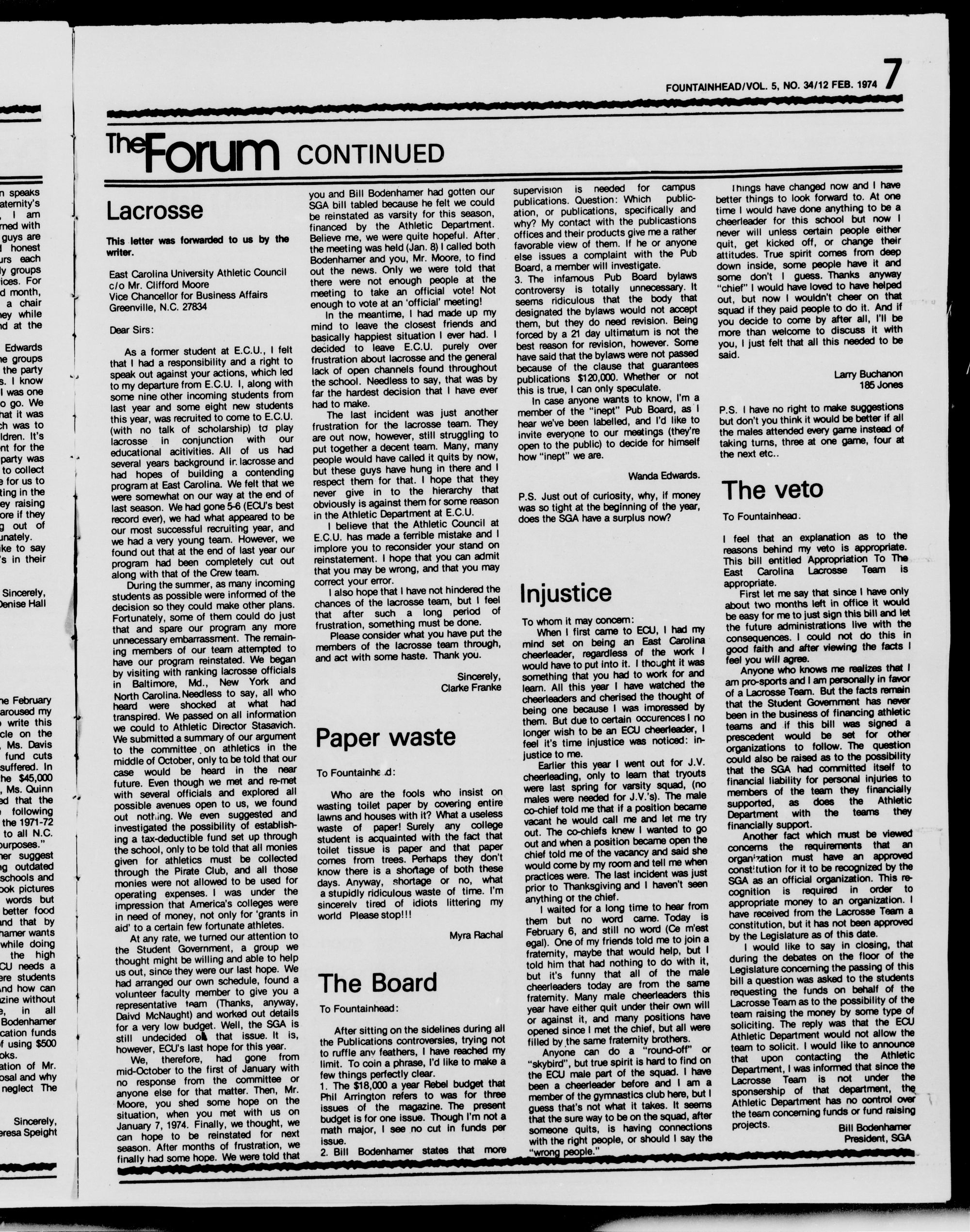 EAST CAROLINA UNIVERSITY FOUNTAINHEADVOL.
