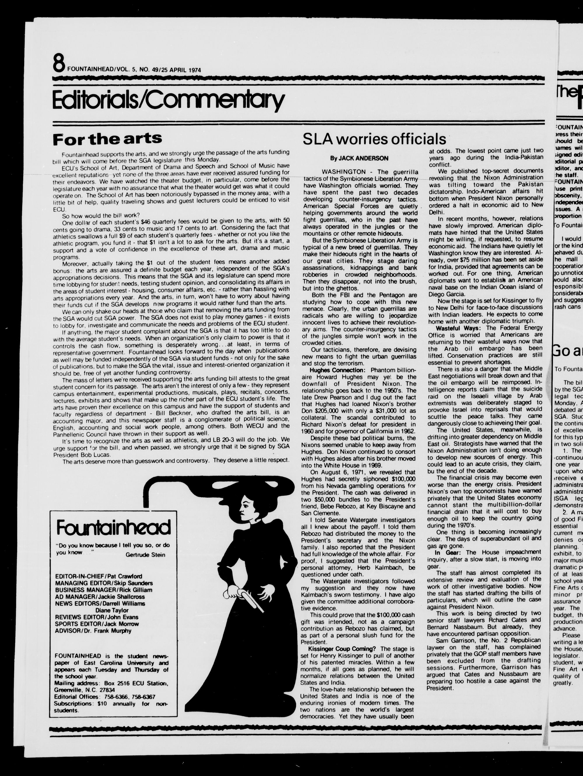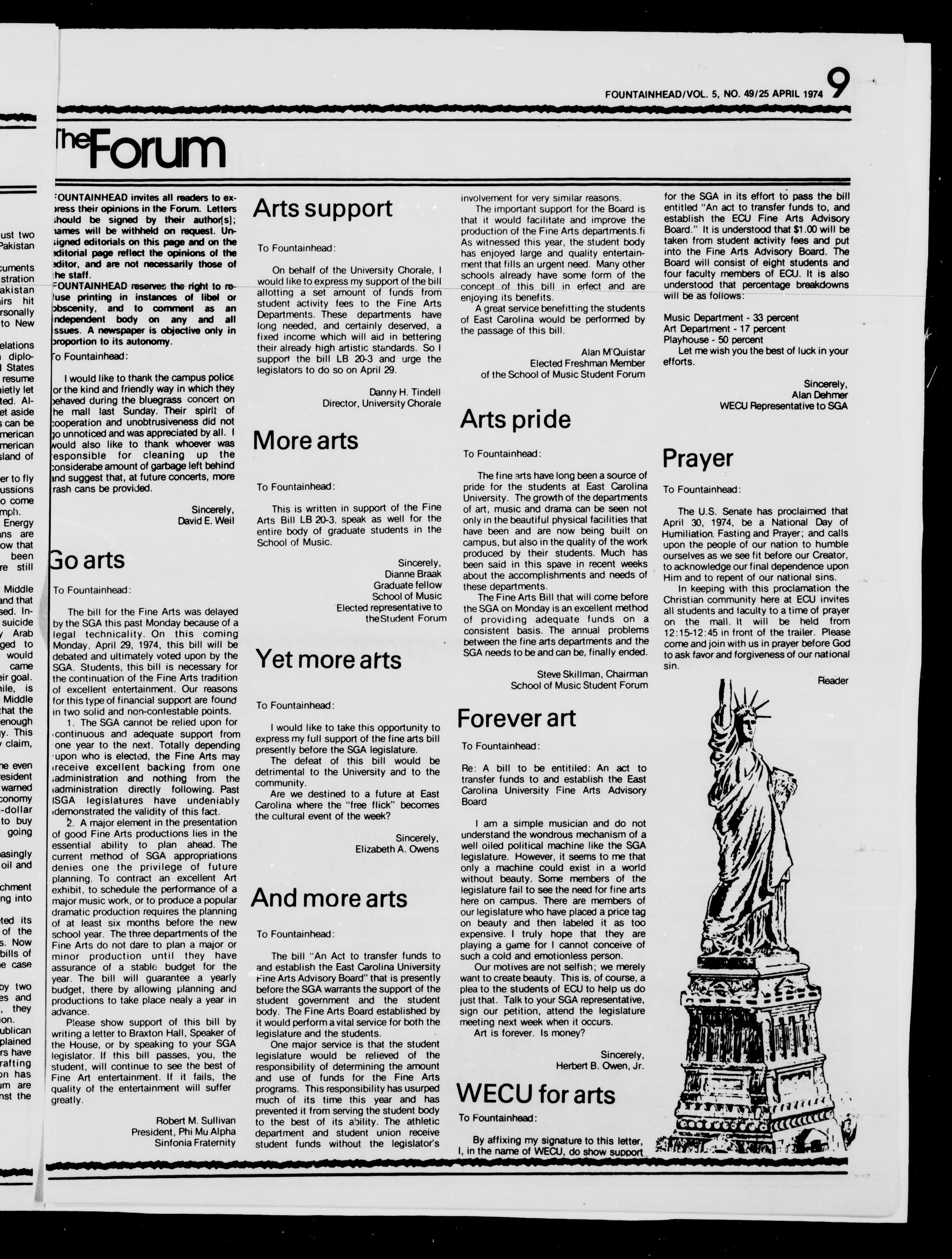 “because ie arts can't depend on the SGA