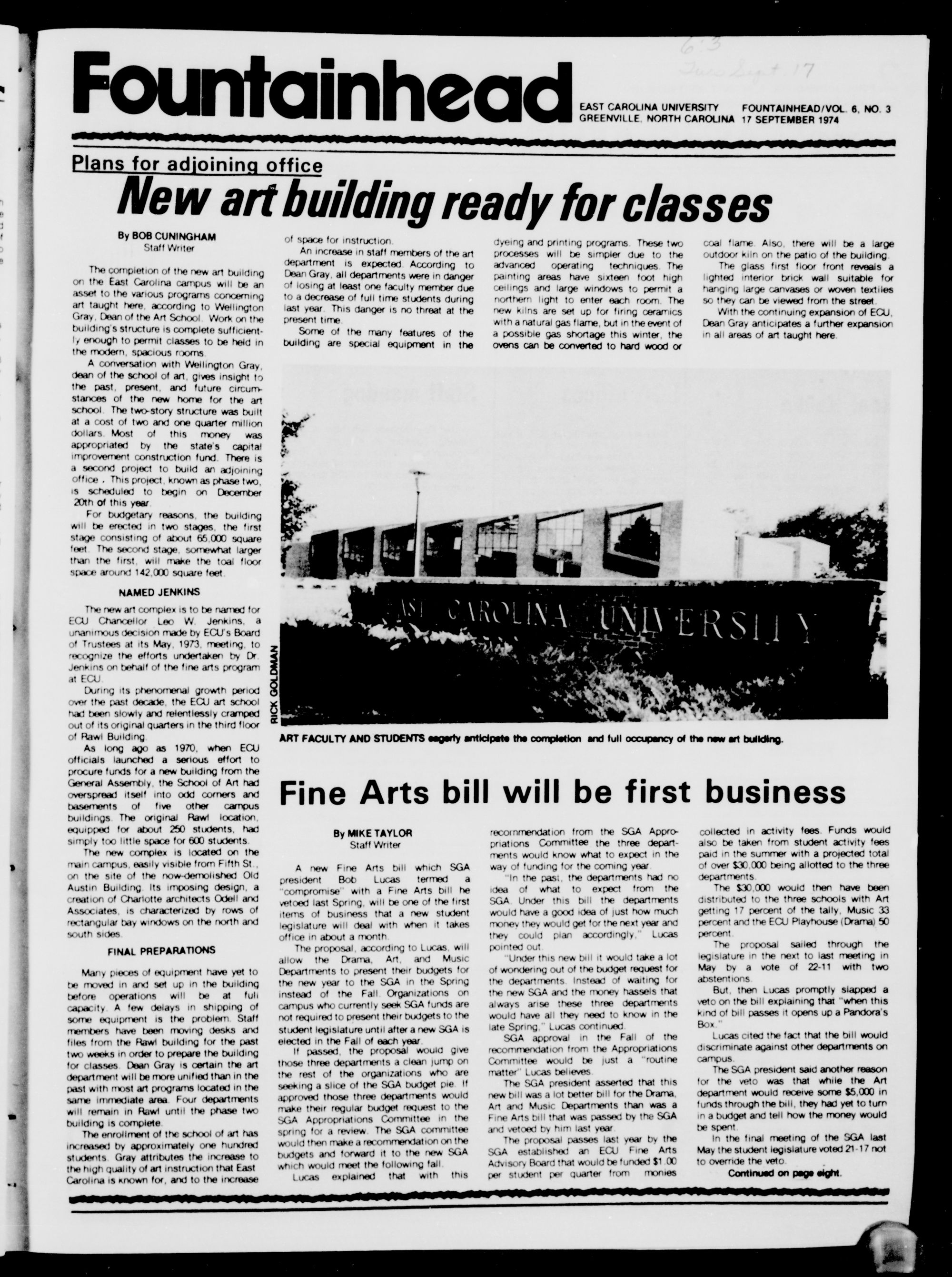 As long ago as 1970, when ECU officials launched a serious effort to procure funds for a new building from the General Assembly, the School of Art had overspread itself into odd comers and basements of five other campus buildings. The original Raw! location, equipped for about 250 students, had simply too little space for 600 students