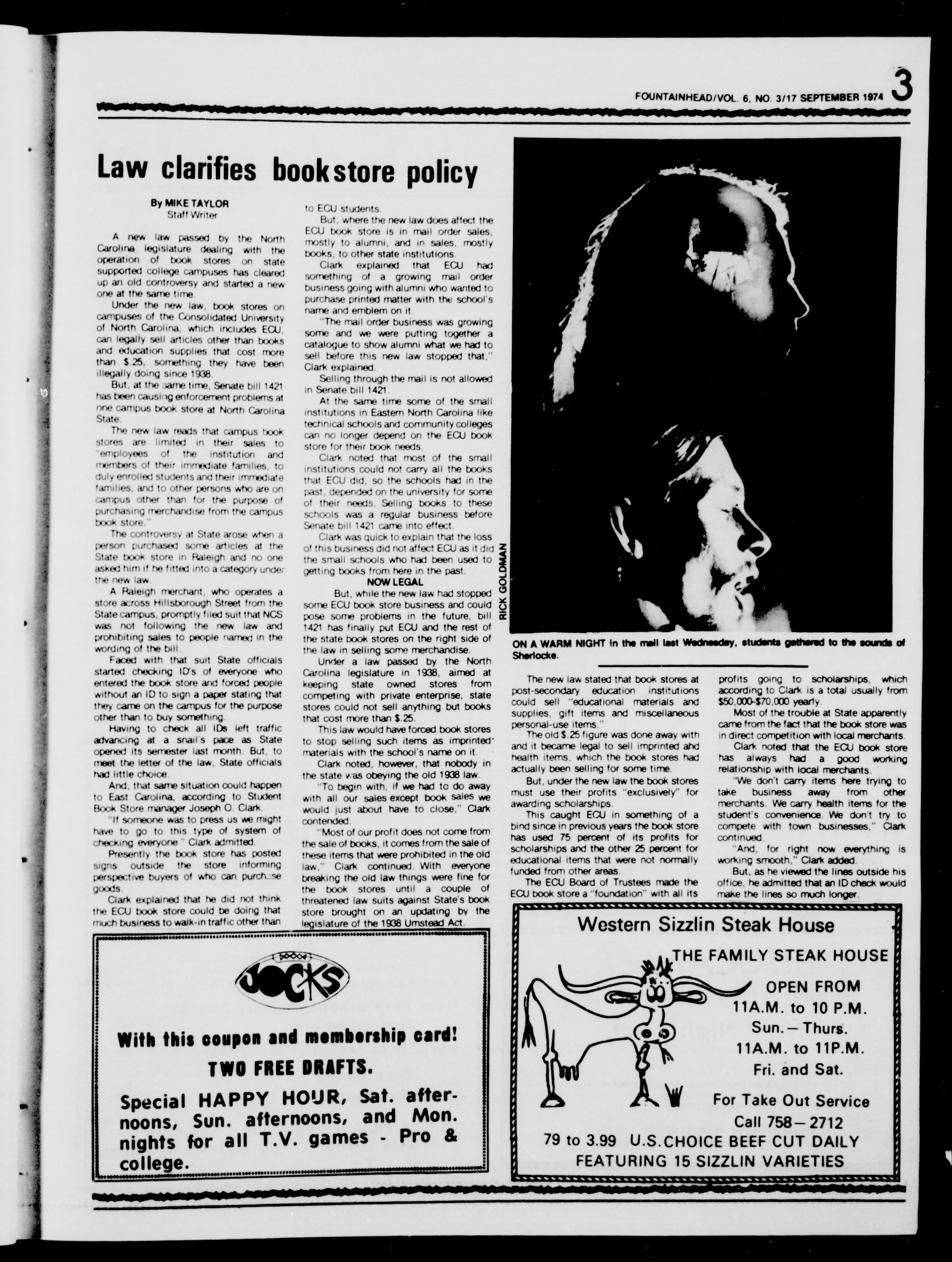 The 1974 Buccaneer staff regrets that due to circumstances beyond our control the 1974 Buccanneer will not be delivered this month. A delay has set delivery date back to sometime in November. The book will be available to all students that attended ECU during the 1973-74 school year. All spring and summer school graduates as weil as transfer students wil! have their books mailed to them directly from the publishers. Again we are sorry for the delay
