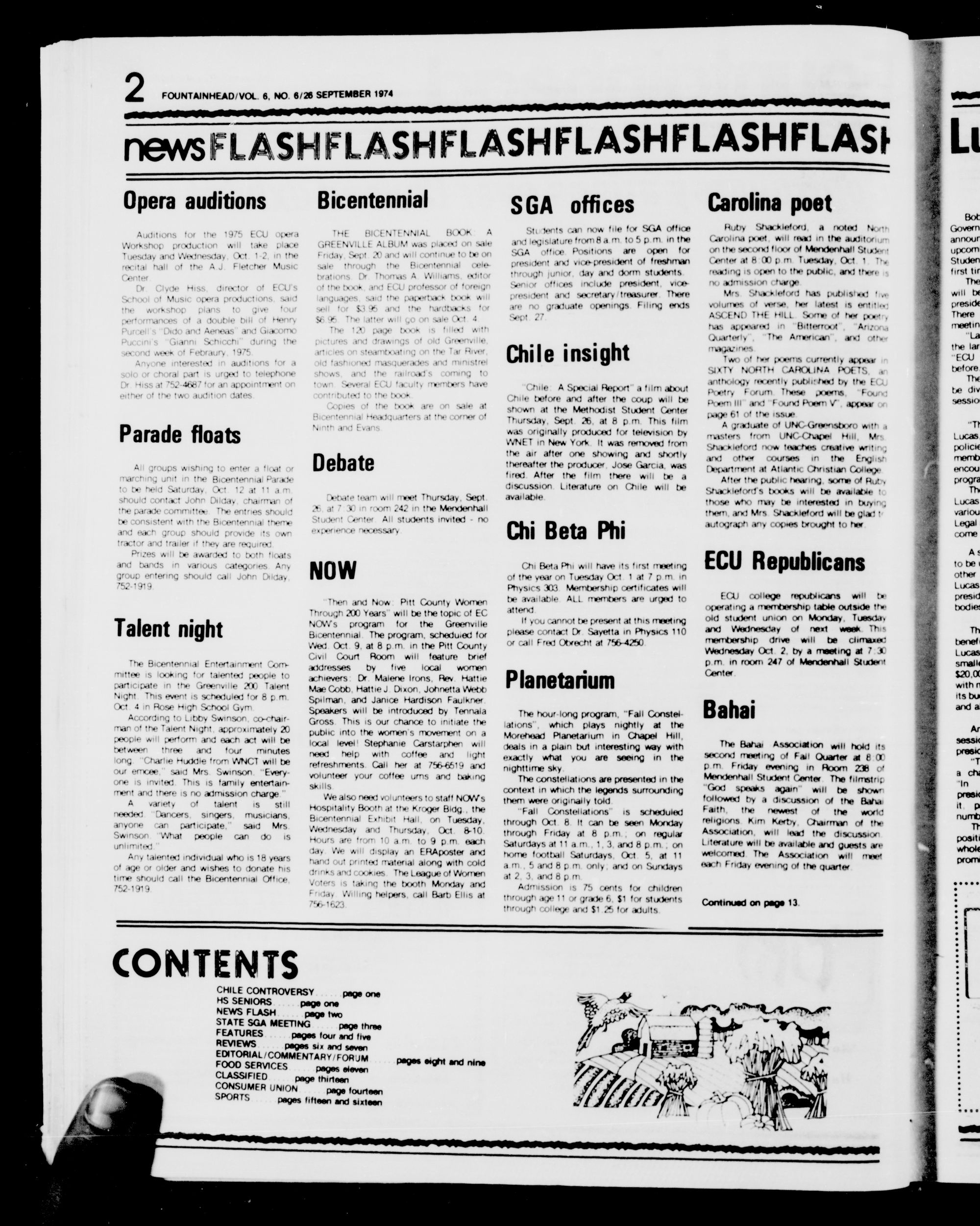 Auditions for the 1975 ECU opere THE BICENTENNIAL BOOK st adieneane ene m. to 5 p.m. inthe Carolina poet, will read in the auditoriur annour