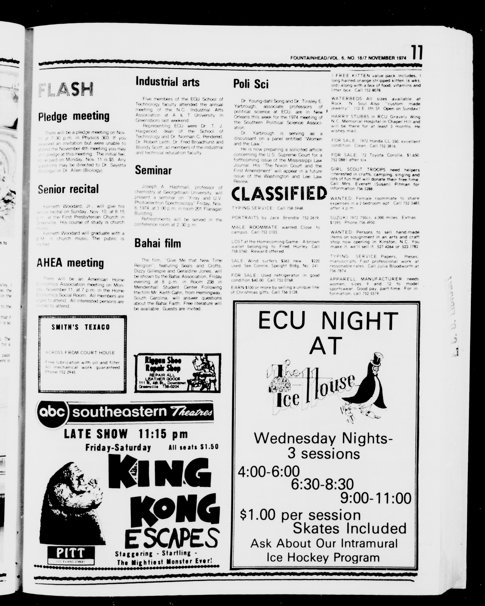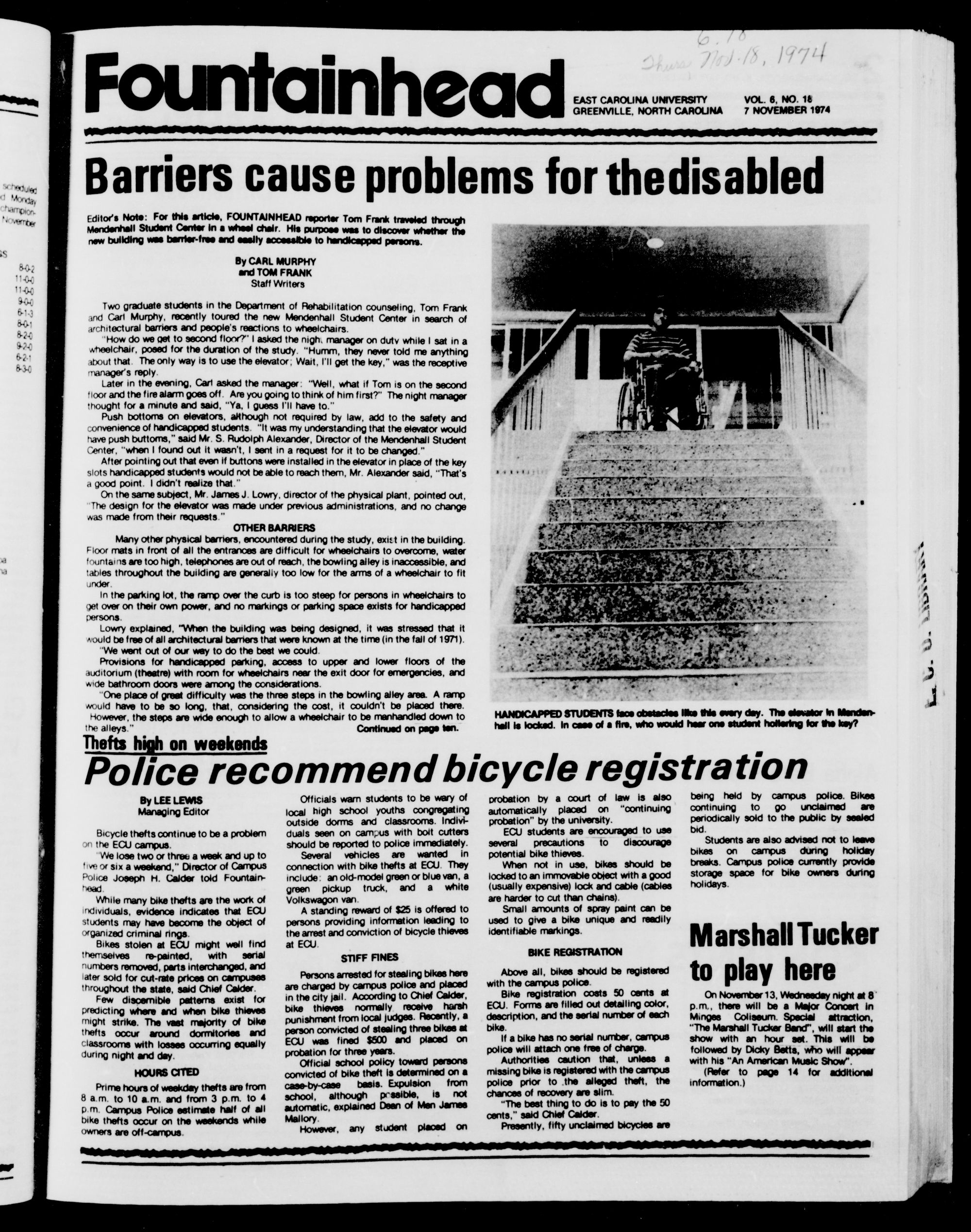 Mendenhall Student Center in a wheel chair. His purpose was to discover whether the