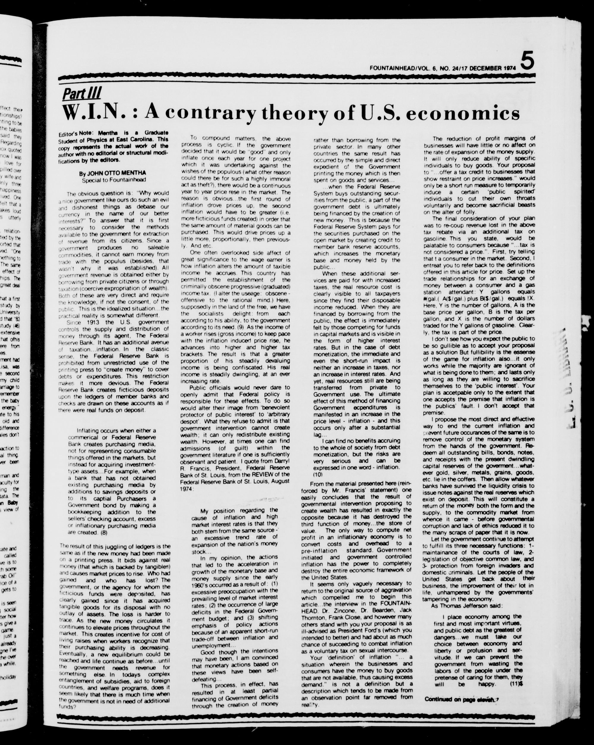 VOL. 6, NO. 2417 DECEMBER 1974