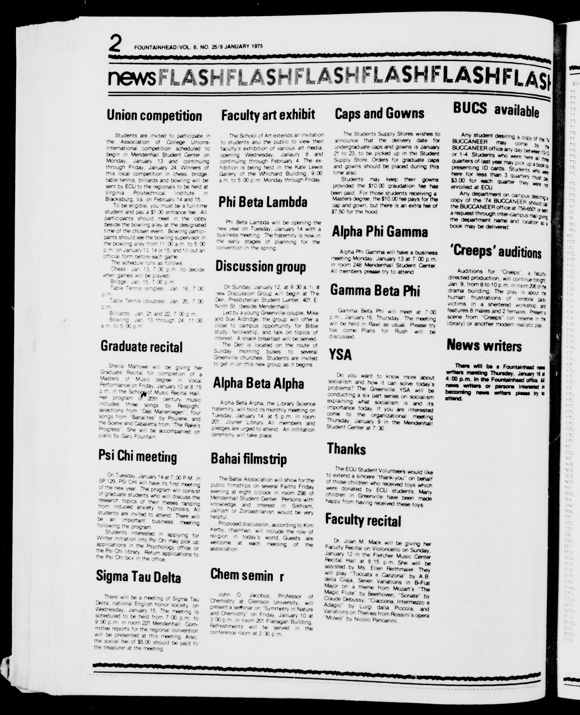 2 FOUNTAINHEADVOL. 6, NO. 259 JANUARY 1975 . Bes. newsFLASHFLASHFLASHFLASHFLASHFLAg