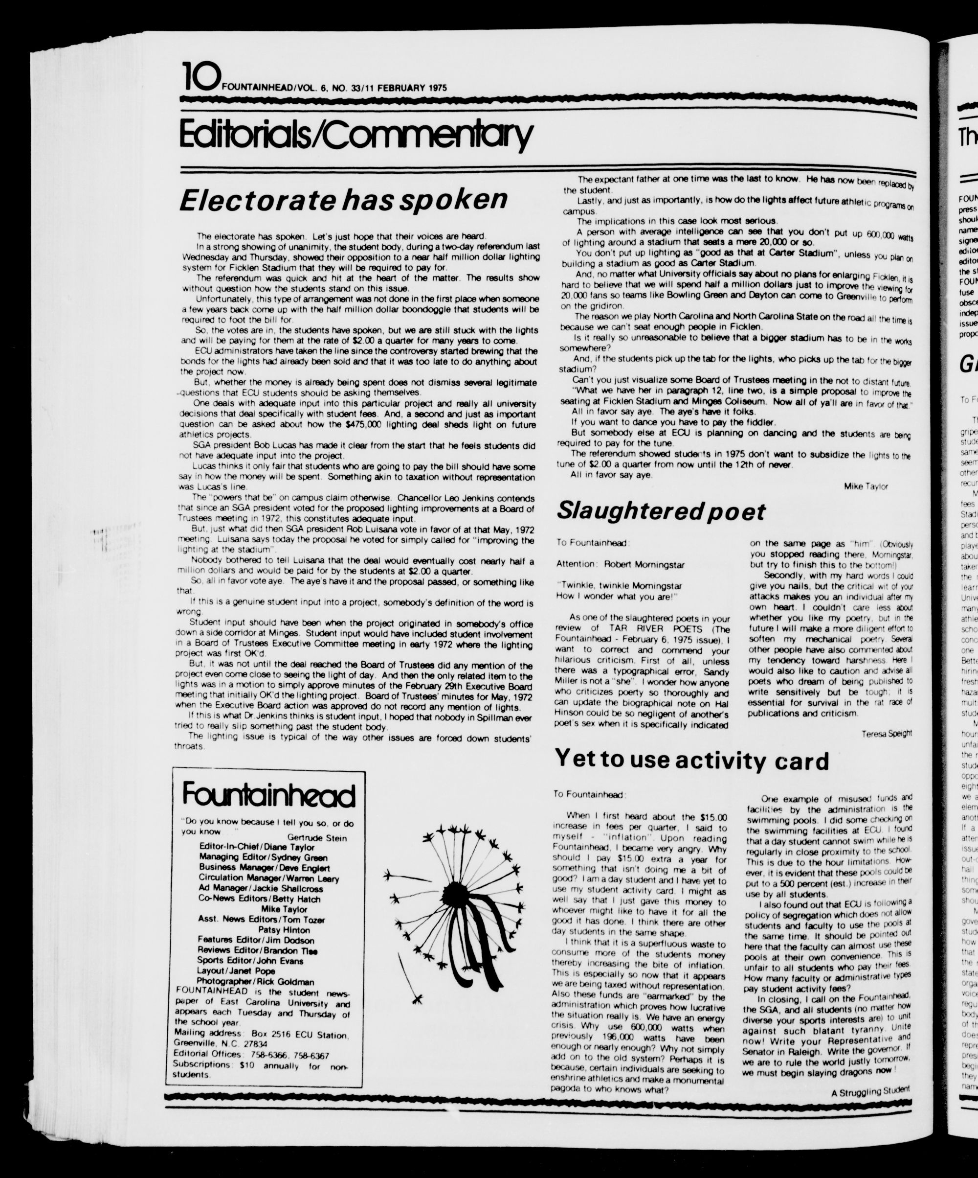 , athletics be lowered $2 a quarter