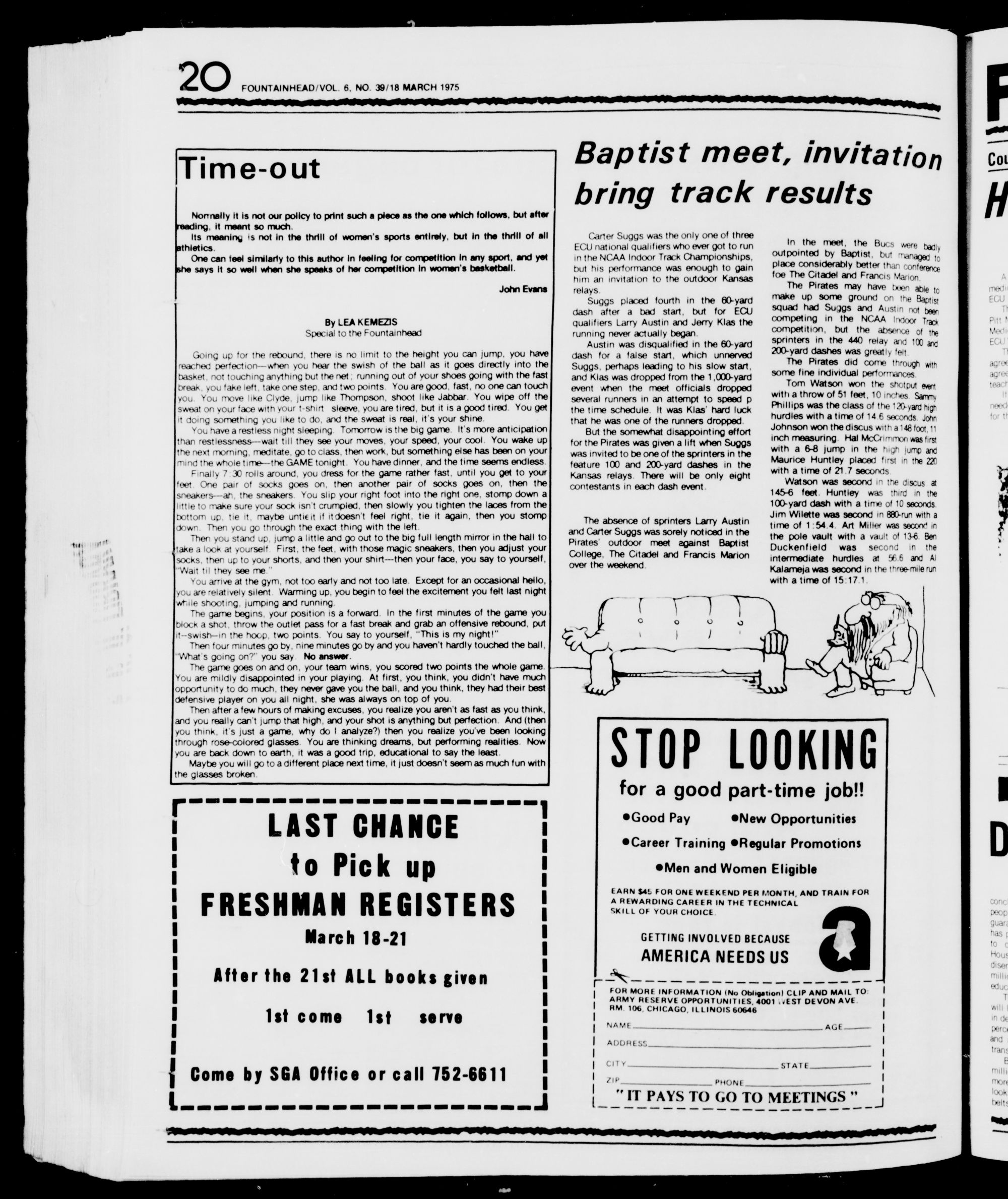 Come by SGA Office or call 752-6611