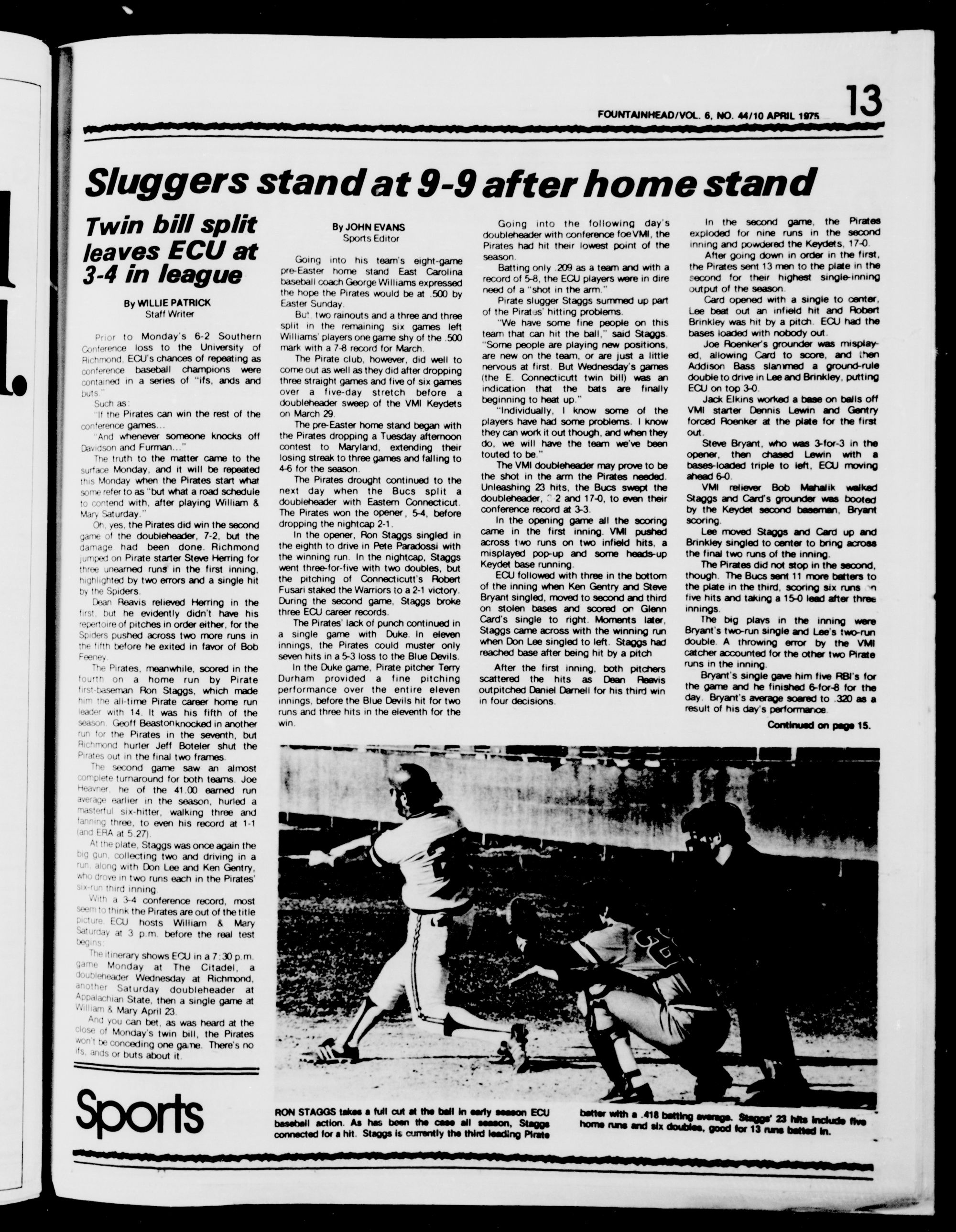 Wesleyan and Pembroke State, the ECU dropped all matches last year and have