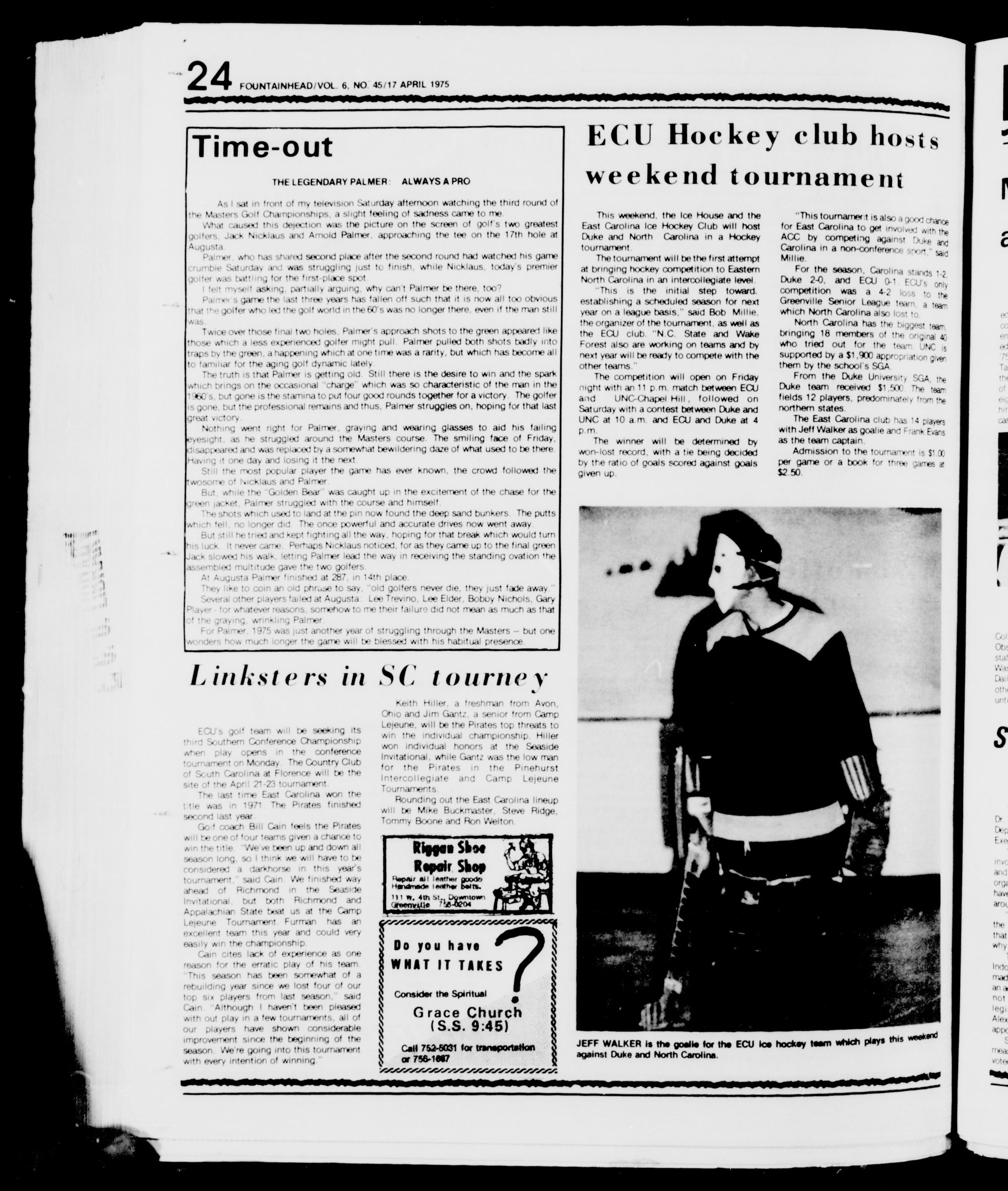 JEFF WALKER is the goalie for the ECU ice hockey team which plays this
