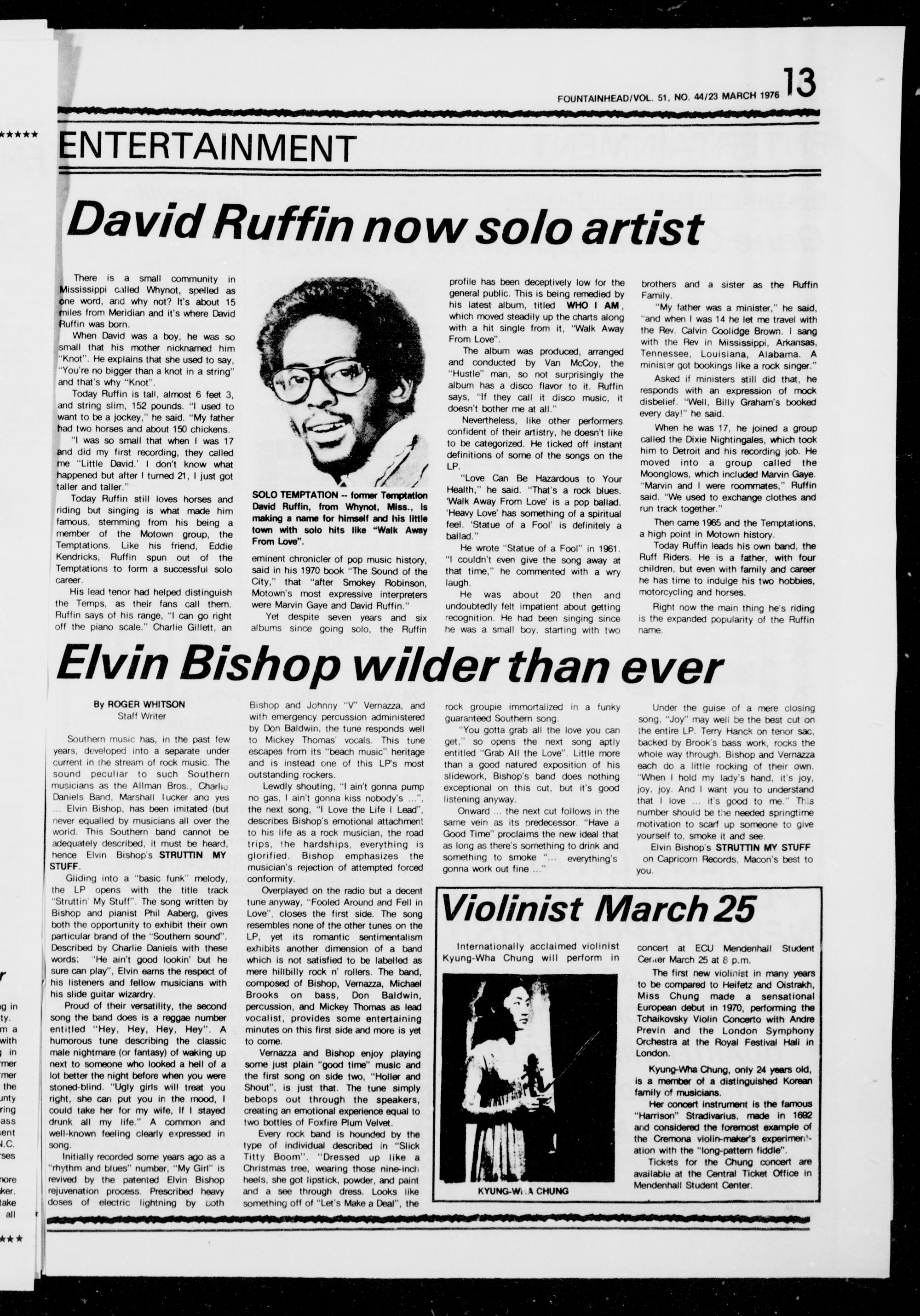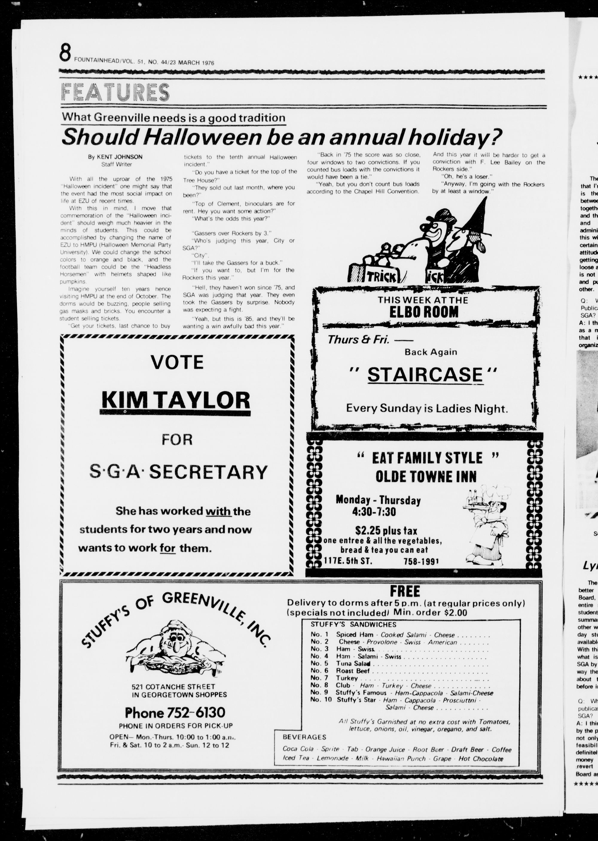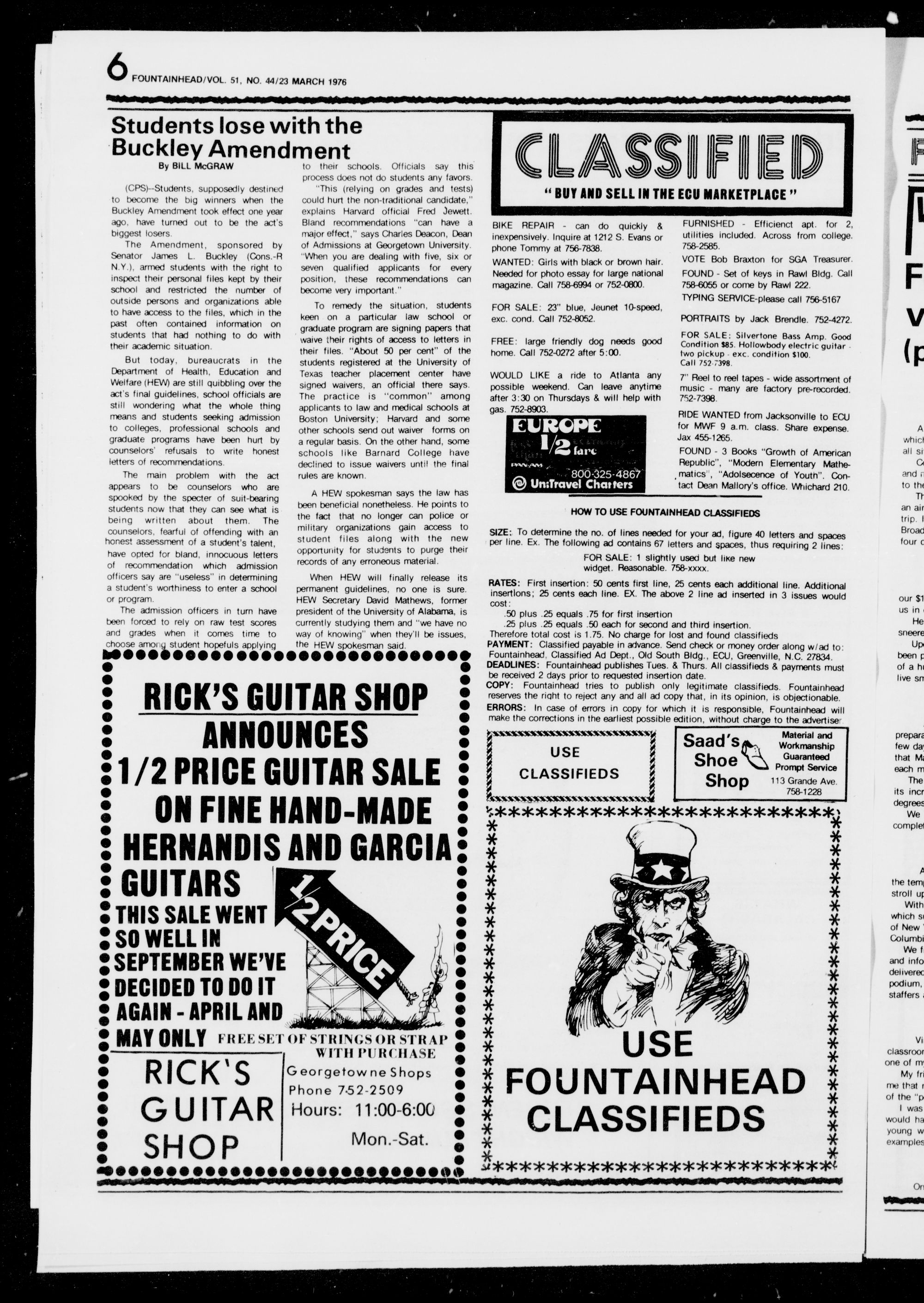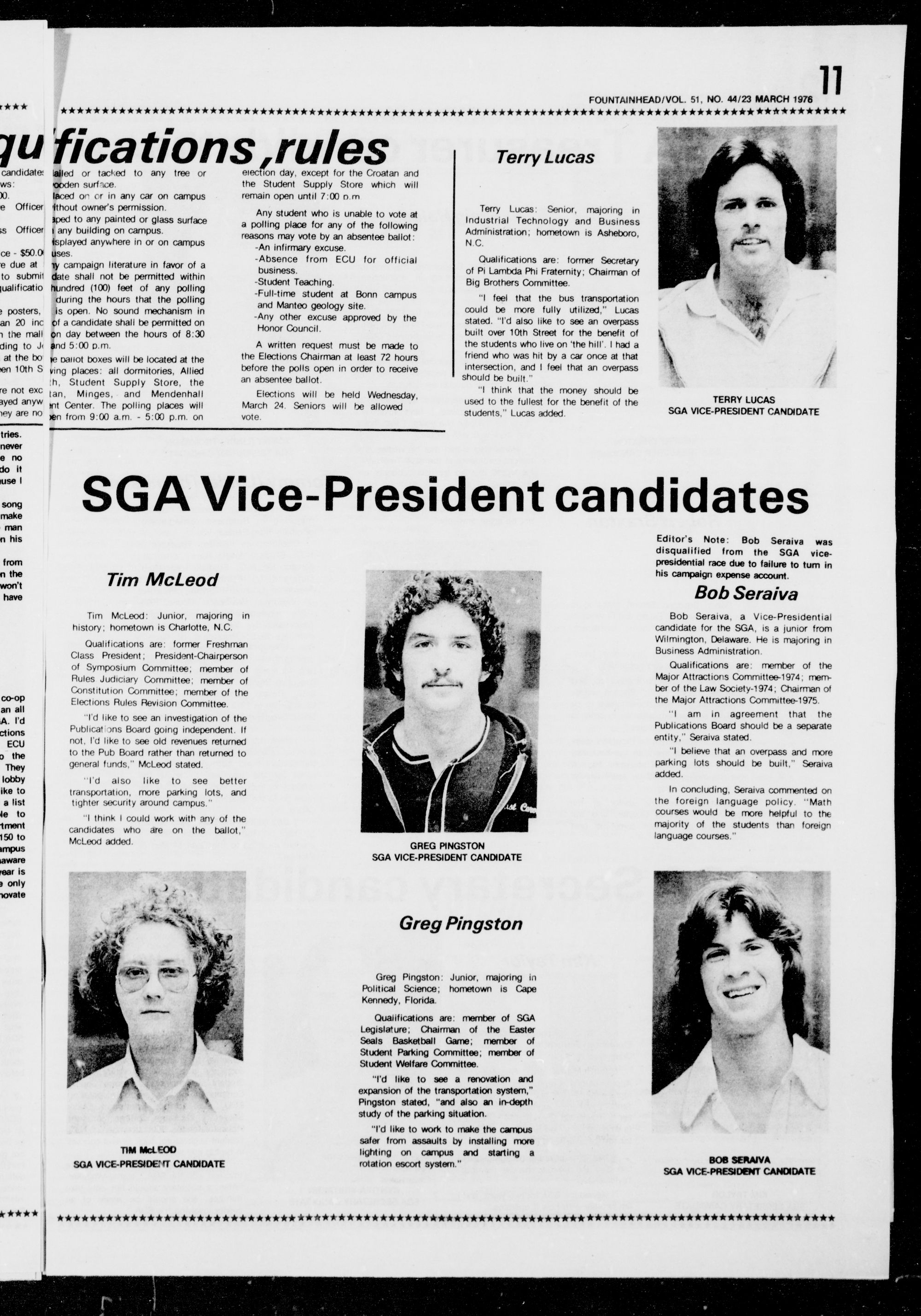 East Carolina's student-run campus newspaper was first published in 1923 as the East Carolina Teachers College News (1923-1925). It has been re-named as The Teco Echo (1925, 1926-1952), East Carolinian (1952-1969), Fountainhead (1969-1979), and The East Carolinian (1969, 1979-present). It includes local, state, national, and international stories with a focus on campus events.