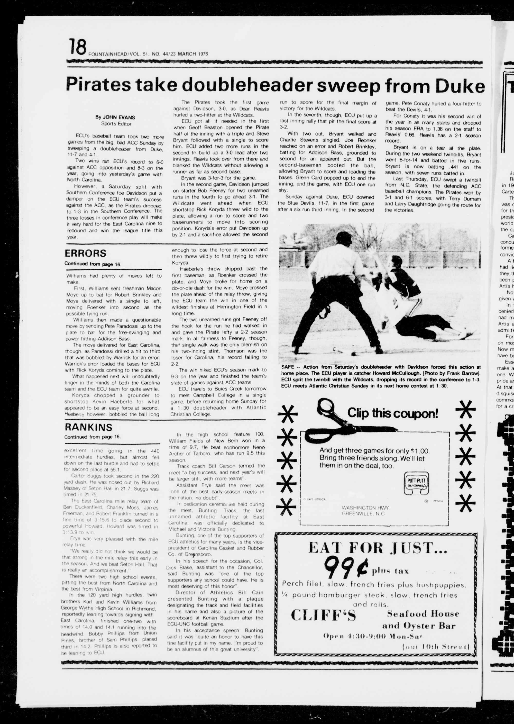Last Saturday's doubleheader split with Davidson leaves the ECU baseball te