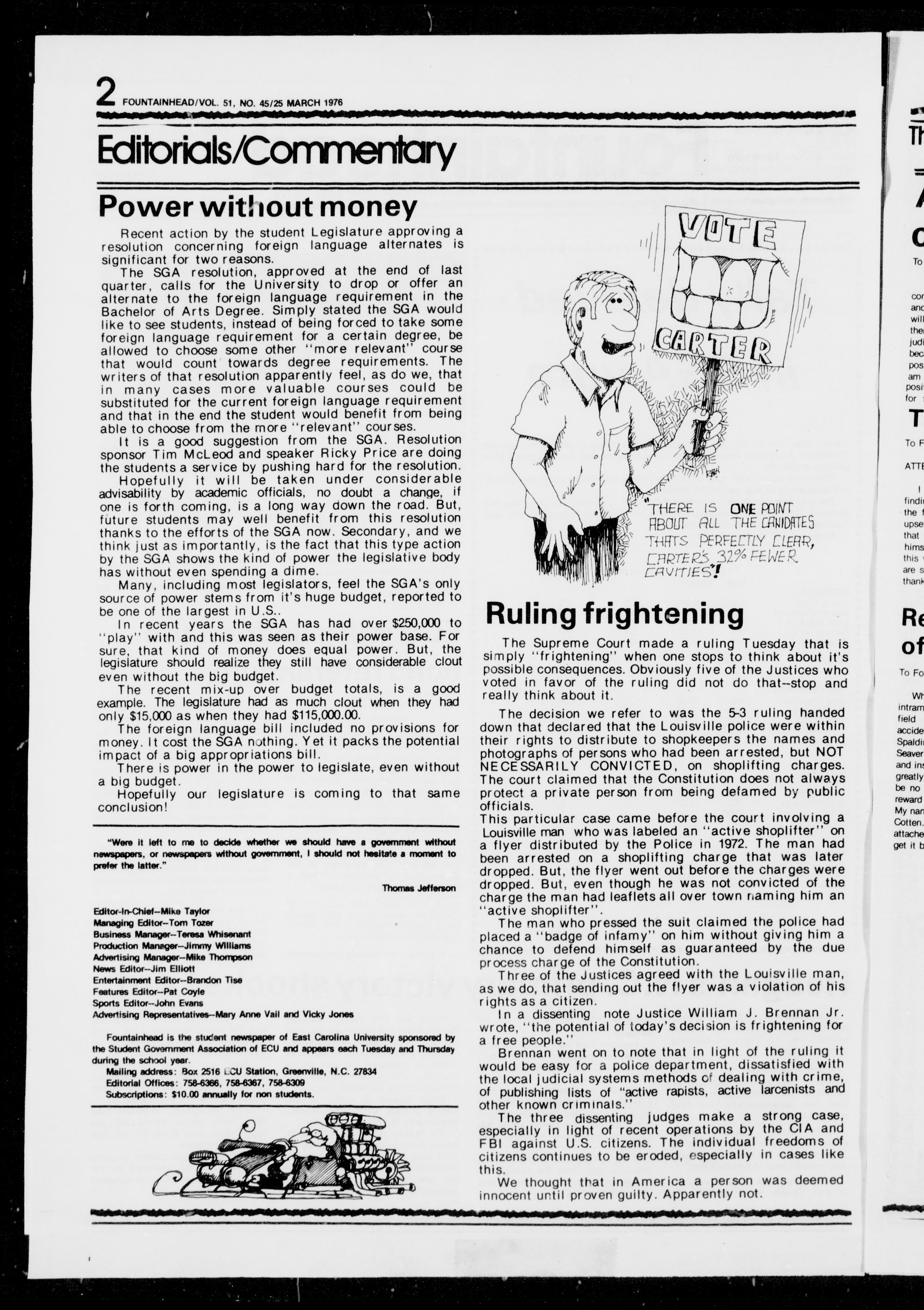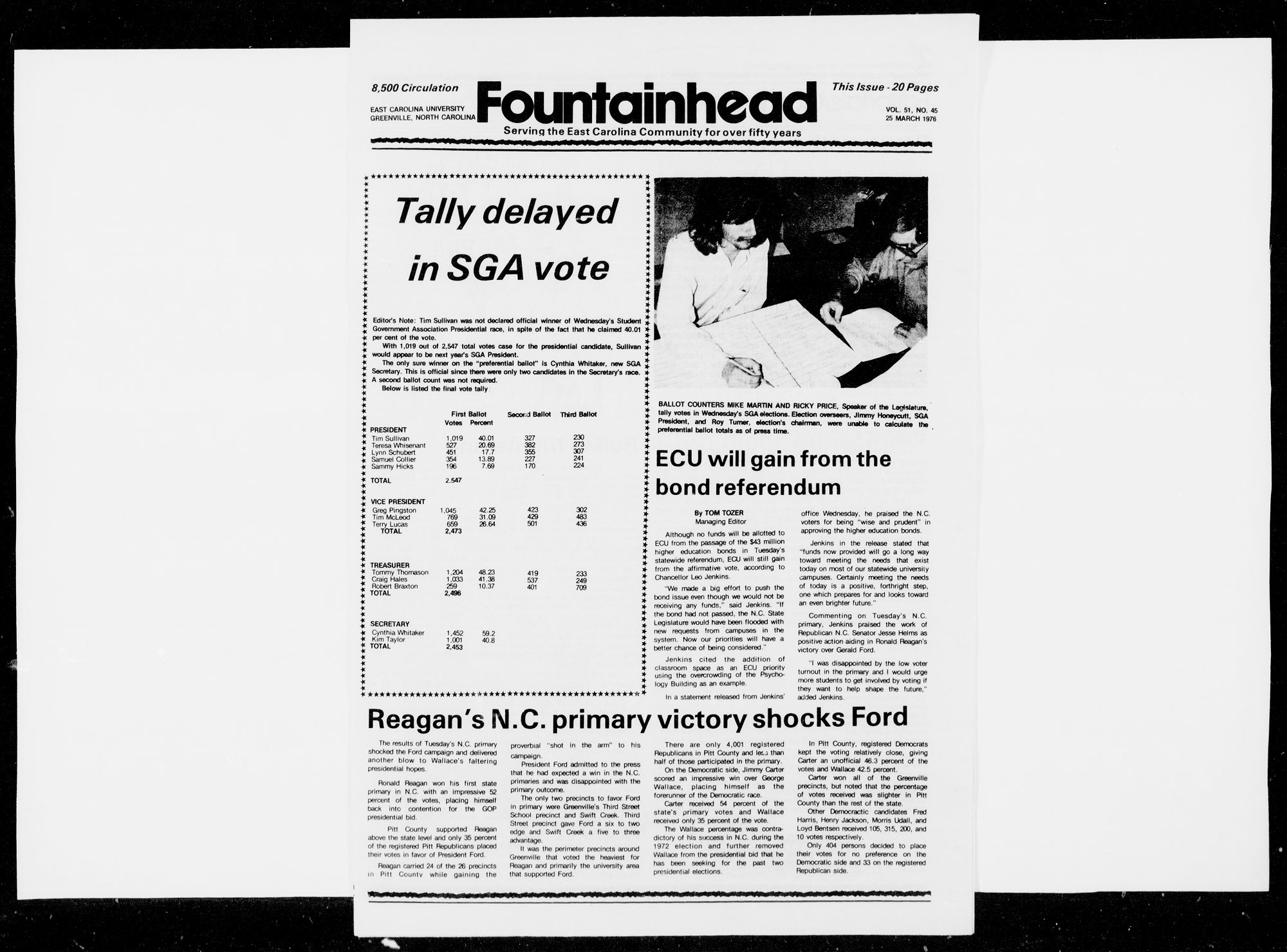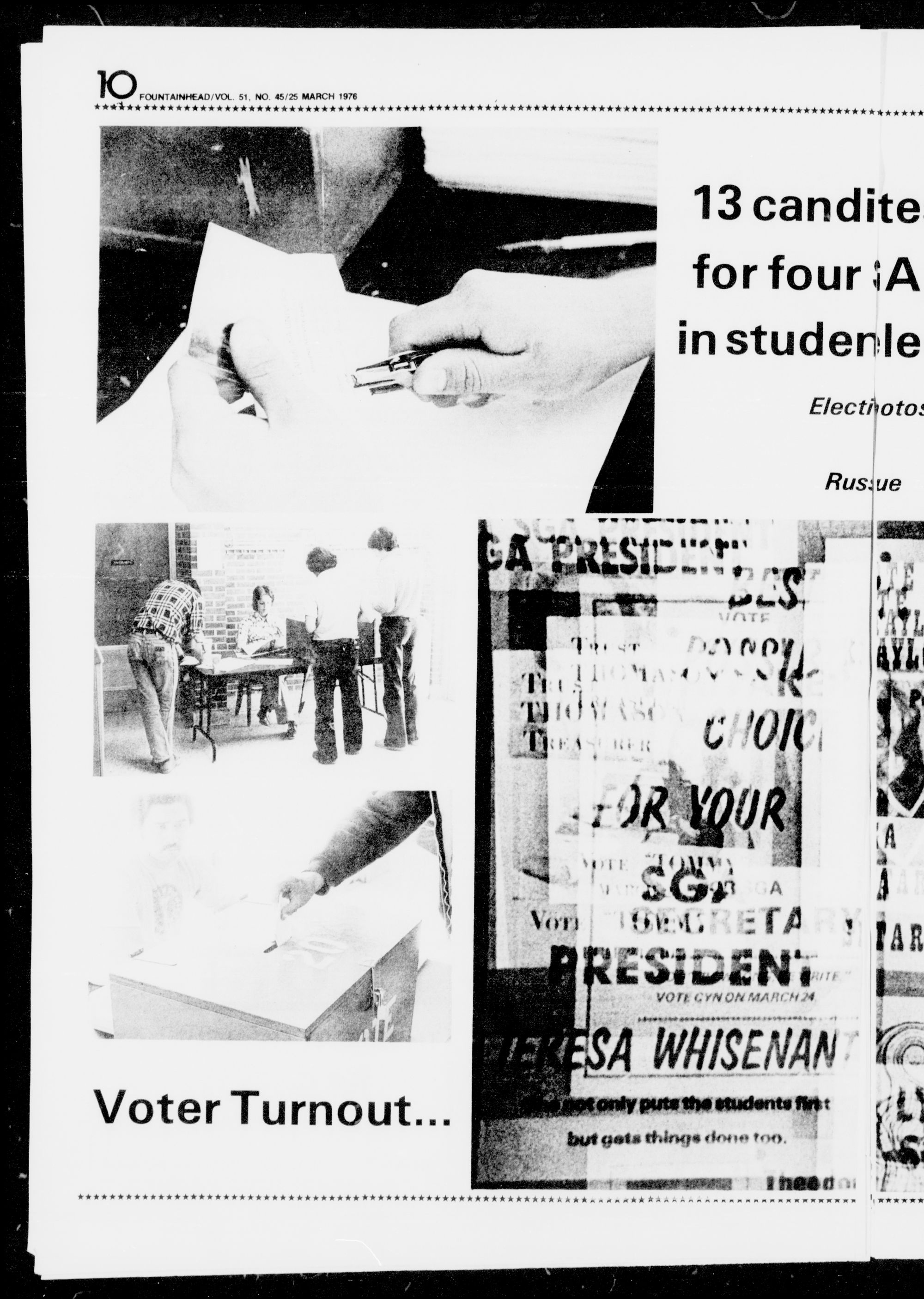The only sure winner on the "preferential bailor is Cynthia Whitaker, new SGA