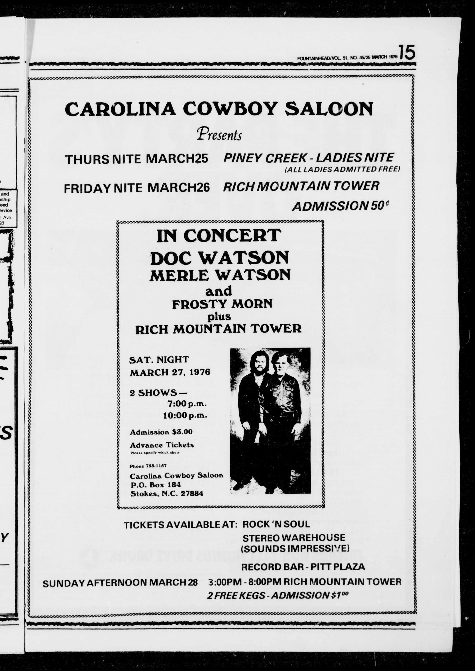 in Mendenhall Auditorium. Tickets are