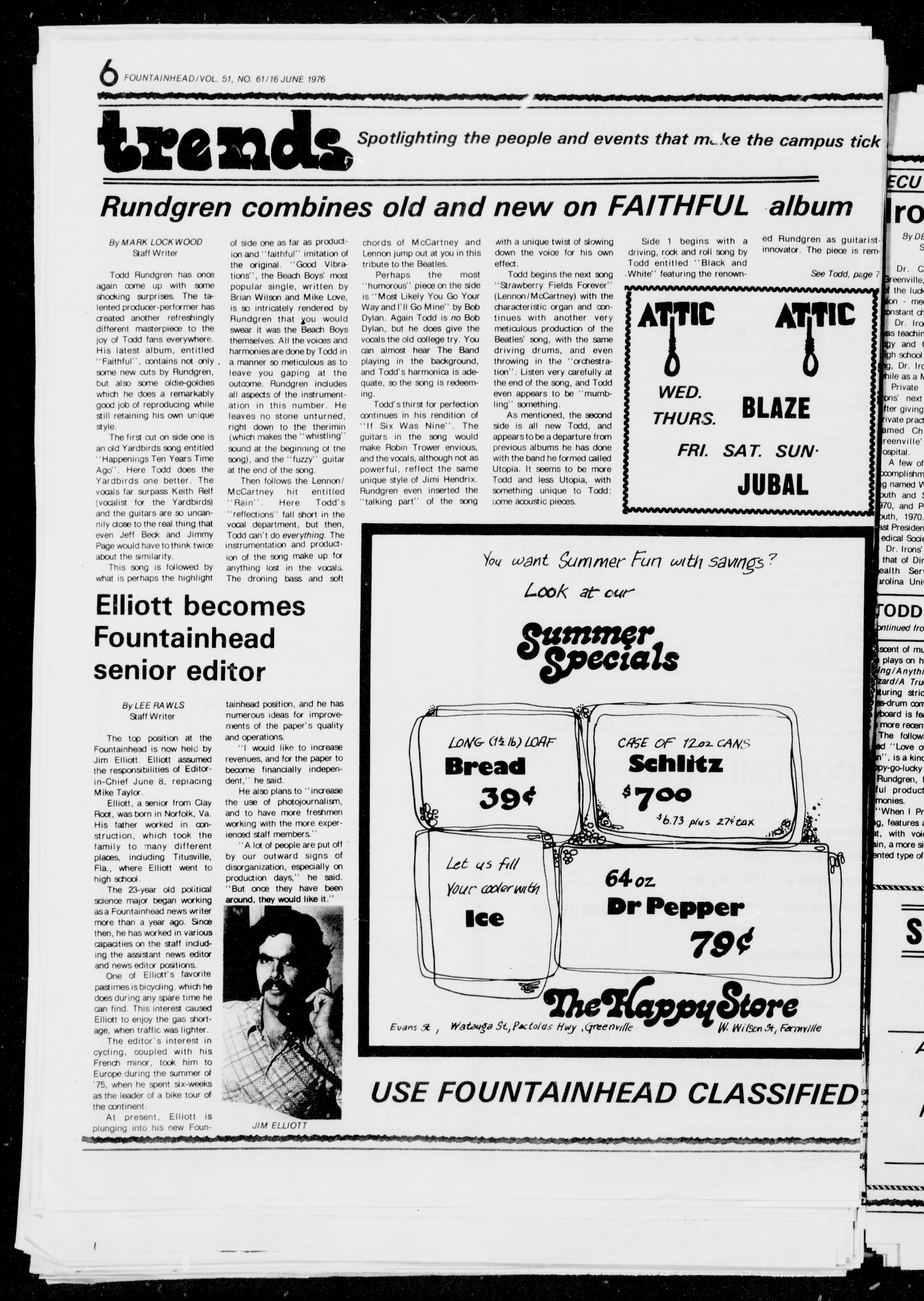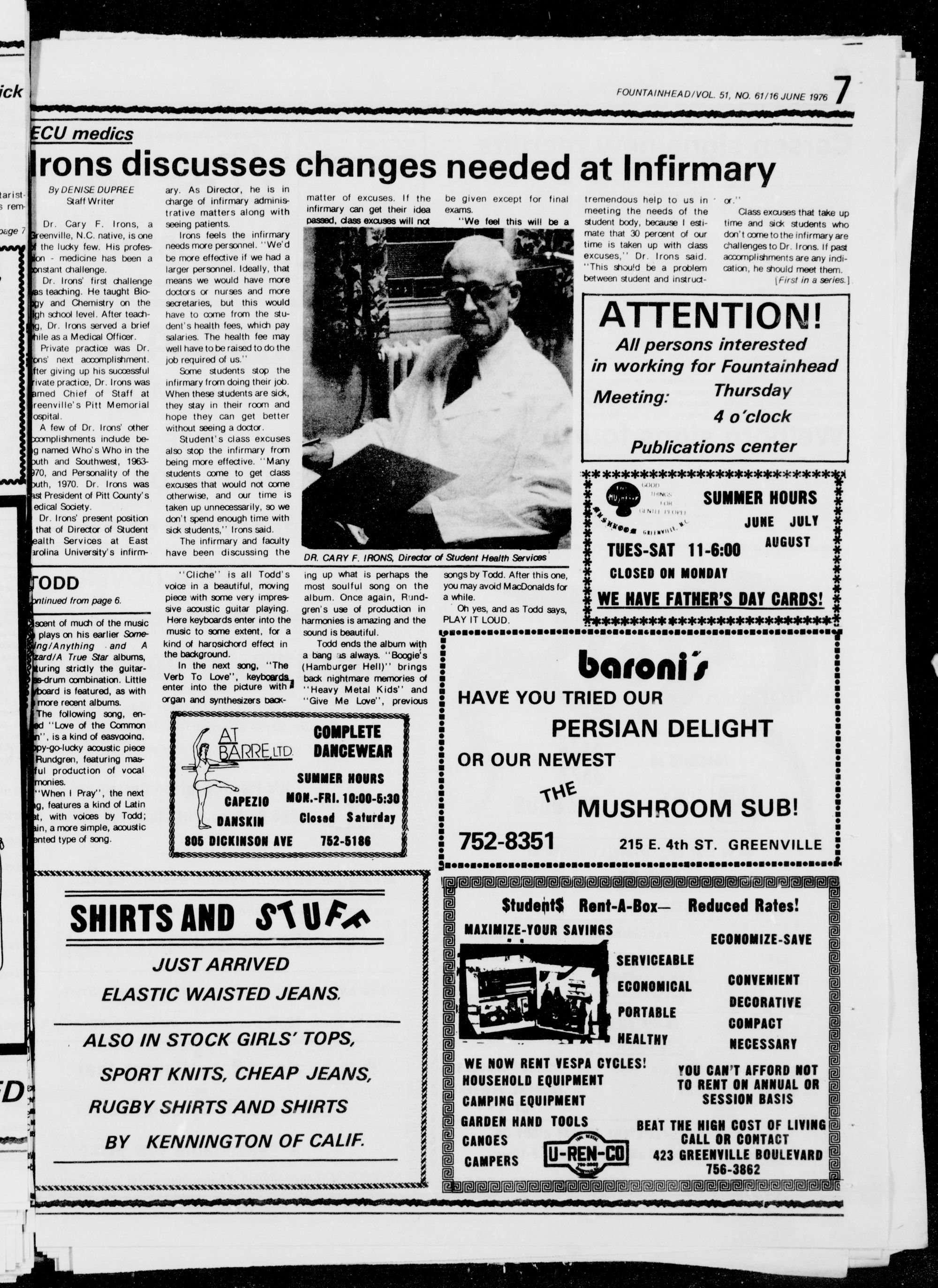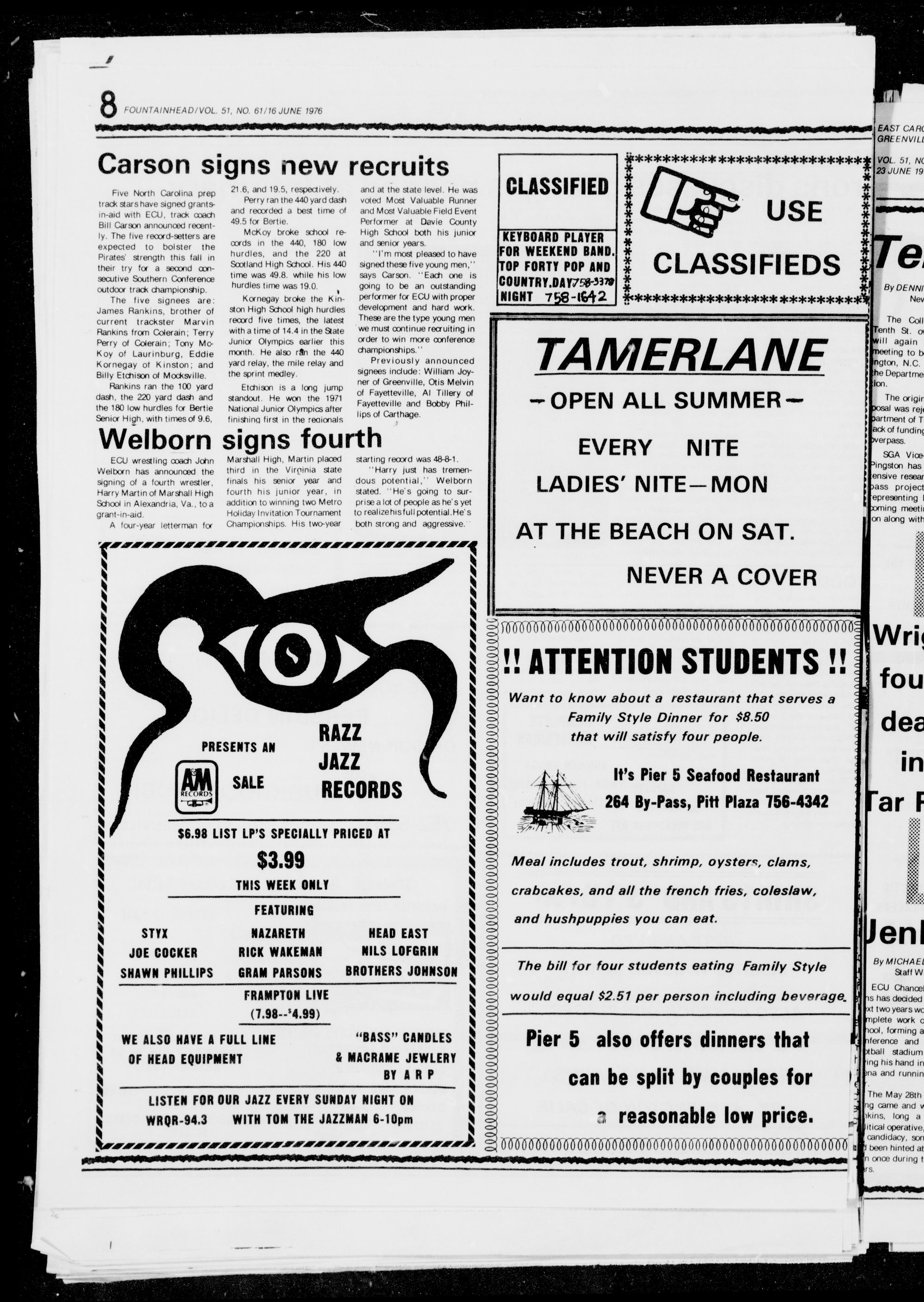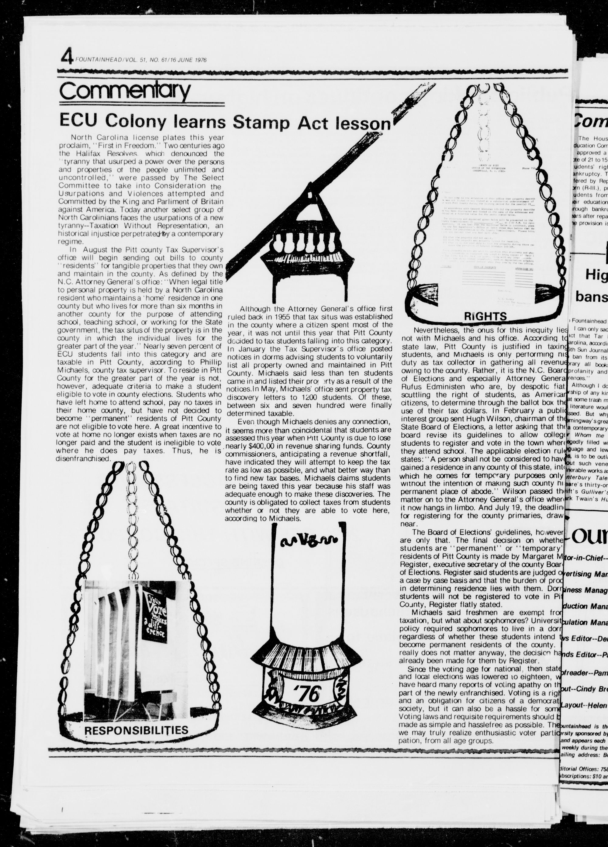 East Carolina's student-run campus newspaper was first published in 1923 as the East Carolina Teachers College News (1923-1925). It has been re-named as The Teco Echo (1925, 1926-1952), East Carolinian (1952-1969), Fountainhead (1969-1979), and The East Carolinian (1969, 1979-present). It includes local, state, national, and international stories with a focus on campus events.