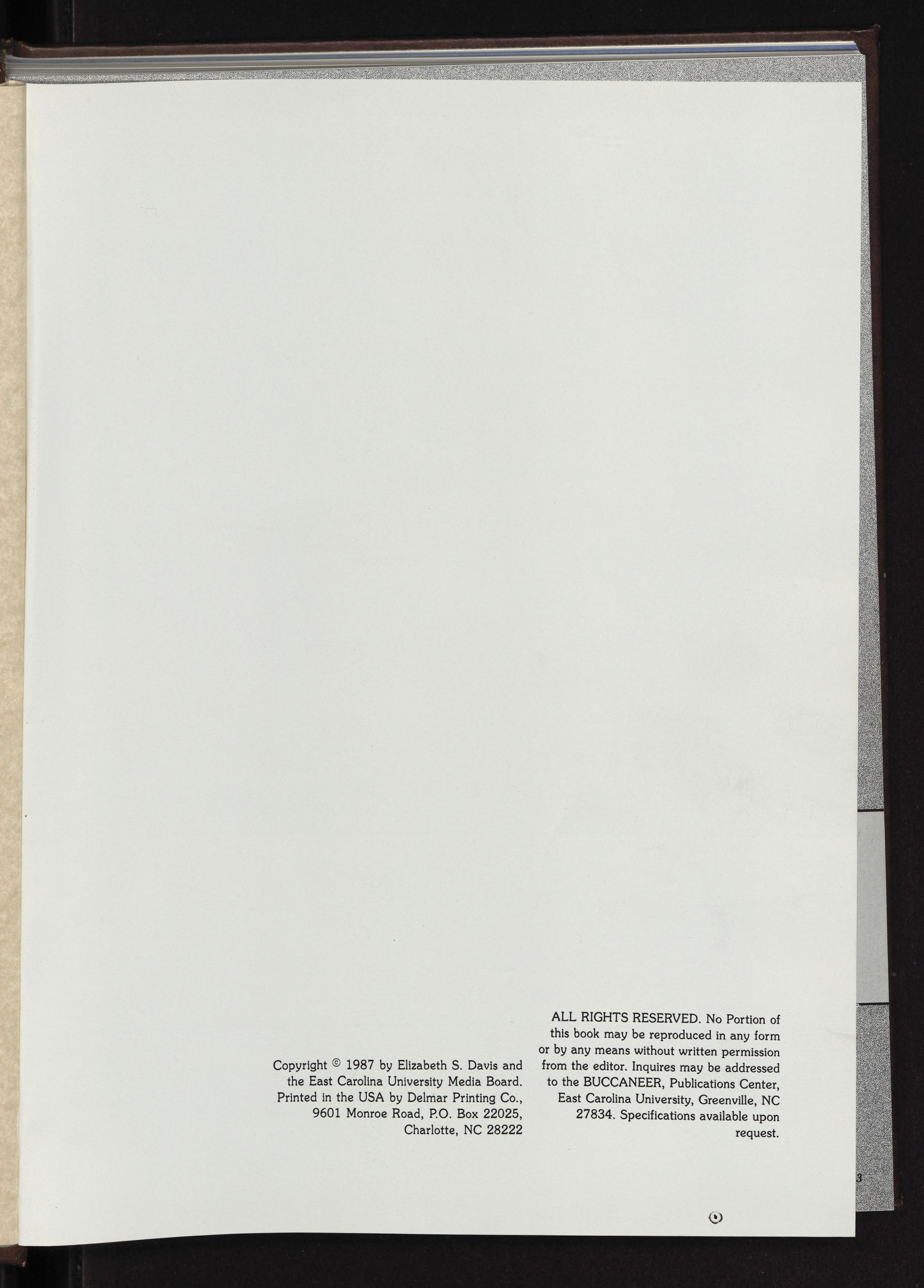 Printed in the USA by Delmar Printing Co., East Carolina University, Greenville, NC