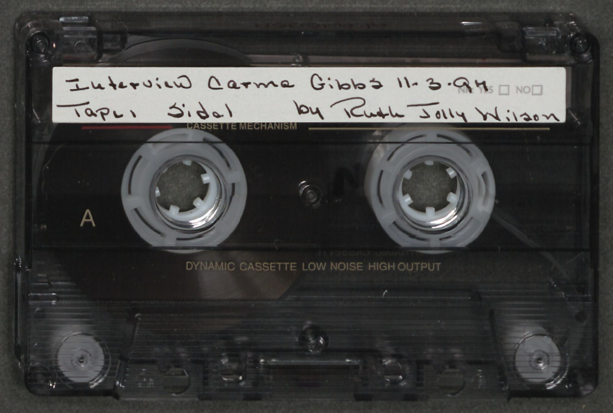 RW: This is an interview between Ruth Jolly Wilson and Miss Carma Credle Gibbs. It takes place at her home in Engelhard, North Carolina, and today is November the 3rd, 1997.