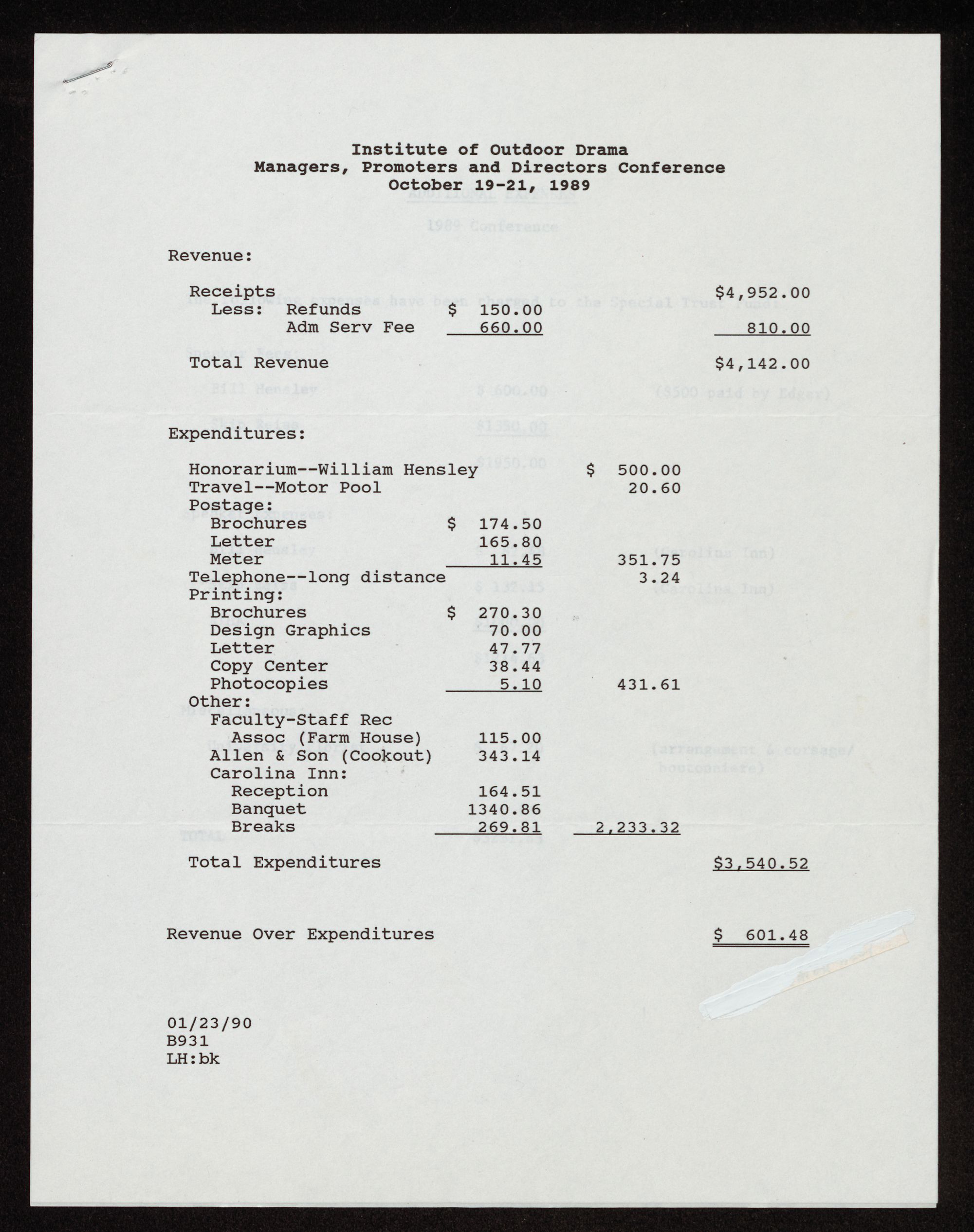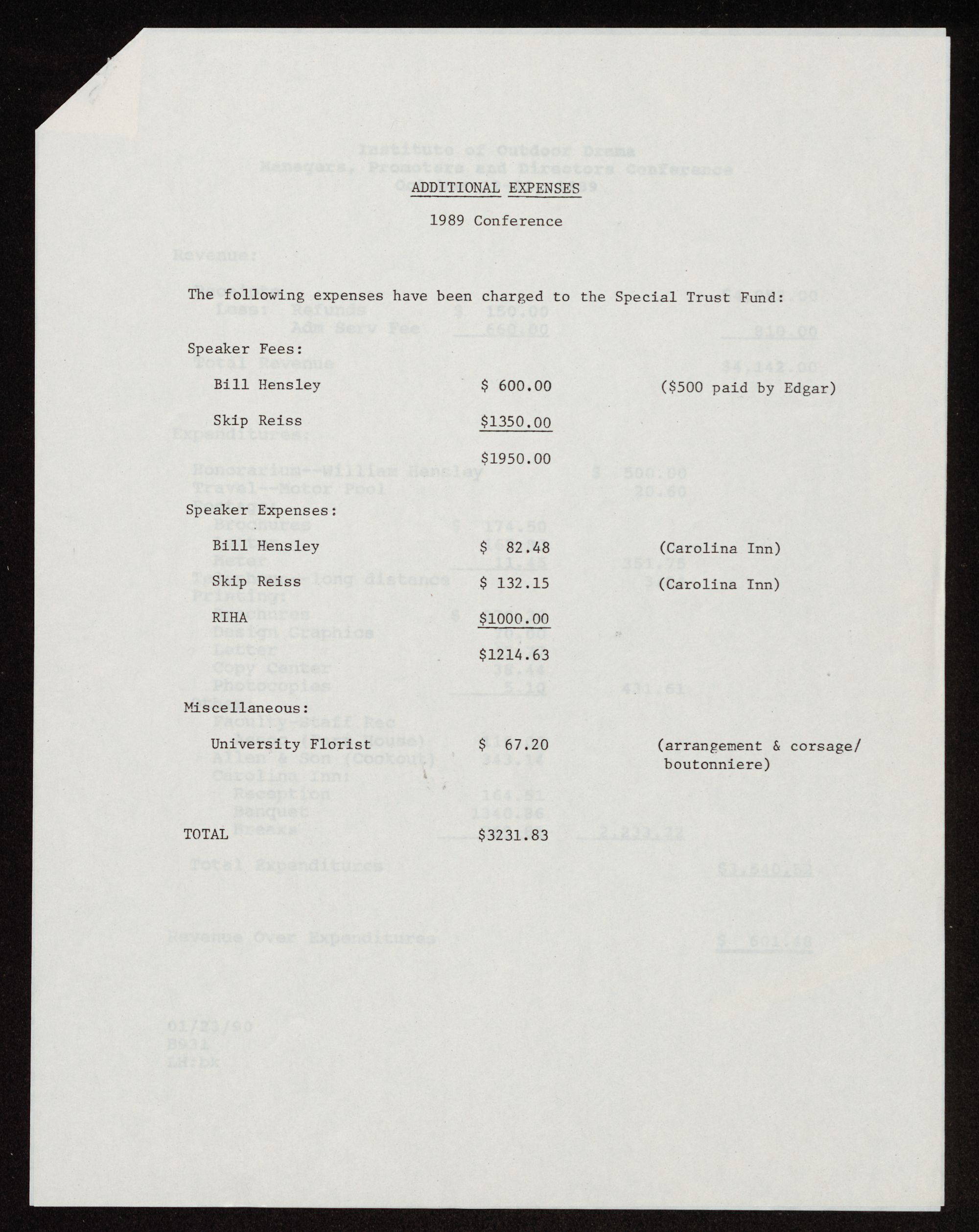 Bill Hensley $ 600.00 ($500 paid by Edgar)
