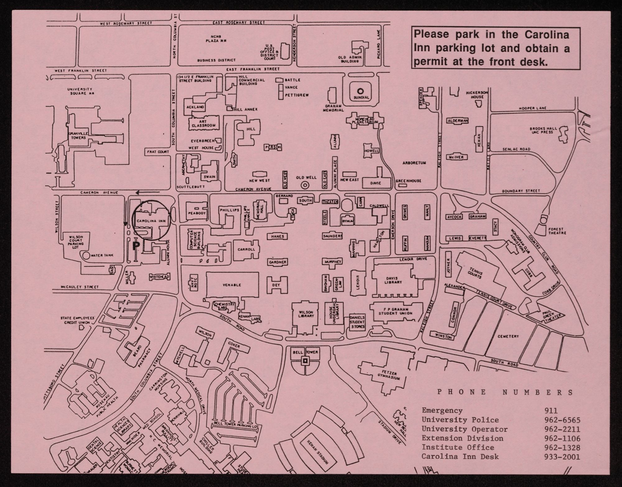trolley maps at the Carolina Inn desk or the 3 Lenoir Hall