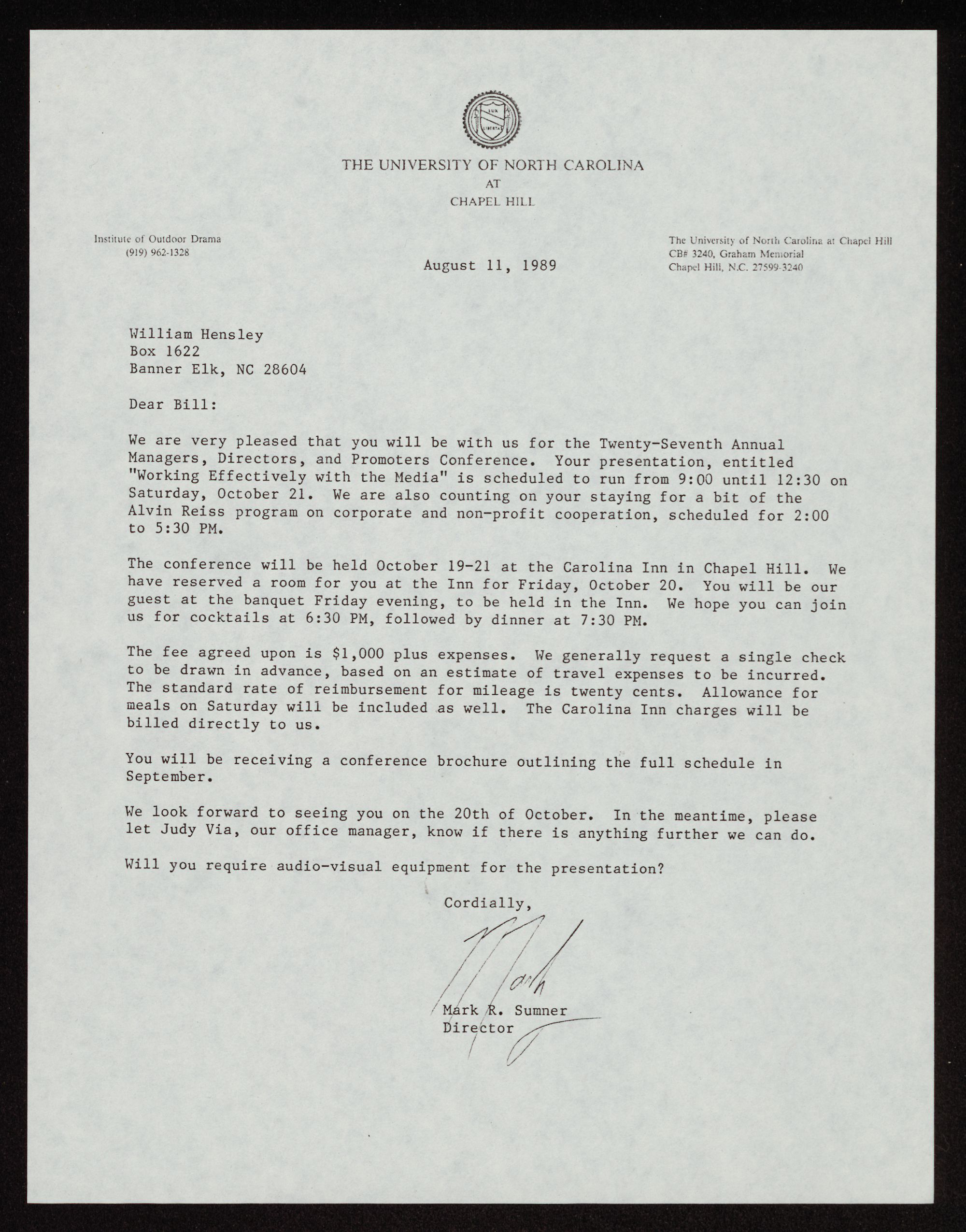 August 11, 1989 Chapel Hill, N.C. 27599-3240