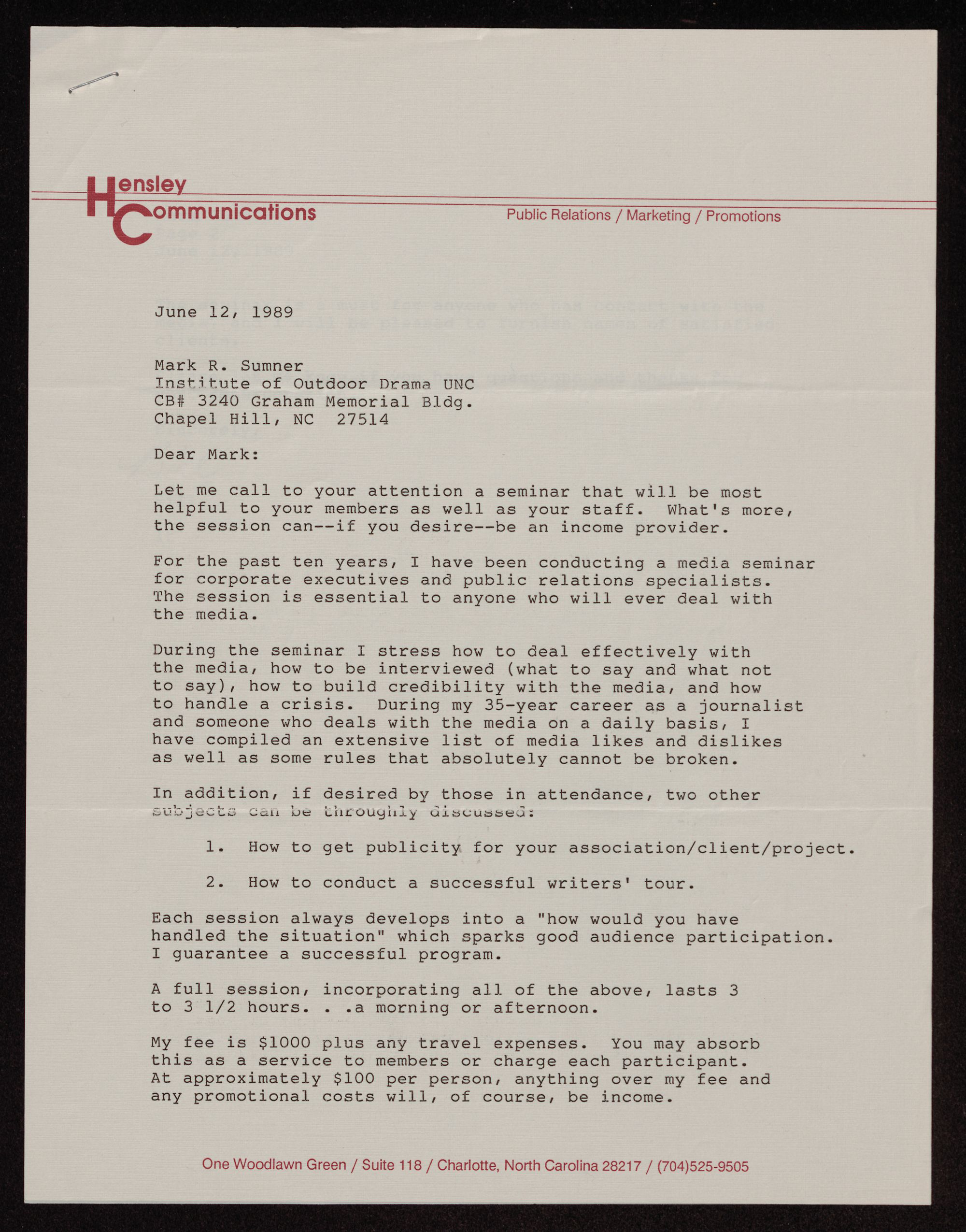 My fee is $1000 plus any travel expenses. You may absorb
