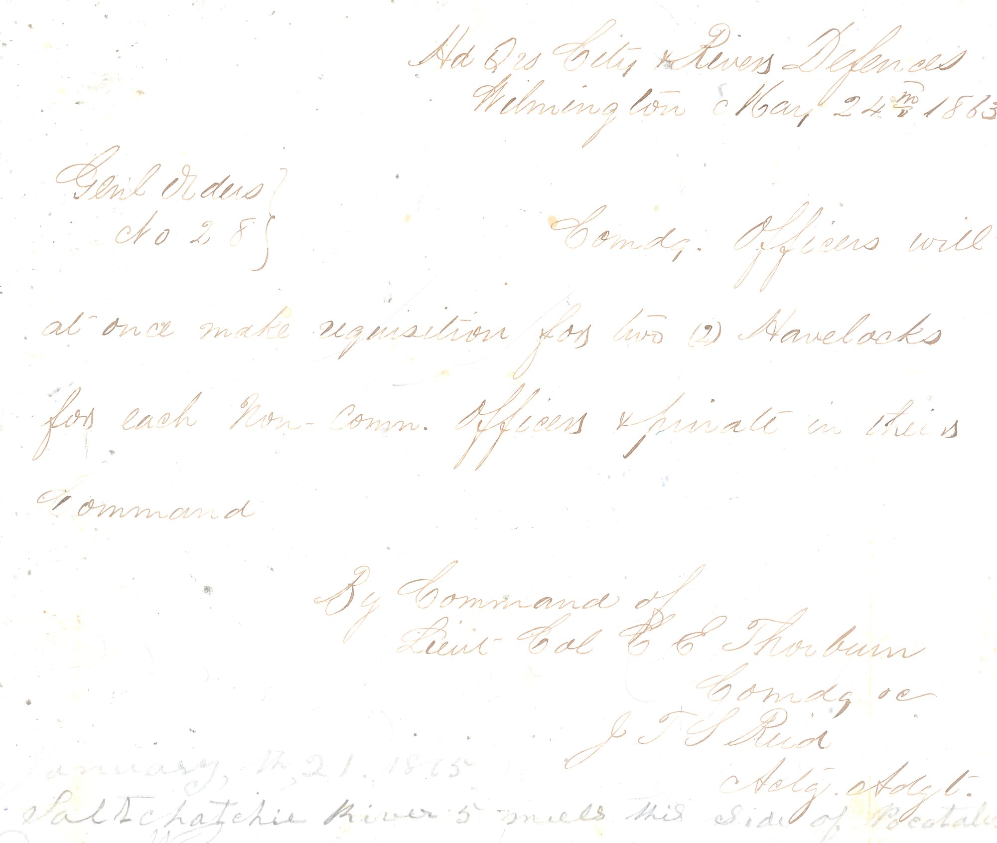 Comdg Officers will at once make uquisition for two (2) Havelocks for each Non-Comm. officers + private in their command