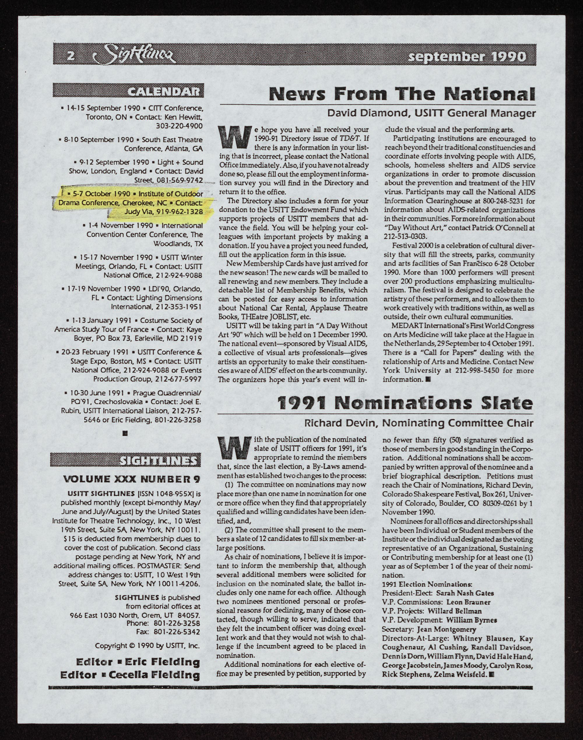 USITT SIGHTLINES [ISSN 1048-955X] is
