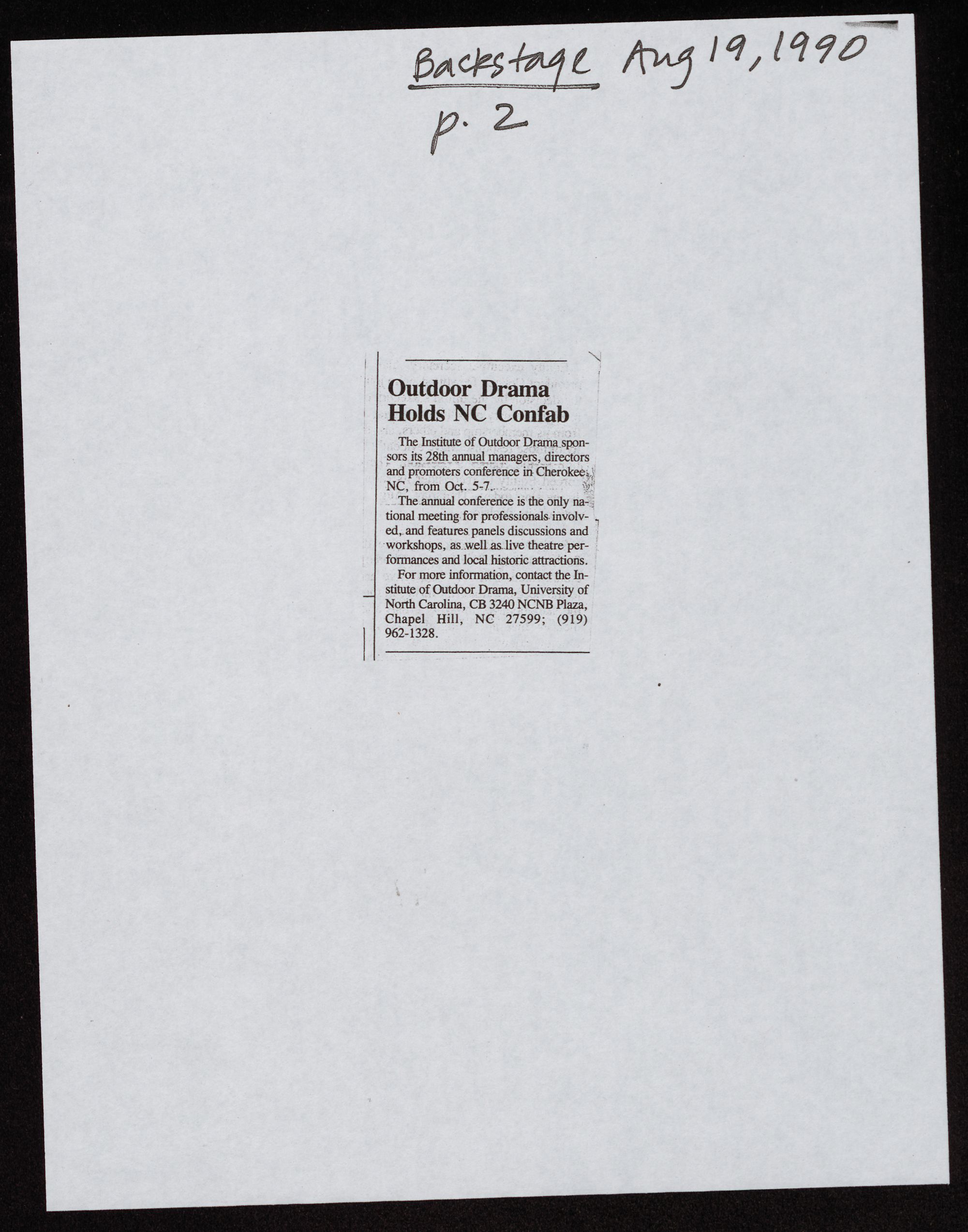 The Institute of Outdoor Drama spon-