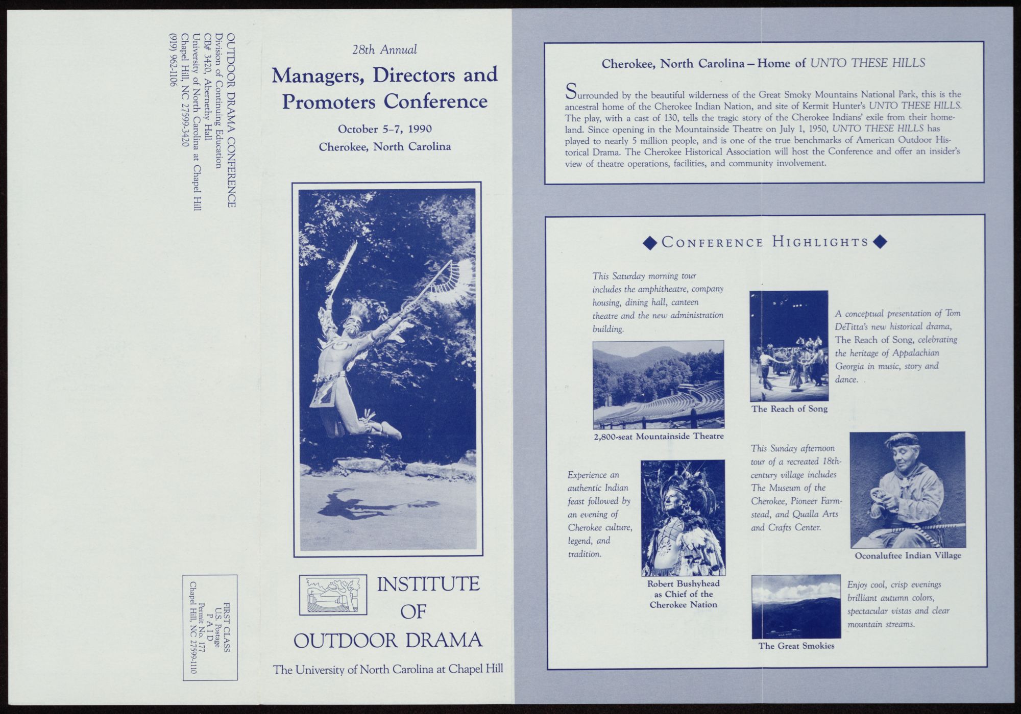 Promoters Conference ancestral home of the Cherokee Indian Nation, and site of Kermit Hunter�?Ts UNTO THESE HILLS.