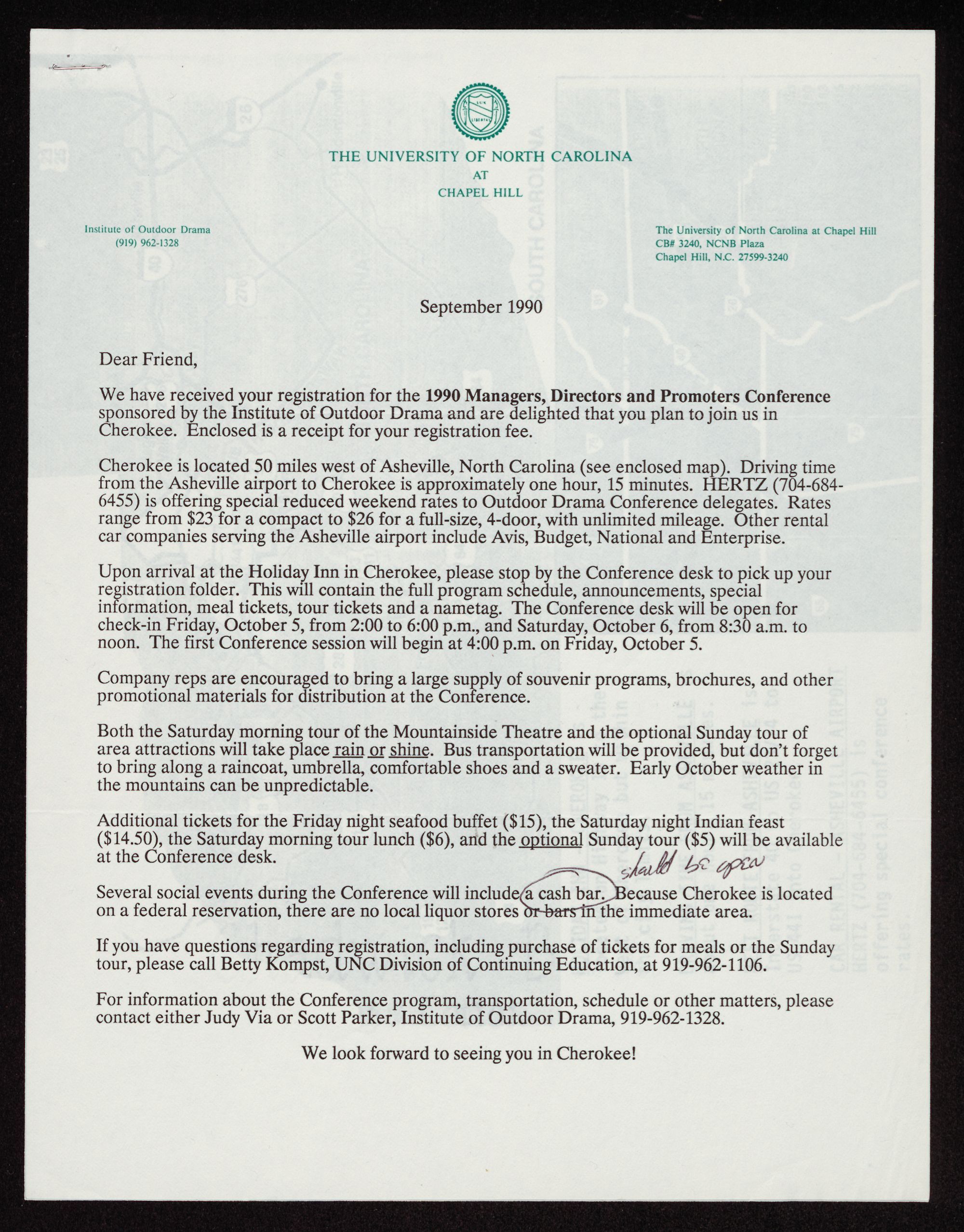 sponsored by the Institute of Outdoor Drama and are delighted that you plan to join us in