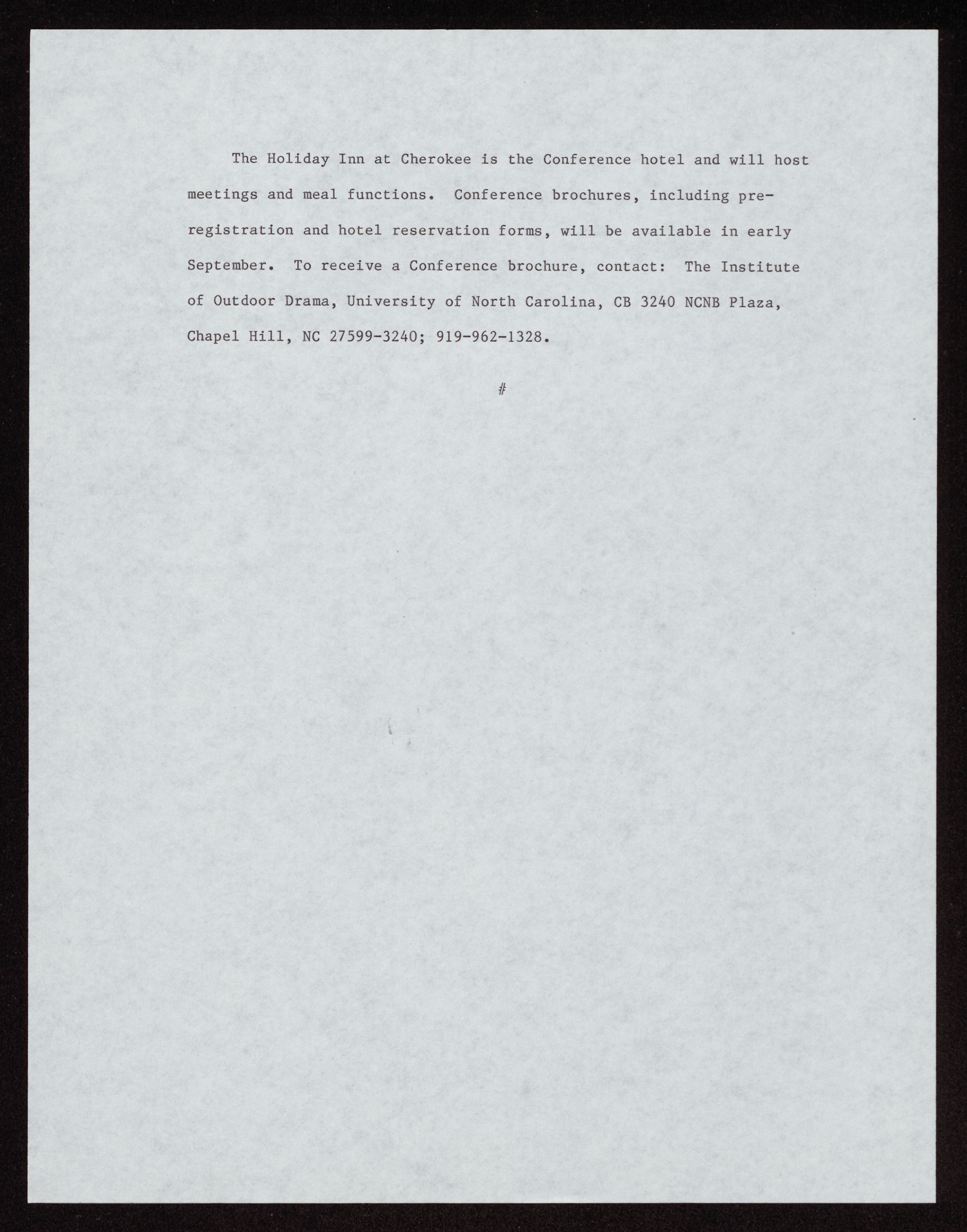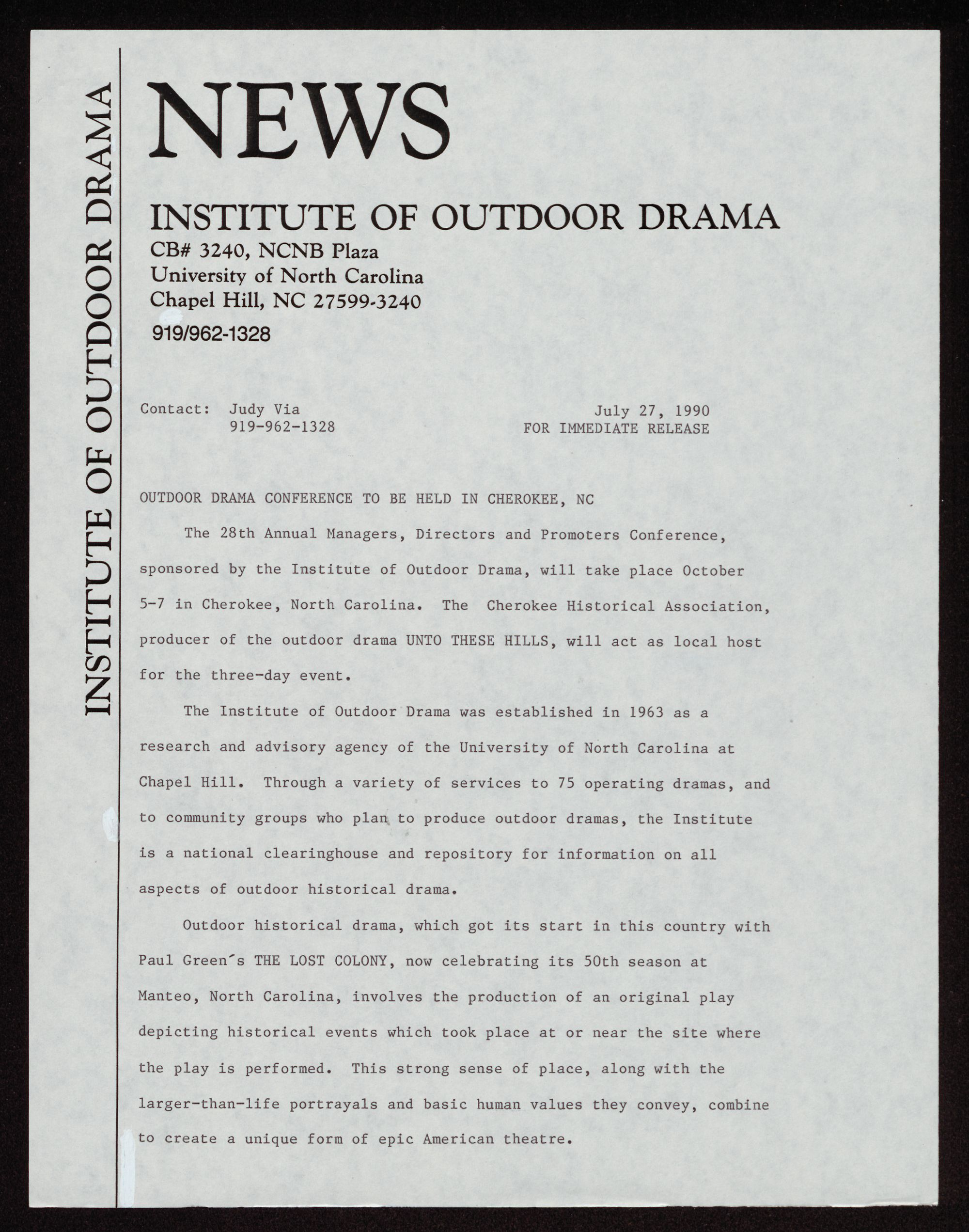 of Outdoor Drama, University of North Carolina, CB 3240 NCNB Plaza,
