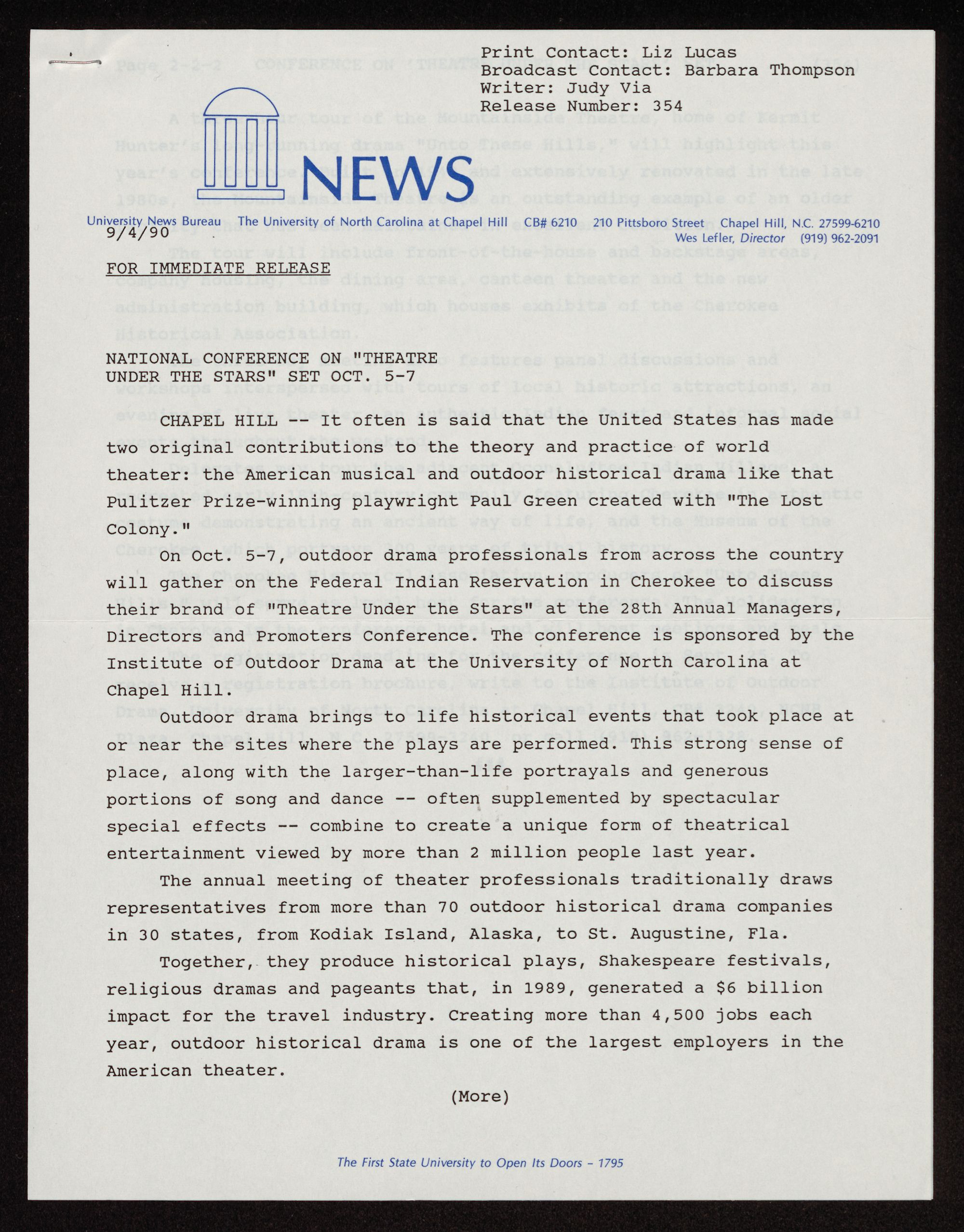 Drama, University of North Carolina at Chapel Hill, CB# 3240, NCNB